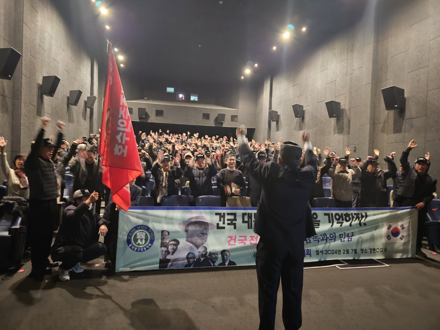 '24.2.7(수) 15시, 강변cgv에서 육사총구국 130여명이 이승만 건국대통령 일대기를 다룬 다큐멘터리 영화 '건국전쟁'을 관람하고 김덕영감독과 대화의 시간을 가졌다.