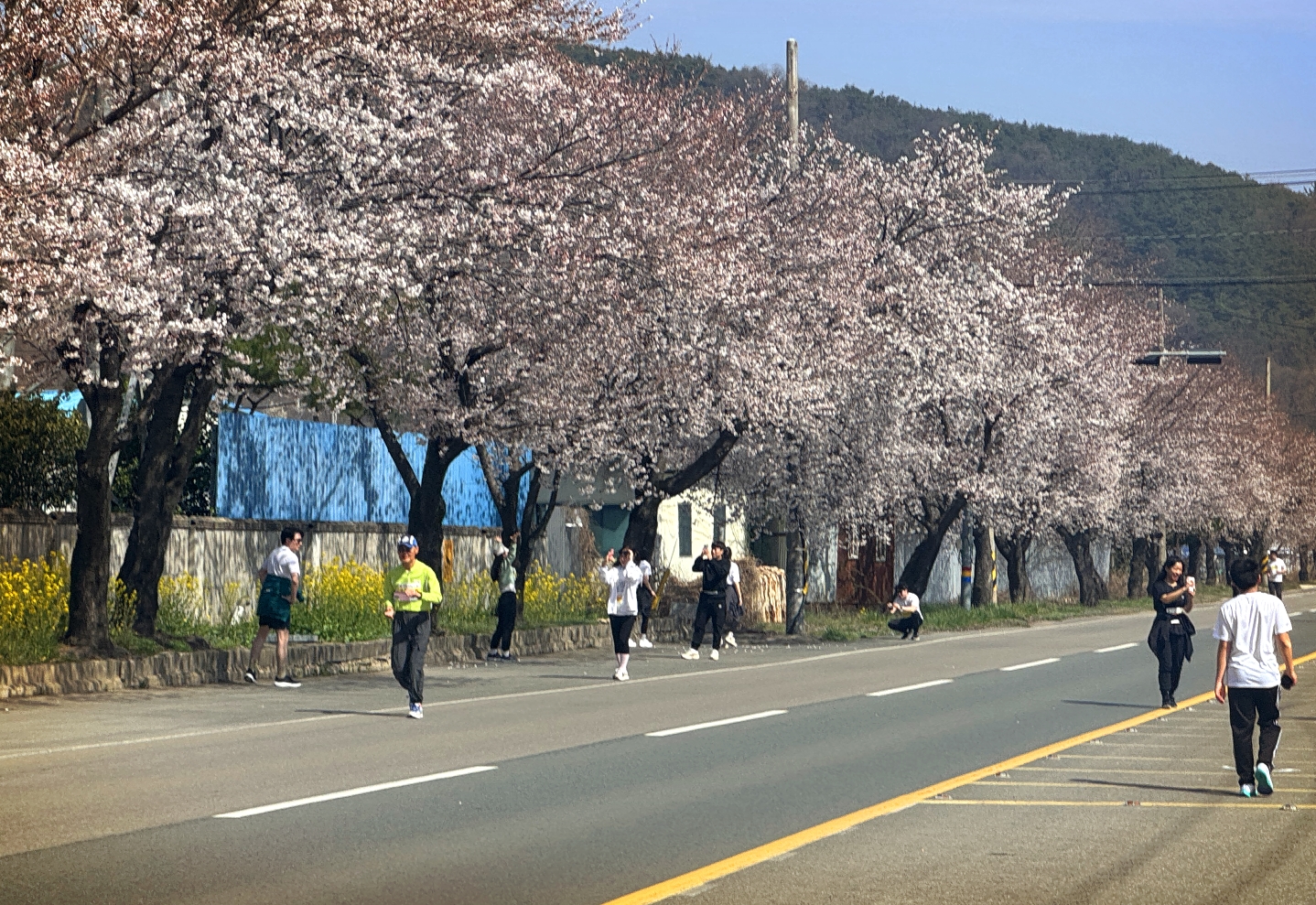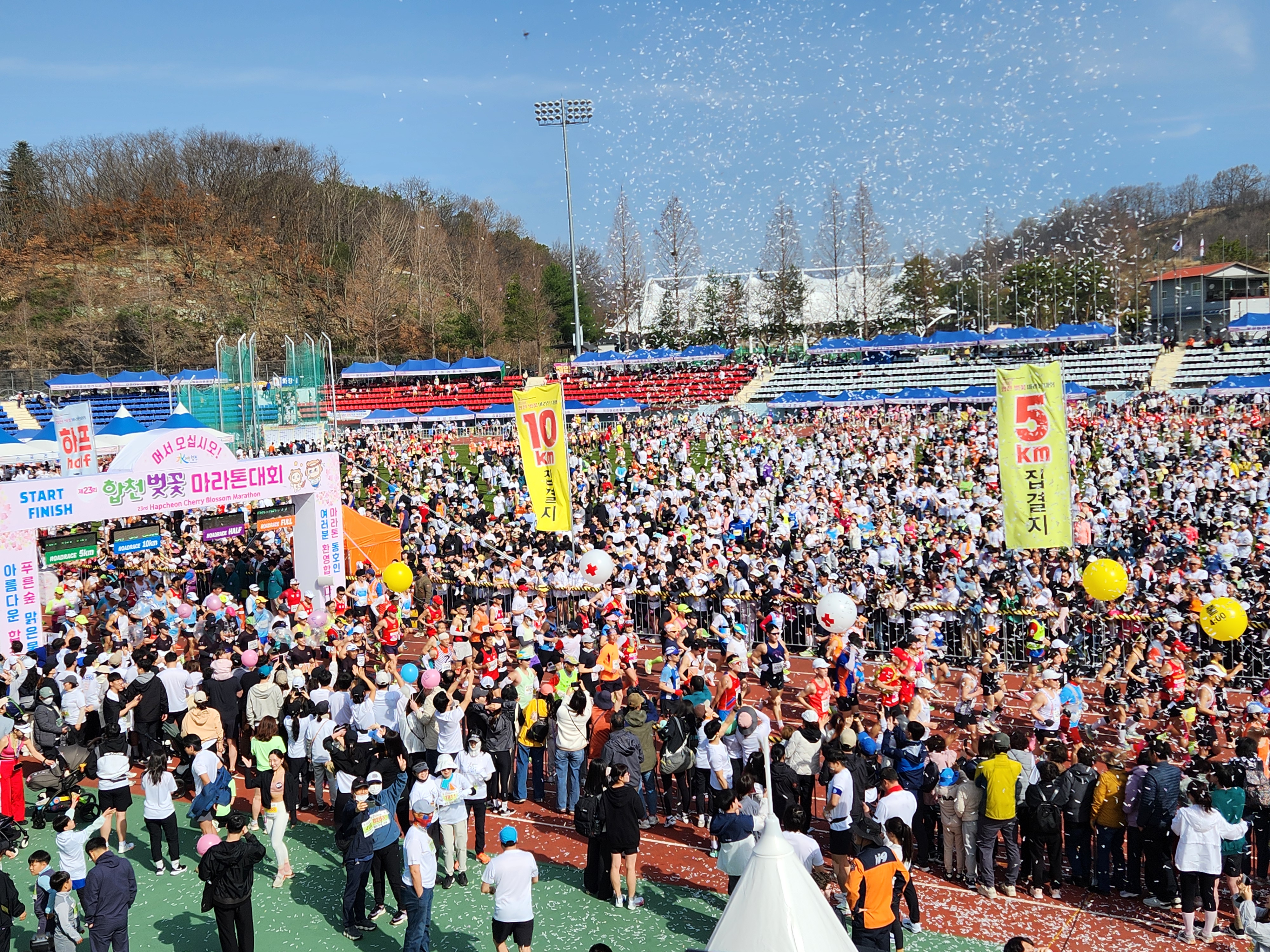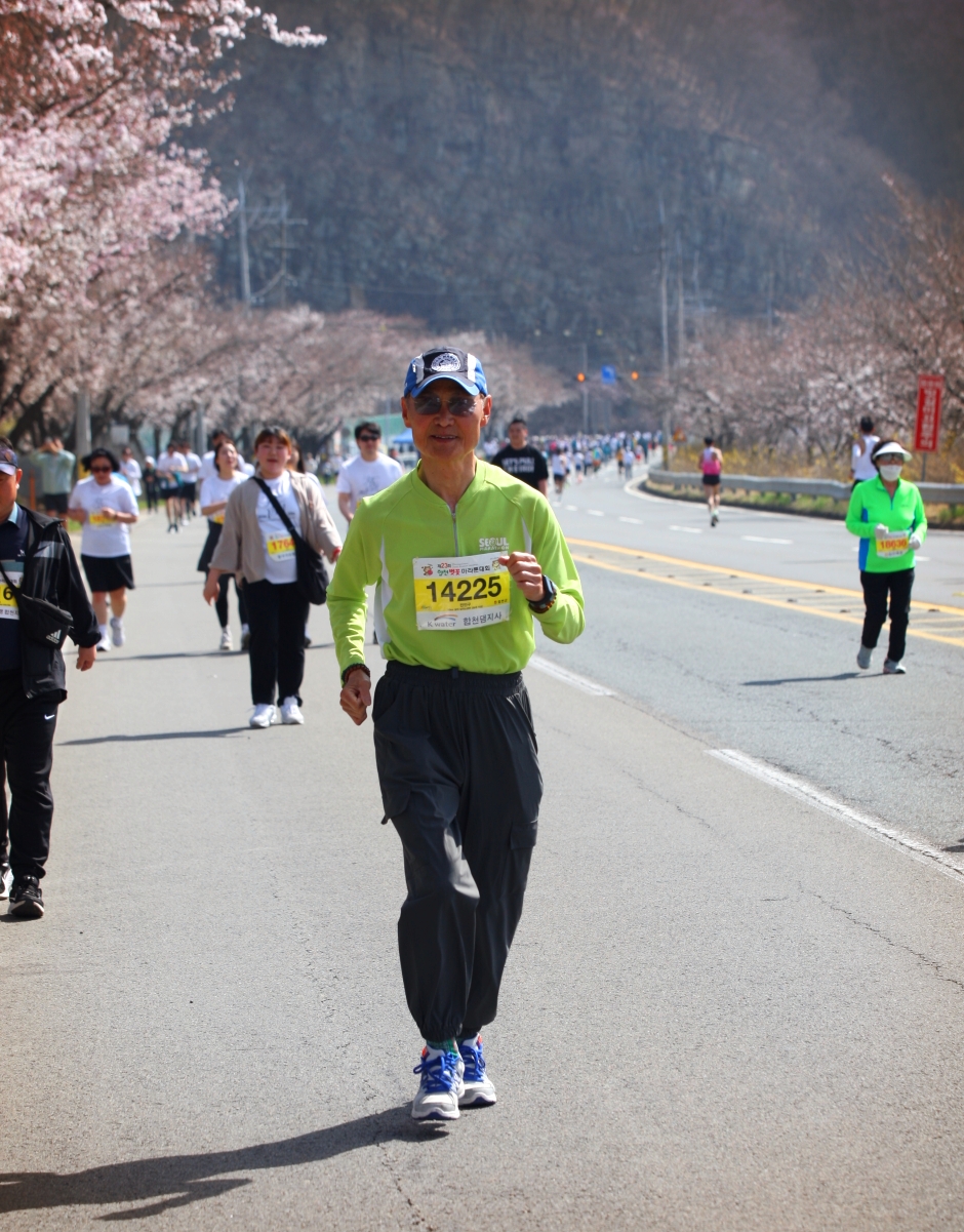 이 즈음에는 전국 곳곳에서 벚꽃 마라톤대회가 열리고 있고 인구가 많은 수도권에서도 여러 대회가 열리고 있지만 대규모대회인 조선, 동아, 중앙일보 주관 마라톤 이외에는 참가인원이 1만명 넘는 대회가 거의 없는데 여기 합천 벚꽃 마라톤대회에는 초기부터 1만명 이상 참가하고 일본, 몽골, 대구지역의 미군들을 비롯한 외국인들의 침가가 많아 국제대회의 면모를 갖추고 있으며 연예인들의 이벤트 동참도 많은 편이다.