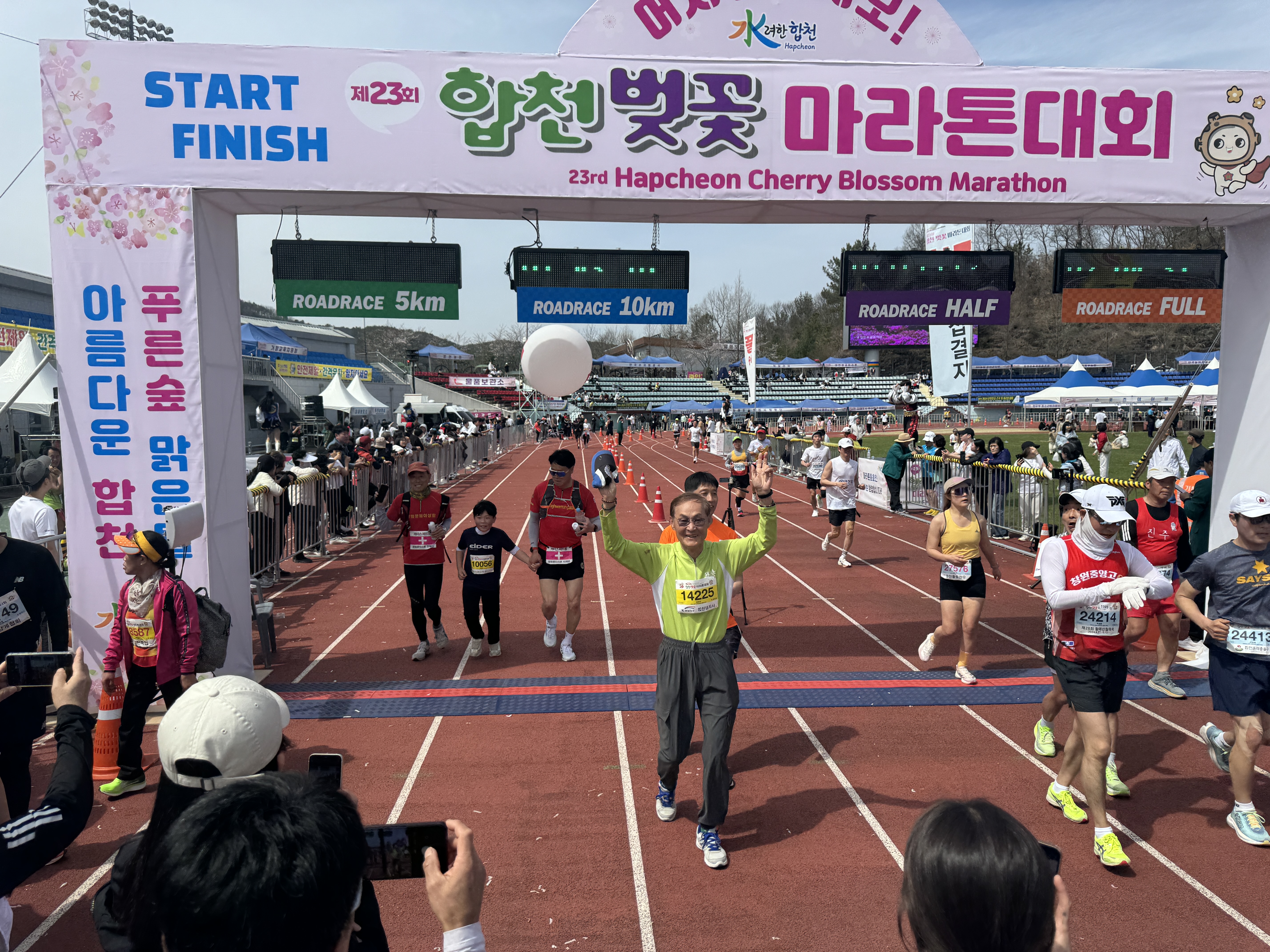 '24.3.31(일) 09:00, 합천공설운동장에서 제23회 합천벚꽃마라톤대회에 전국에서 13,000어명의 달림이들이 참가한 가운데 개회식 행사 후에 09:30 풀코스, 09:40 하프코스, 09:50 10km 순으로 출발, 맑게 흐르는 황강변을 따라 벚꽃 100리길을 달리는 축제가 개최되었다. 지역 마라톤대회로는 가장 성공적으로 이어져오는 명품대회이다.