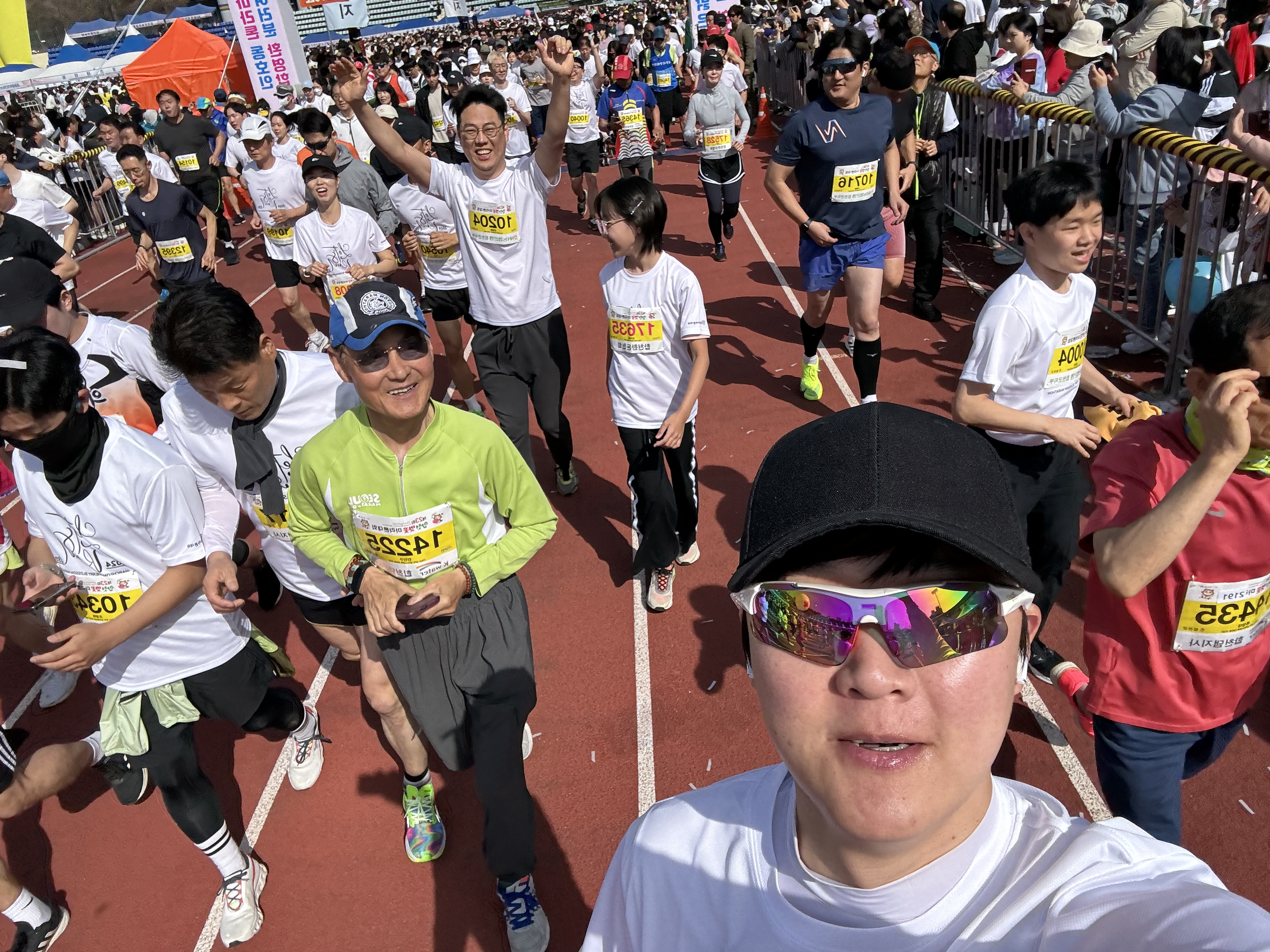 모델 한혜진씨가 어머니와 함께 하프코스를 완주하고 있다.