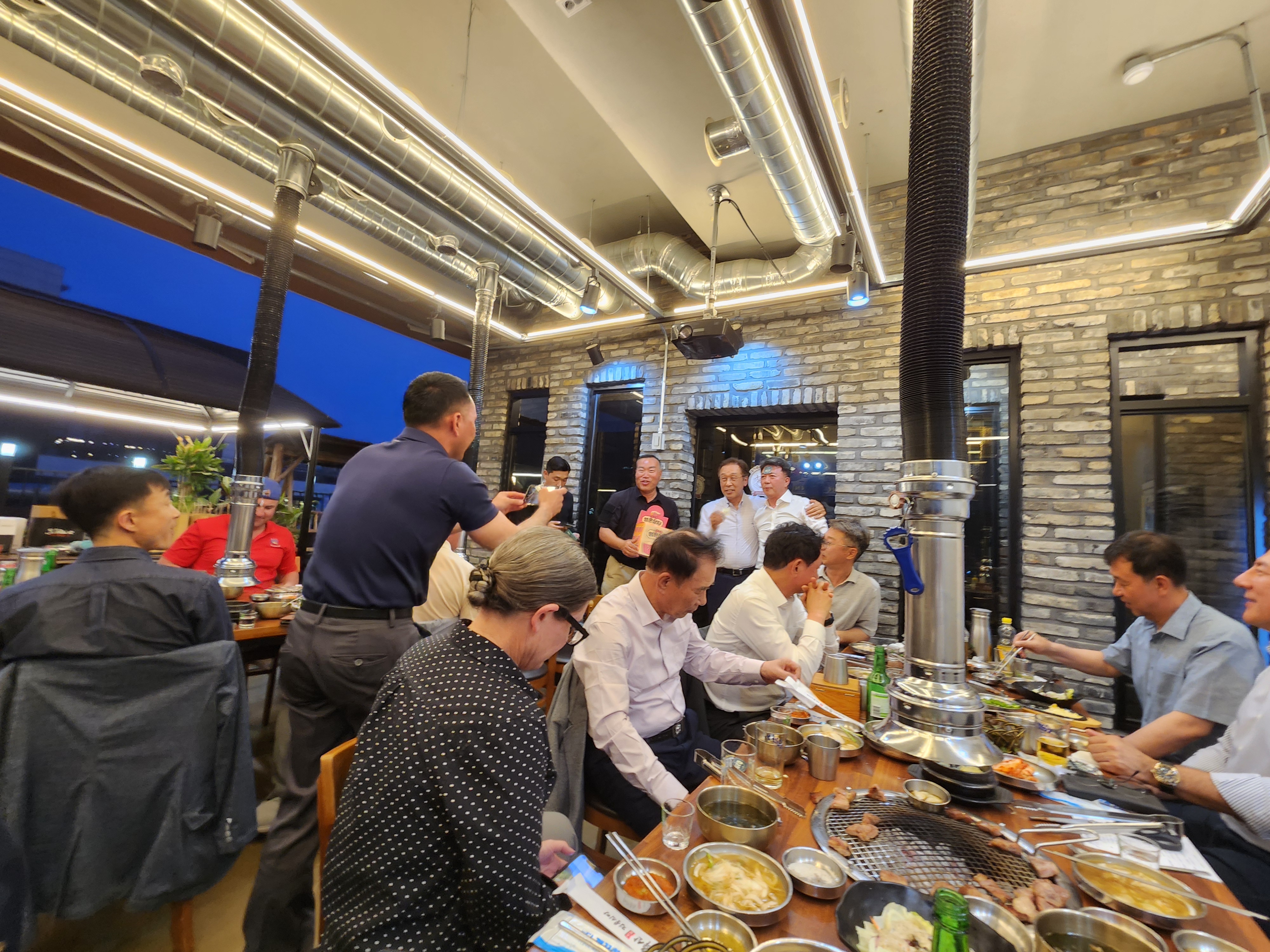 클럽하우스에서 샤워, 환복 후 25분 거리의 대가축산 식당으로 이동