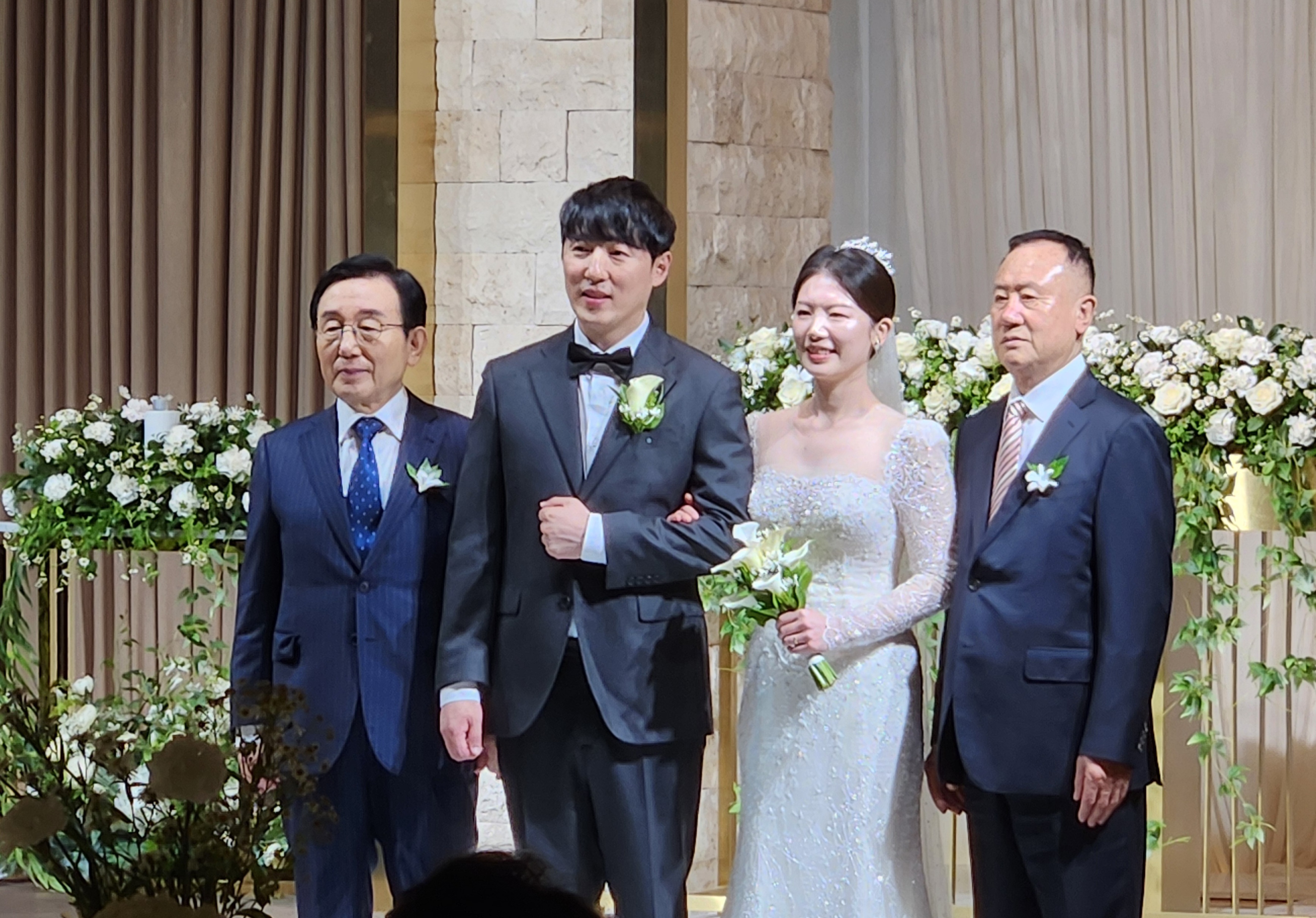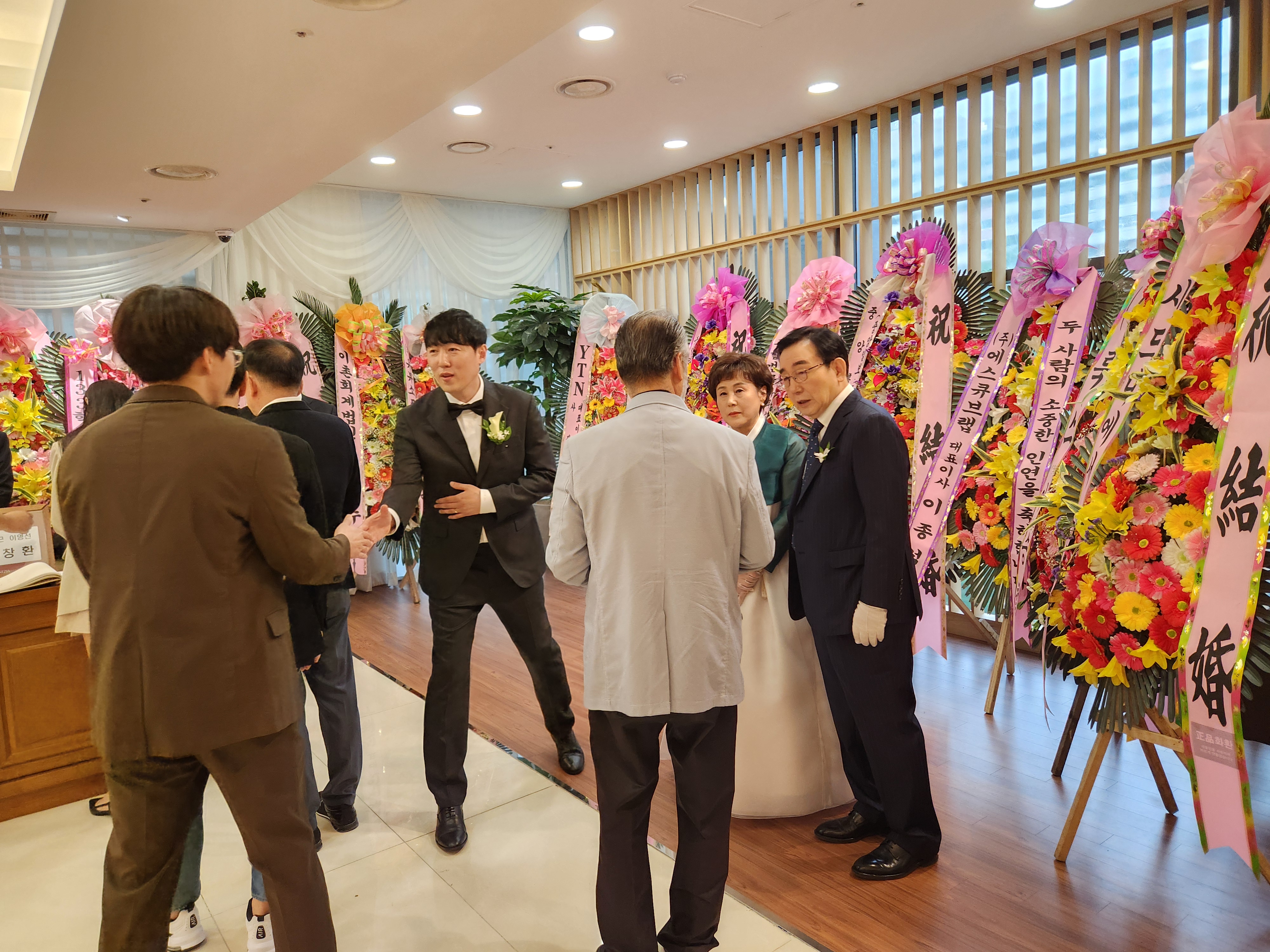 '24.5.26(일) 14:50, 잠실역 부근 더베네치아 웨딩홀에서 고교친구 이동근동문(이영선여사)의 아들 창 환군이 이연 희양을 신부로 맞아 결혼식을 올렸다.