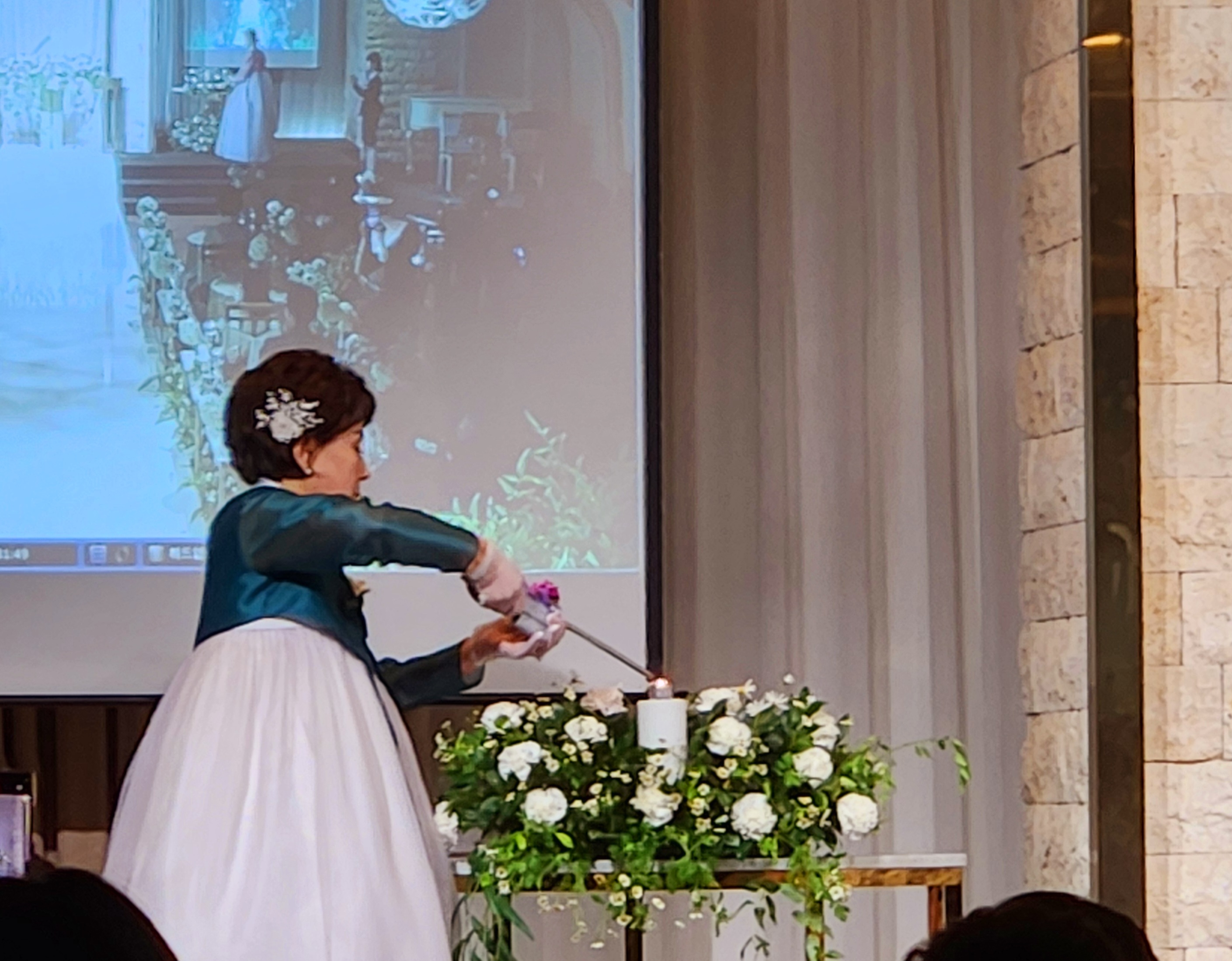 양가 혼주가 입장하여 신랑신부의 앞날을 환하게 밝히는 점촉을 한다.