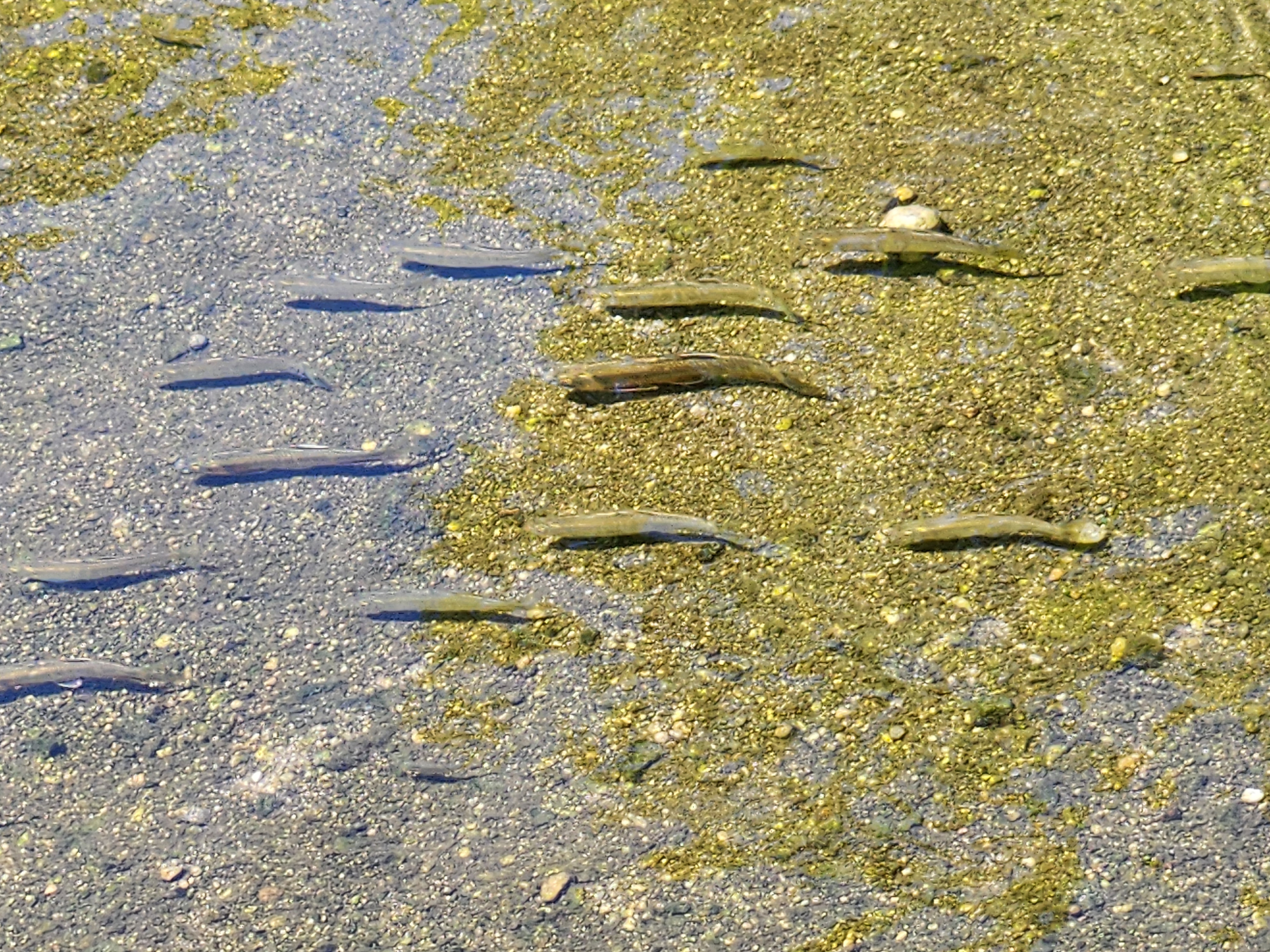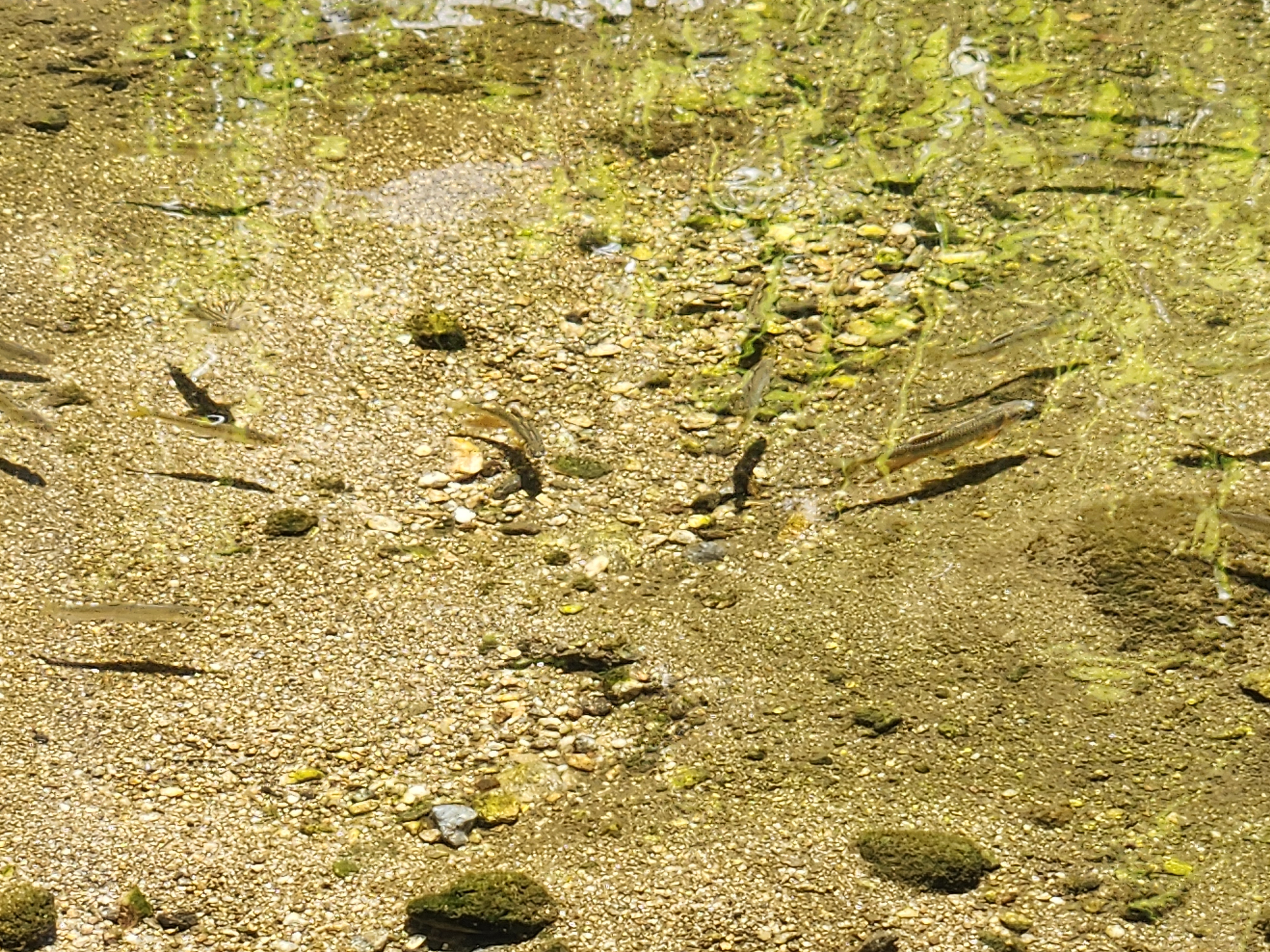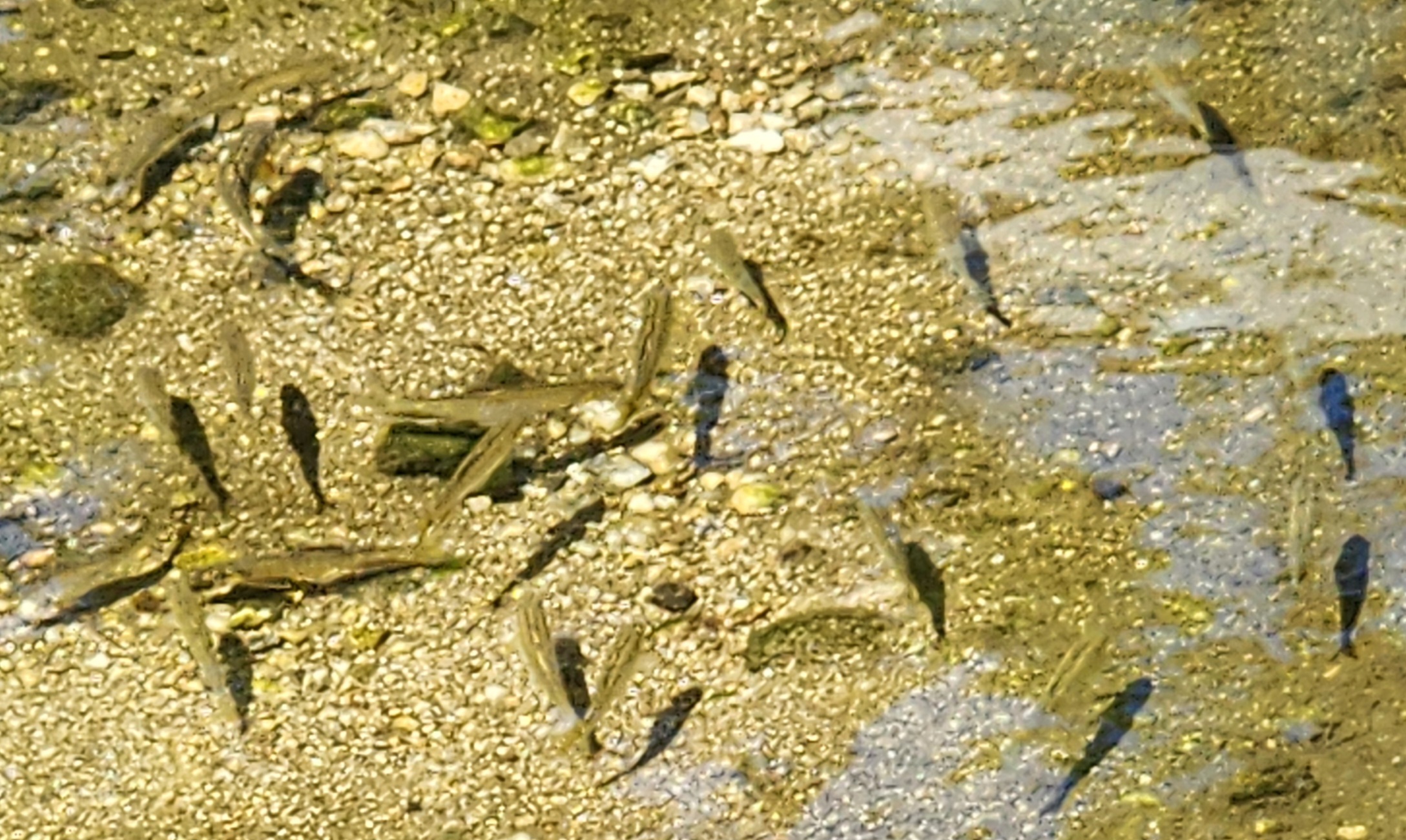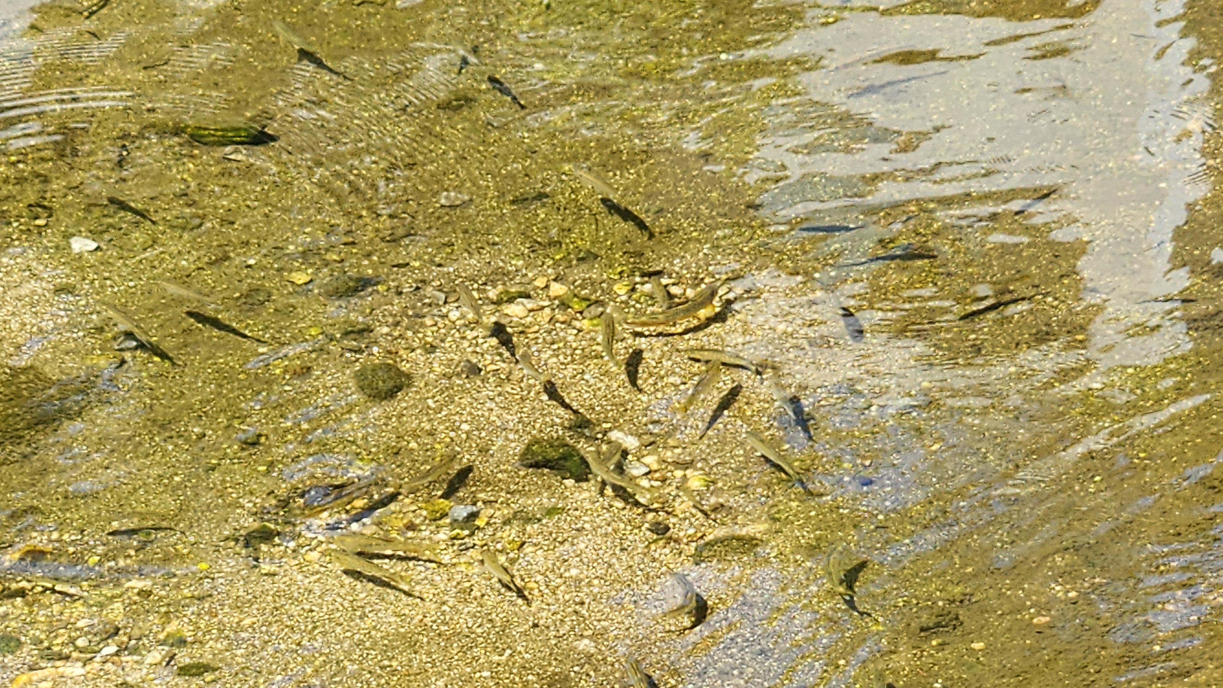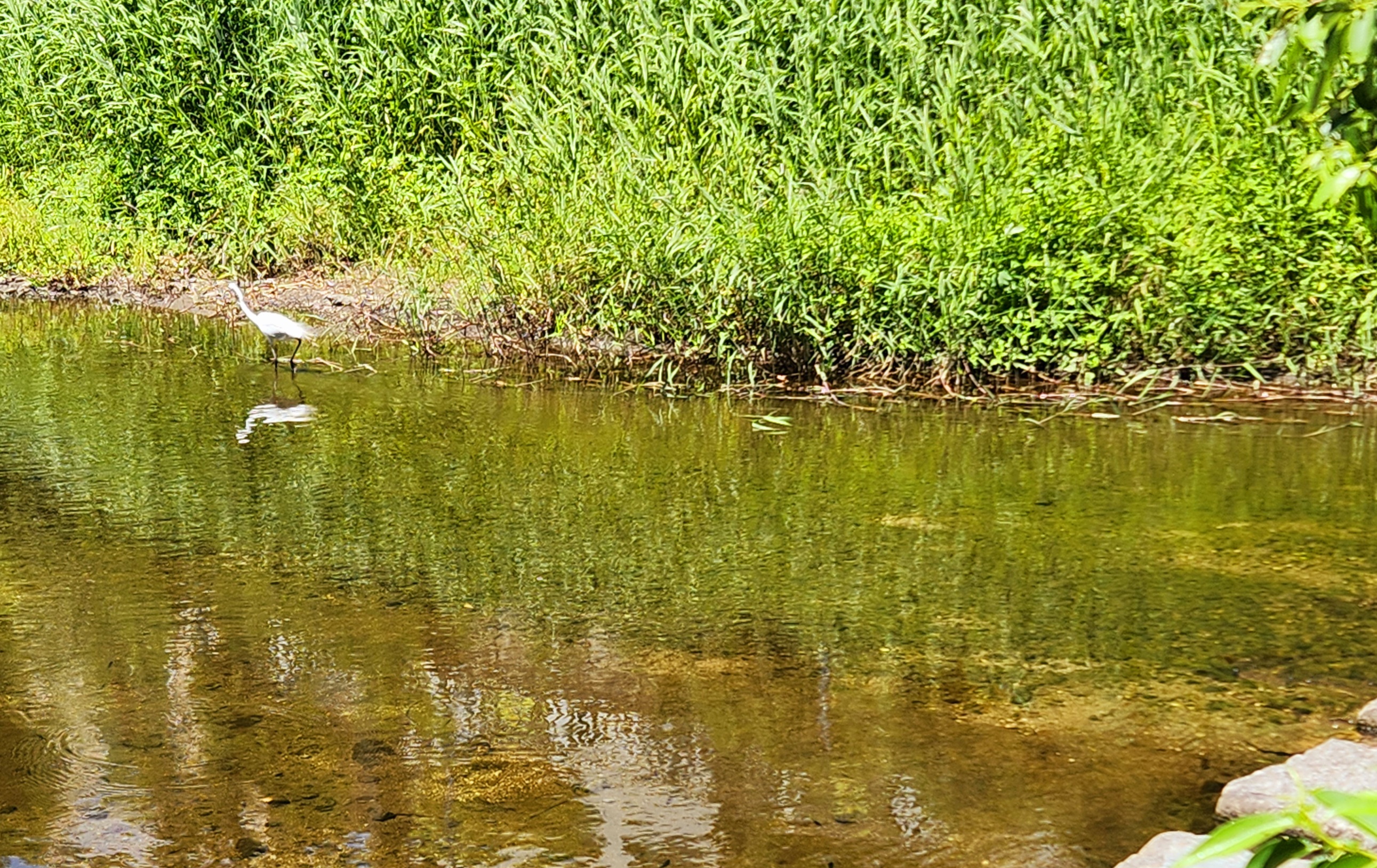 바닥 모래알갱이가 다 보이는 맑은 개울에 다리와 목이 길쭉한 왜가리가 성큼성큼 다니고 징검다리 부근 물살이 쎈곳 바로 위쪽에는 송사리떼가 많다. 큰놈, 작은놈 끼리끼리 어울린다. 분주하게 아래위로 움직이고 펄쩍 뛰면서 동심원을 일으키기도 한다. 한참을 바라보고 있노라면 나의 생명력이 함께 요동치며 움직이고 있는 듯하다. 개울물 흐르는 소리도 징검다리 사이를 지날 때는 요란한 소리를 내면서 흐른다. 풀 줄기와 잎으로 만든 물레방아를 돌리기에 좋다.