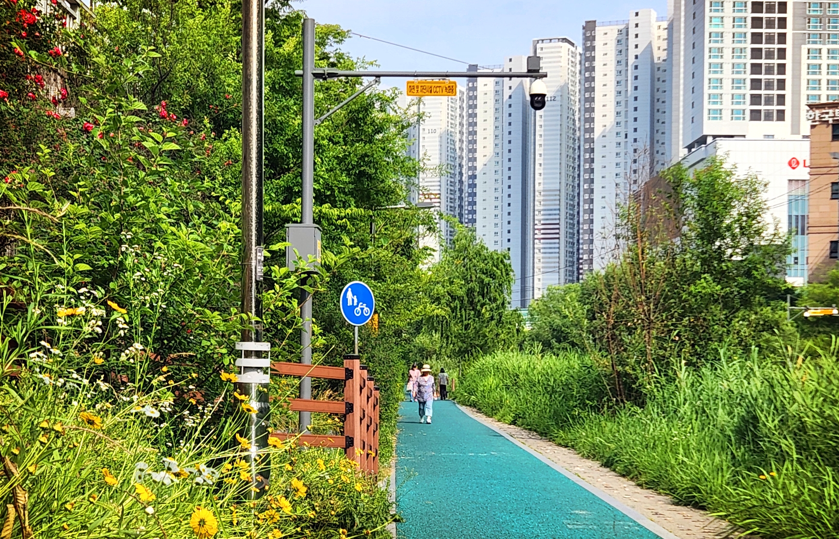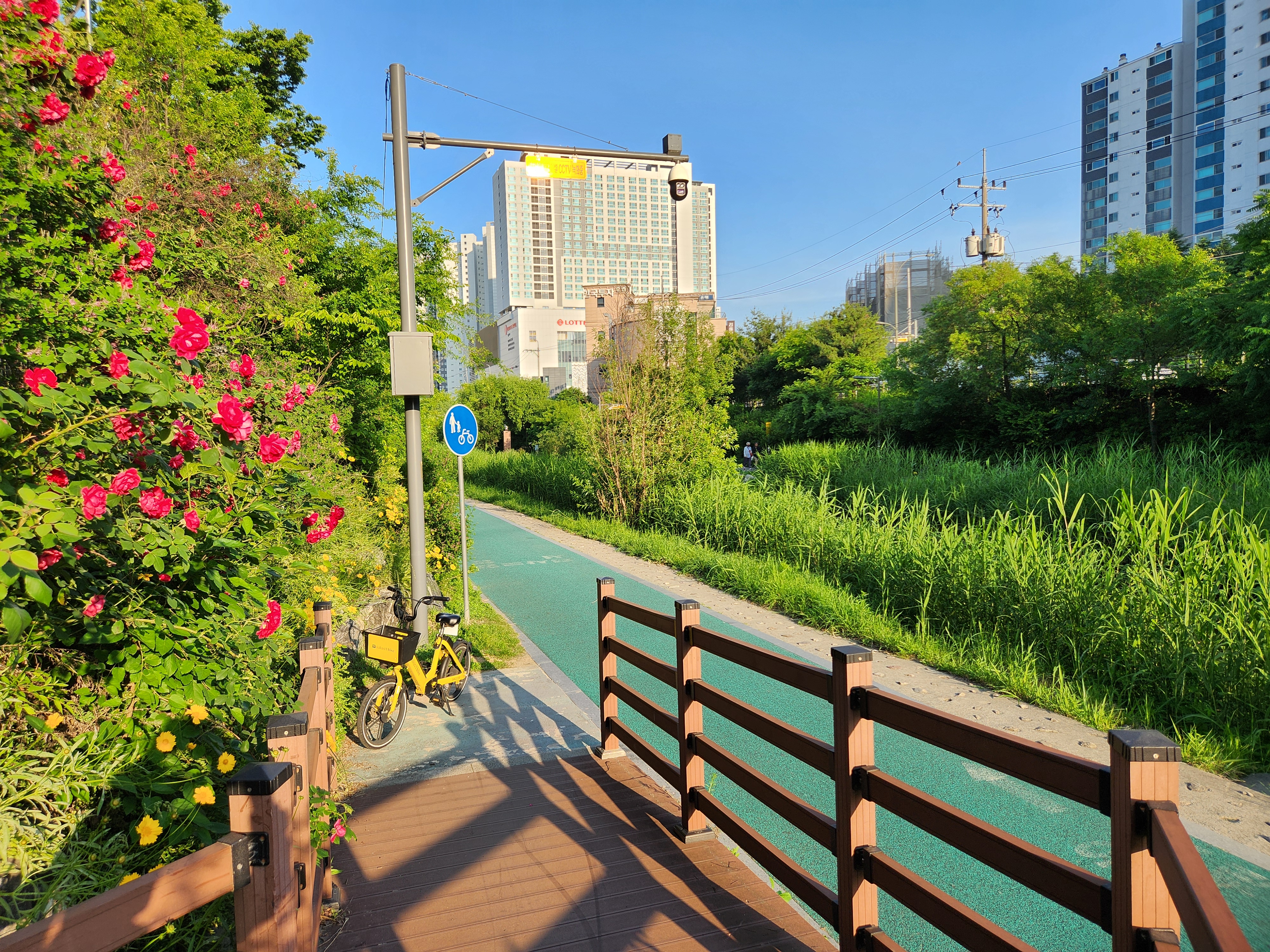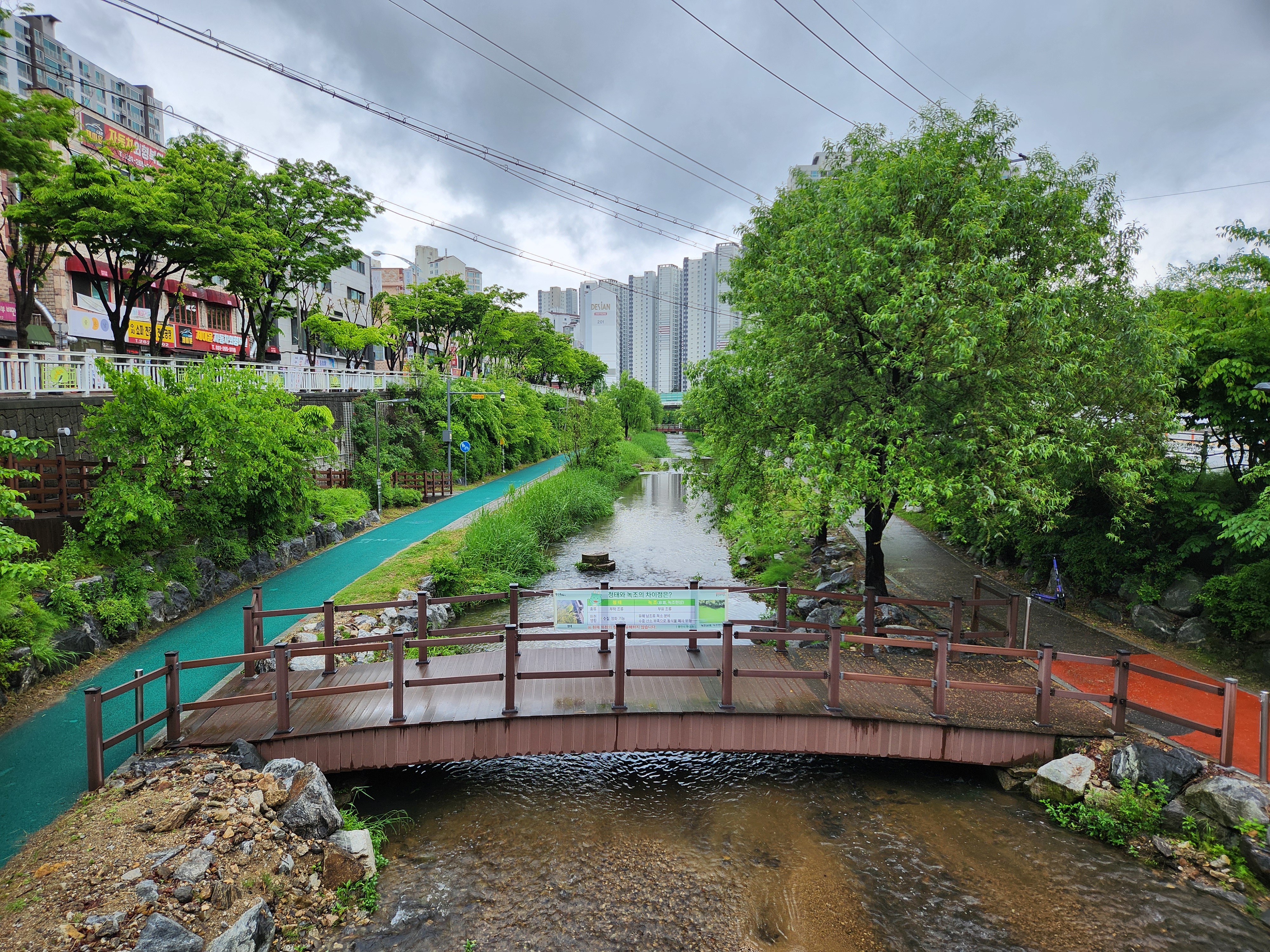 수지 아파트에서 성복역으로 지하철타러 가는 길에 성복천을 건넌다.