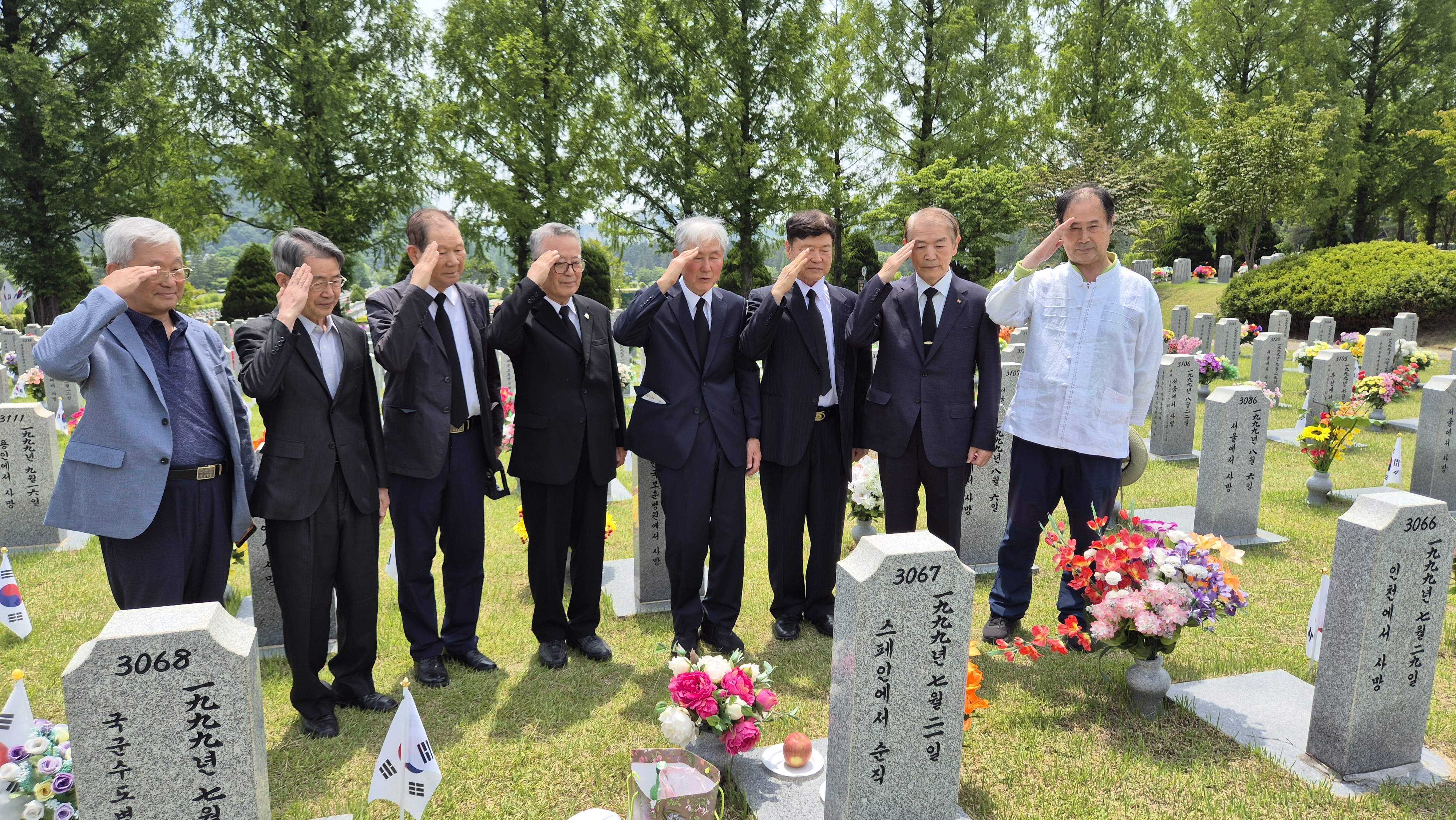 우리 9명은 묘역에 안장된 송석열(3판 975), 오용근(3판 1053), 김상원(8판 3067), 임상수(3-311-9498), 정북실(16판 8634), 박창규(4-412-12239), 이희원(장군2묘역 465)동기와