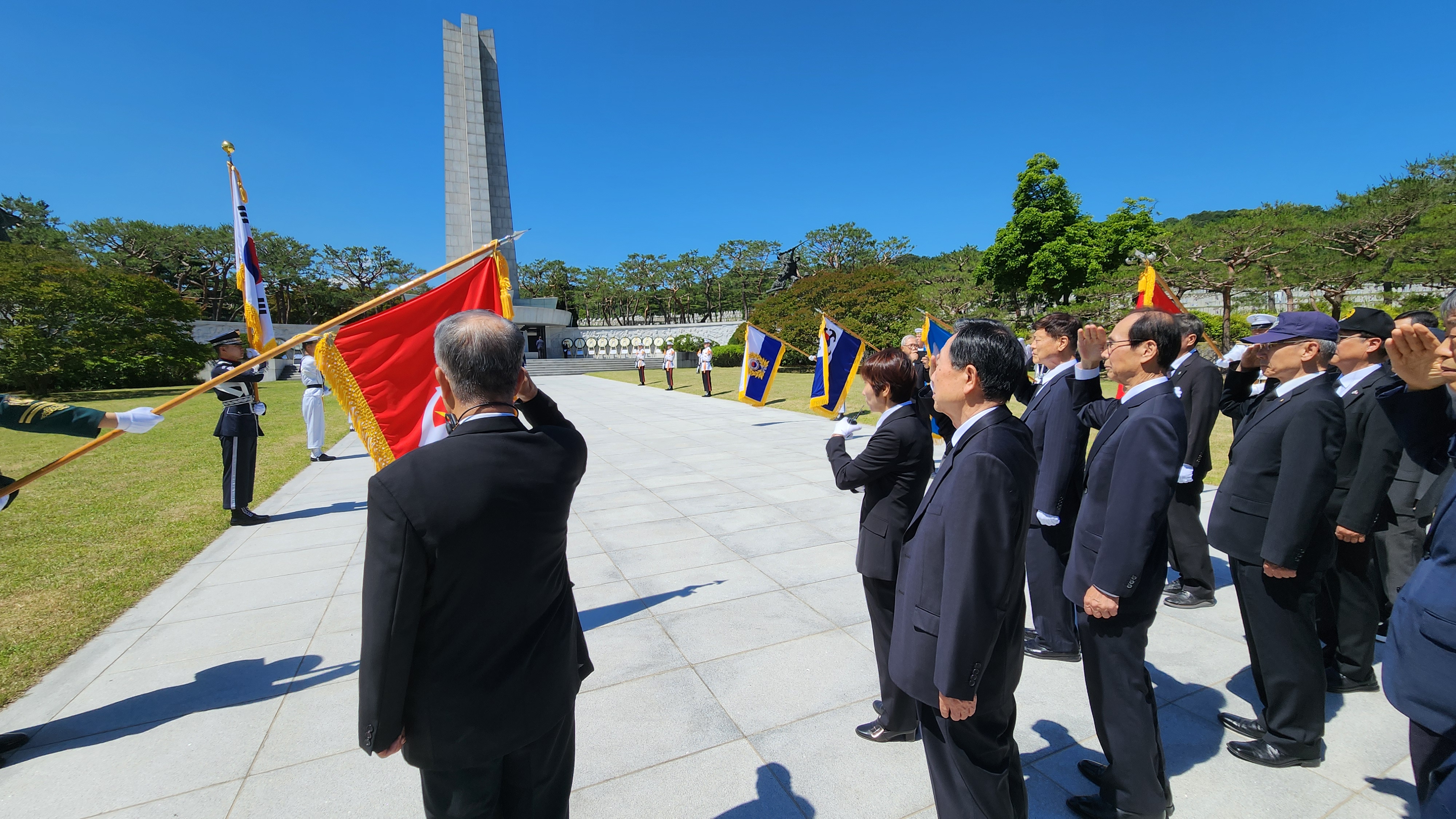 - 10:30 현충문 대열 동기 참배 행사 (분향 /경례/묵념/단체사진 촬영) 후 버스 이동