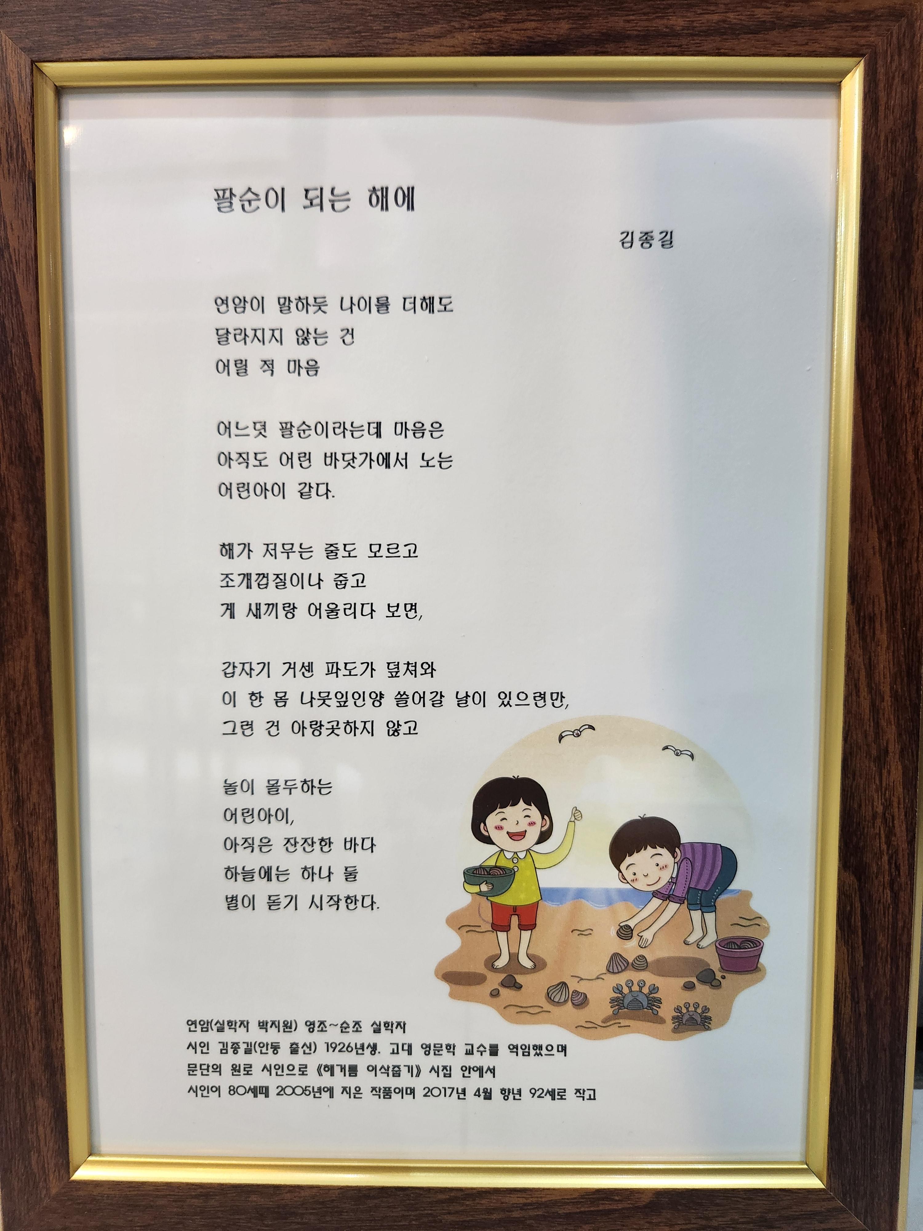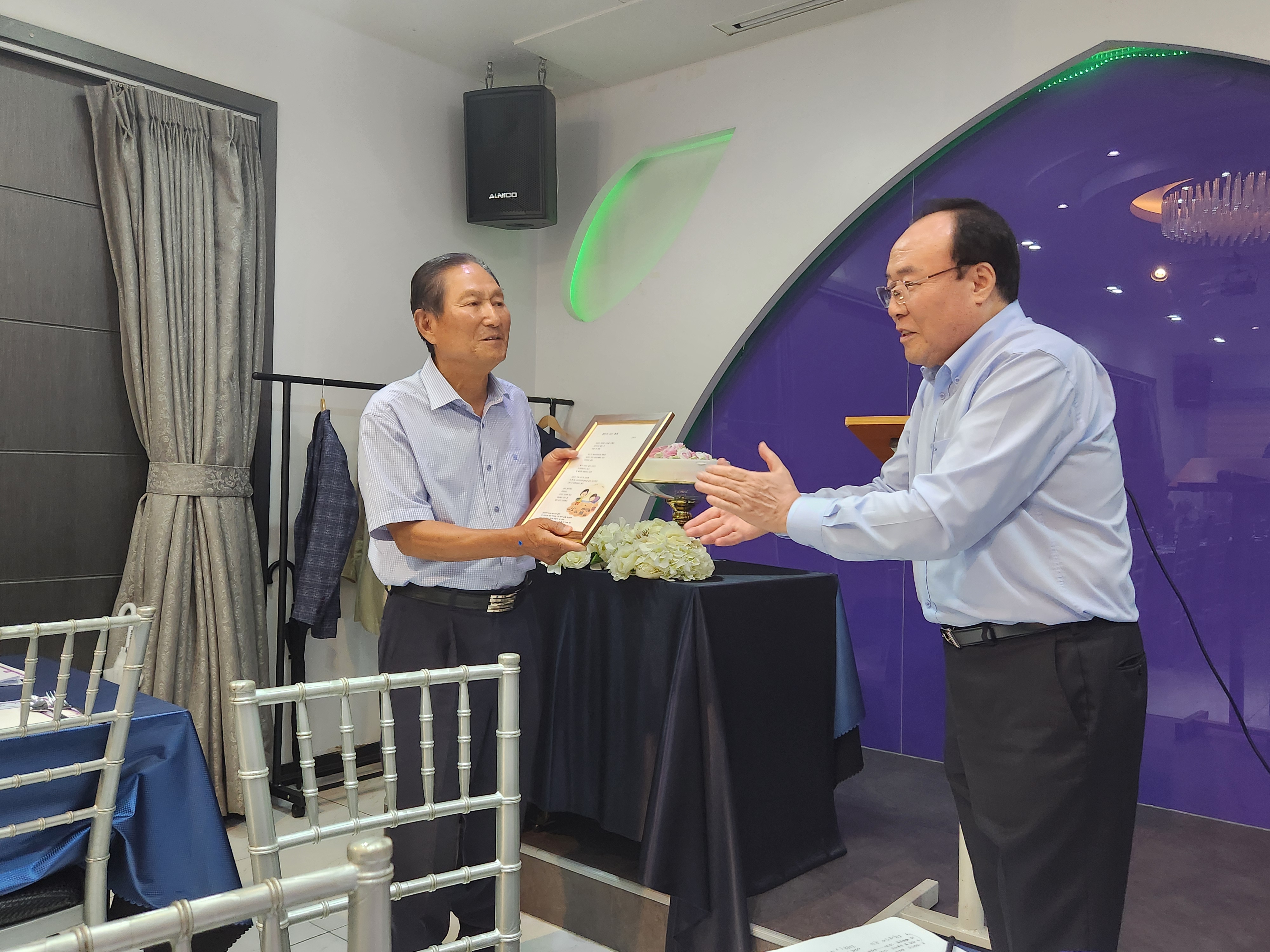안영갑회장의 8순을 축하하는 축시액자를 증정