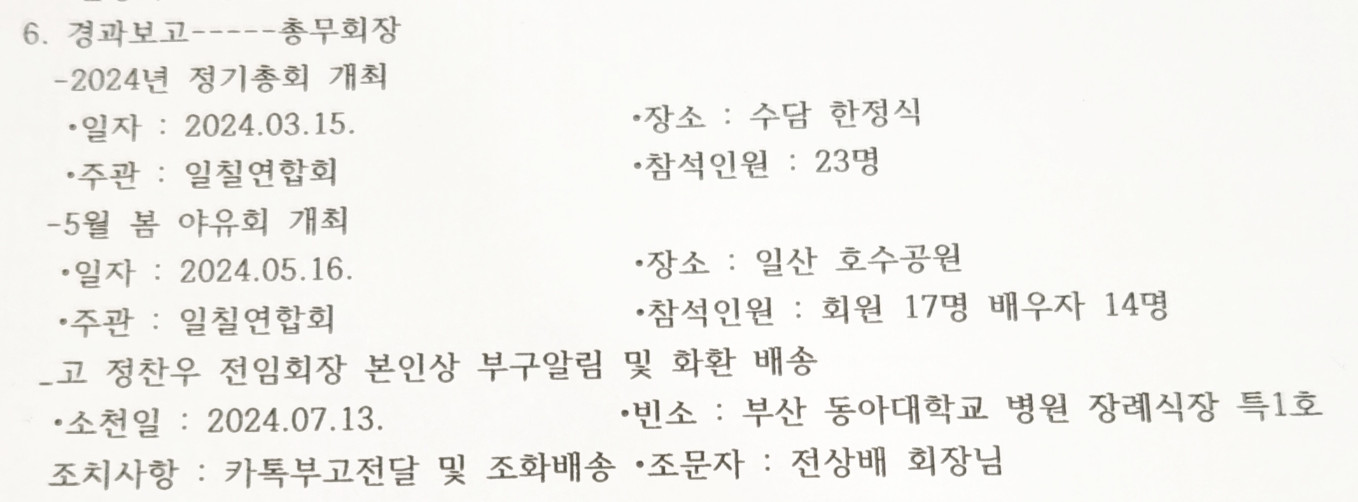 ※신용철 재경향우회장 전달사항