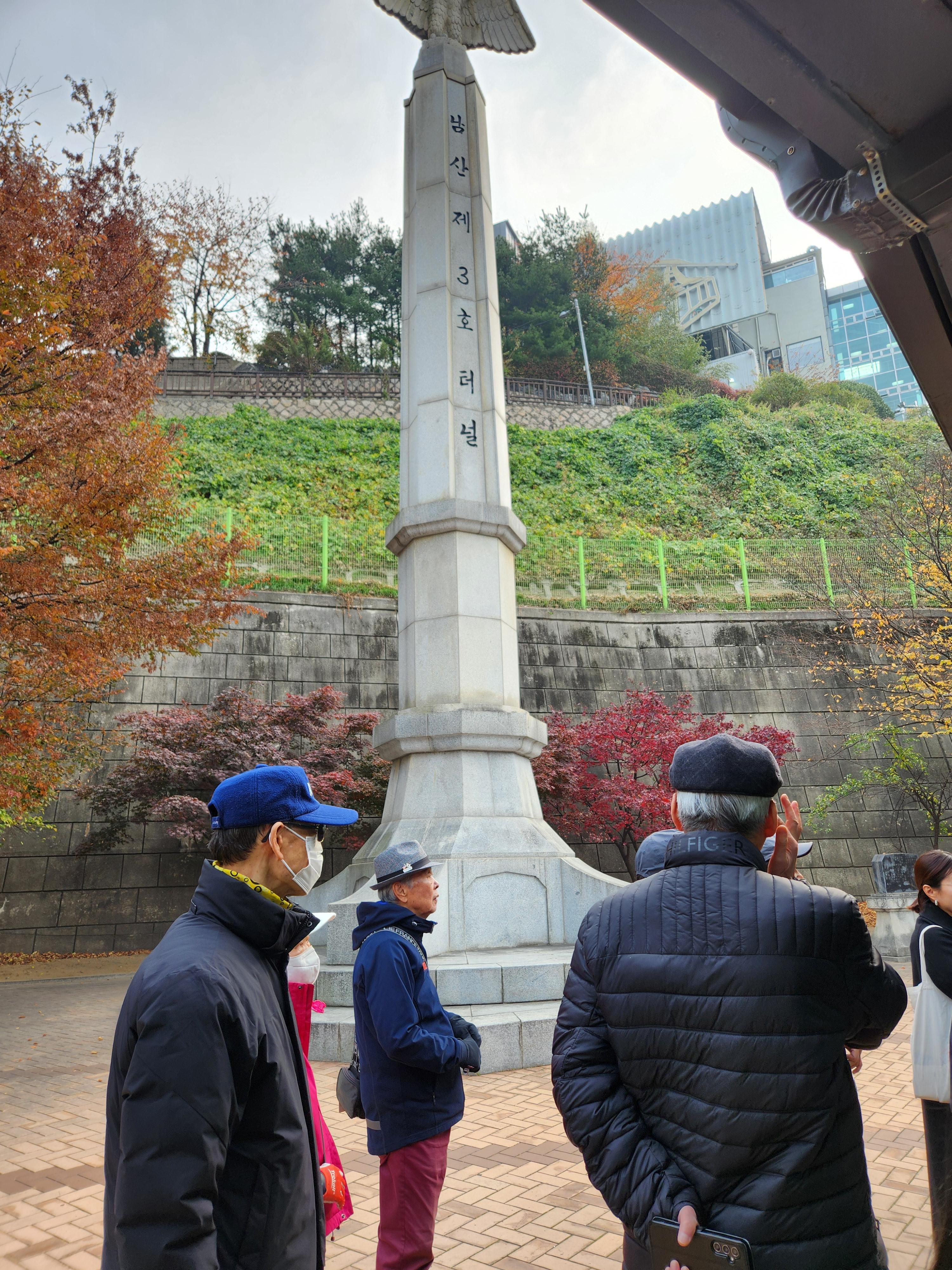 '24.11.21(목) 11시, 명동역 5출구에서 88국대원 뿌리분임 5명이 만나 남산 3호터널 부근의 남산오르미 엘리베이터로 순환길 도로에 올라 남산공원길 서쪽 시작지점으로부터 동쪽으로 서울시청 별관 부근에서 남산골한옥마을로 진입, 한양정도 600년 기념 타임캡슐과 한옥집을 돌아보고 충무로역 부근 맛집 쌈사랑식당에서 점심식사