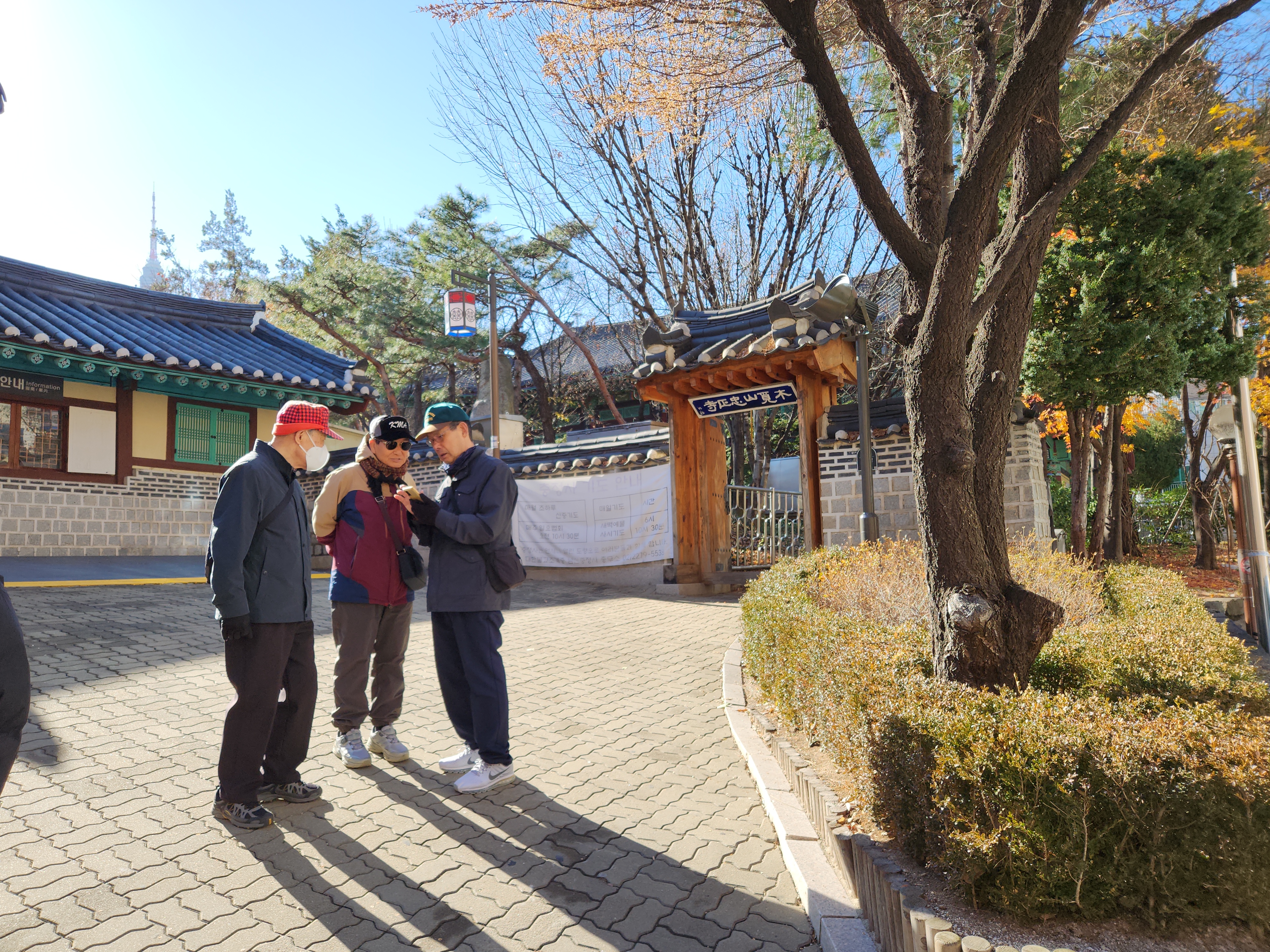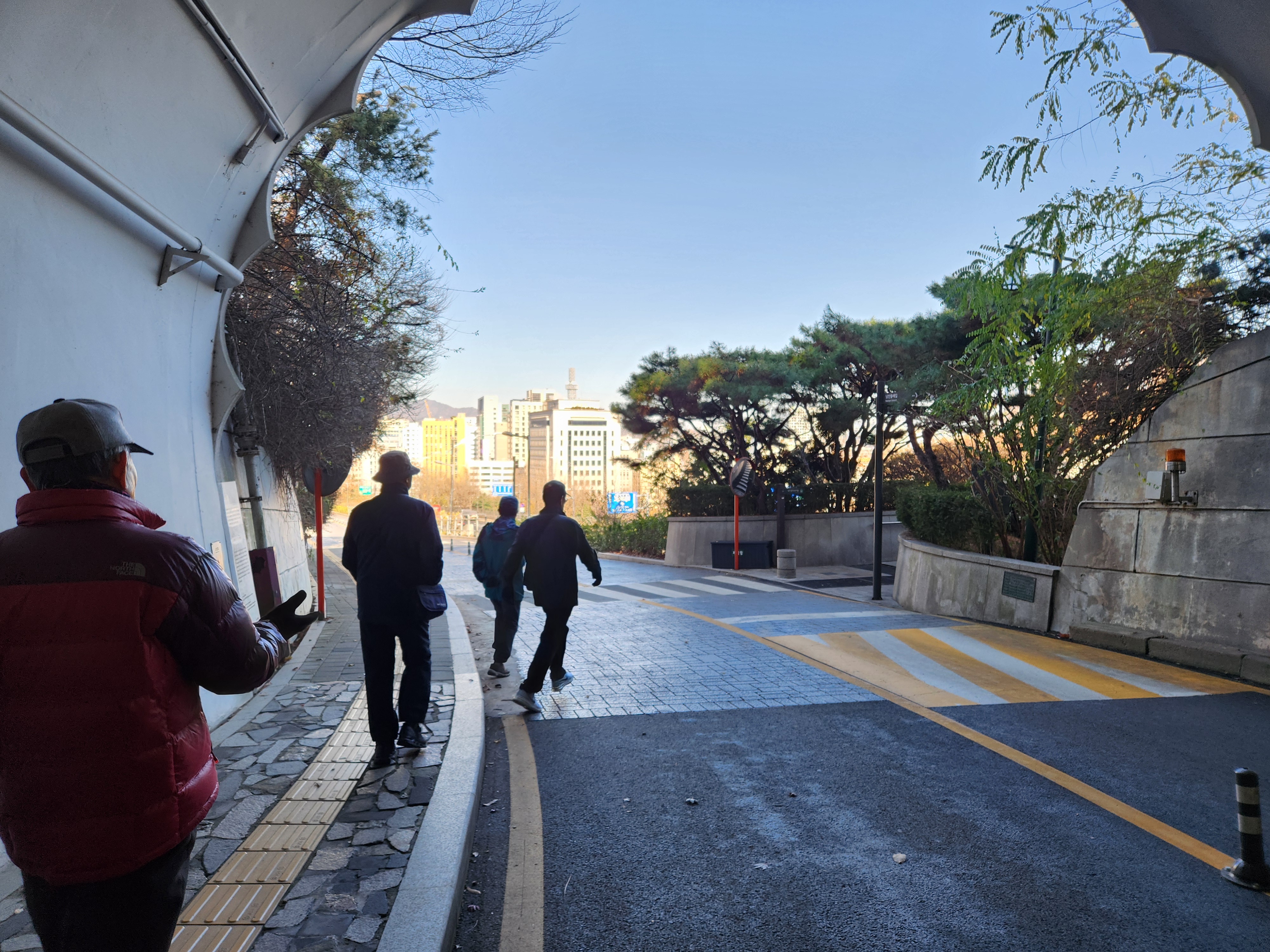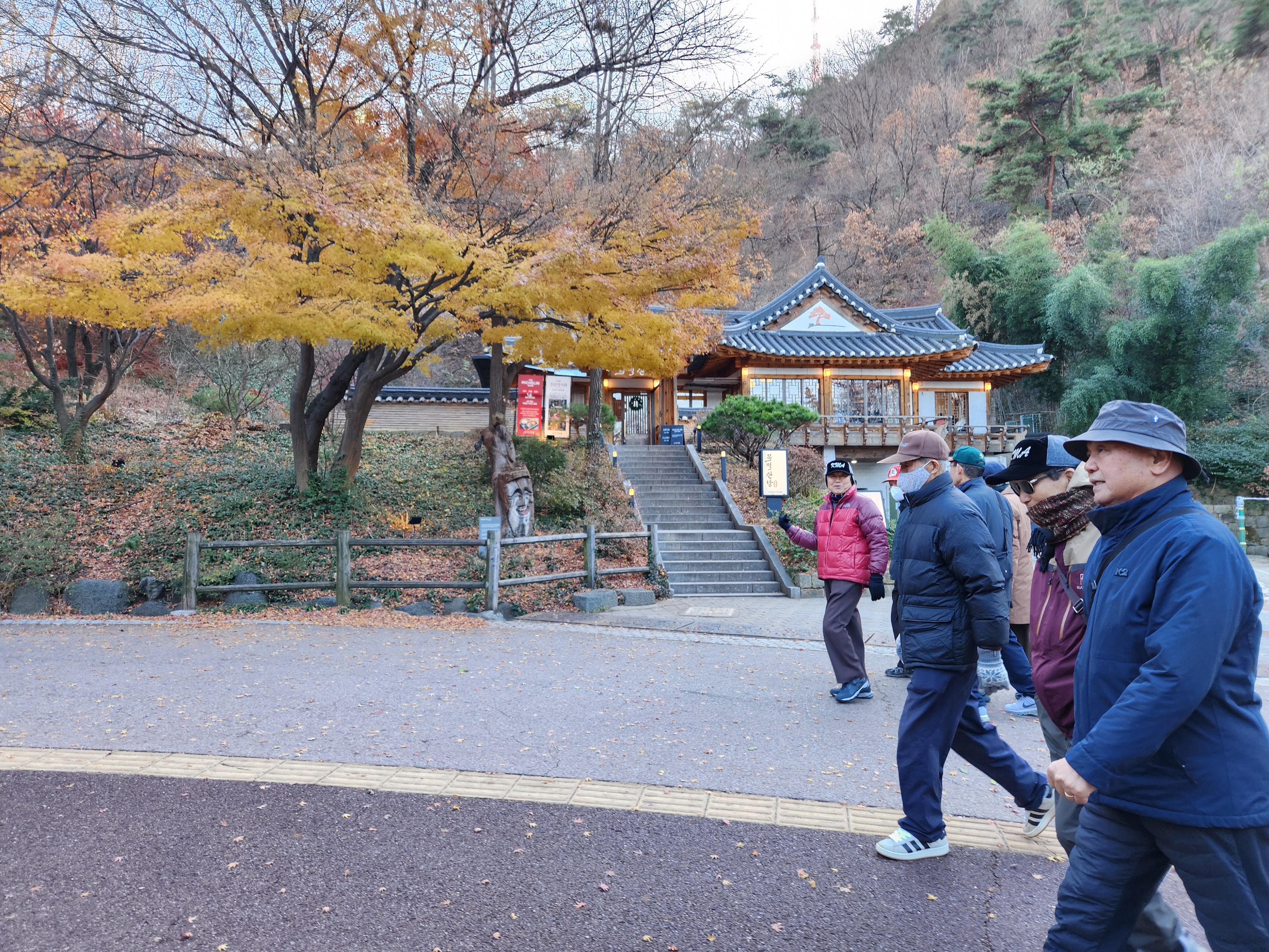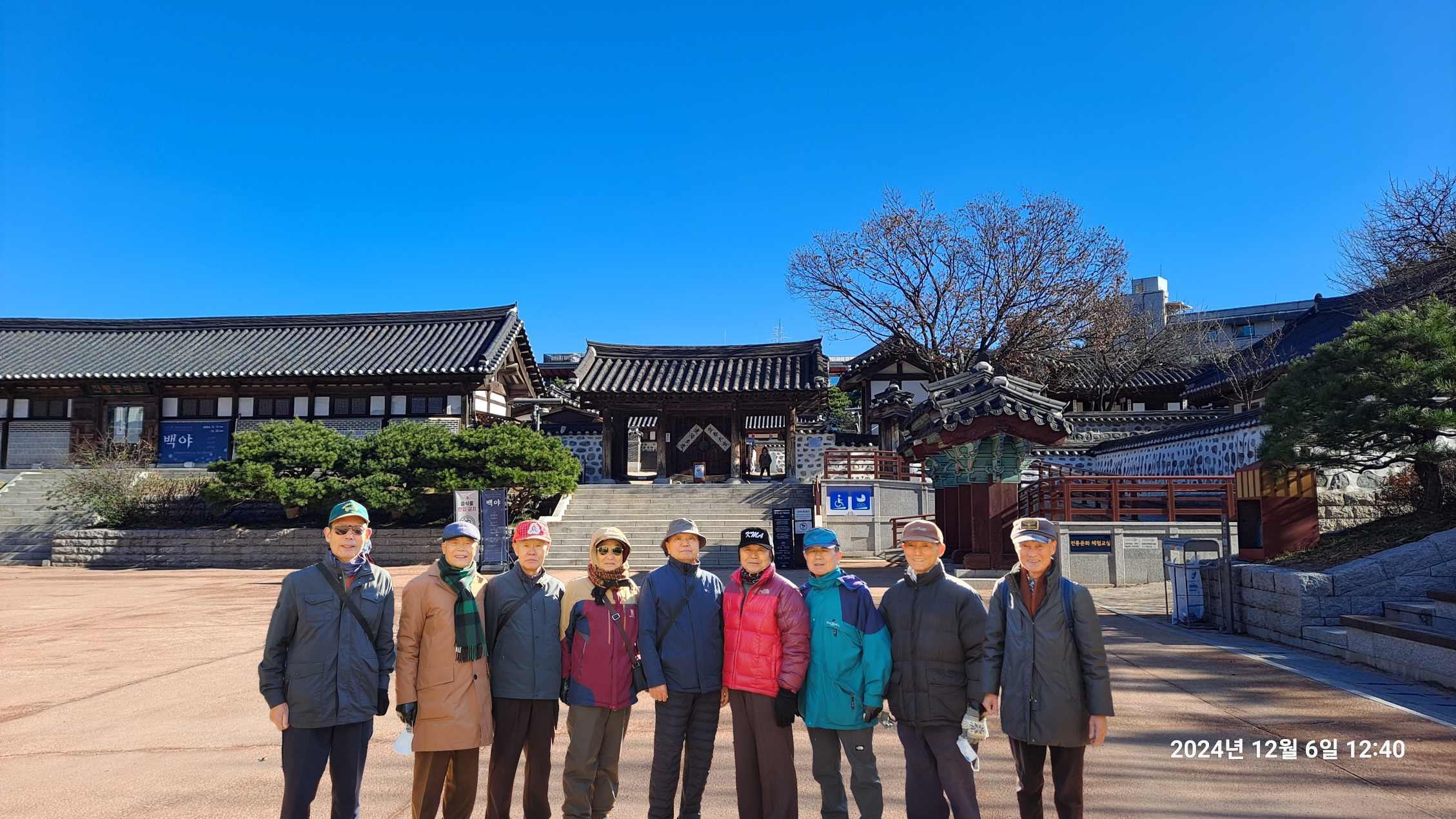 '24.12.6(금) 11시, 4호선 명동역 4출구에서 동기회 여의도포럼 9명이 만나 남산 3호터널 부근의 남산오르미 엘리베이터로 순환길 도로에 올라 남산공원길 서쪽 시작지점으로부터 동쪽으로 서울시청 별관 부근에서 남산골한옥마을로 진입, 충무로역으로 내려와 점심식사