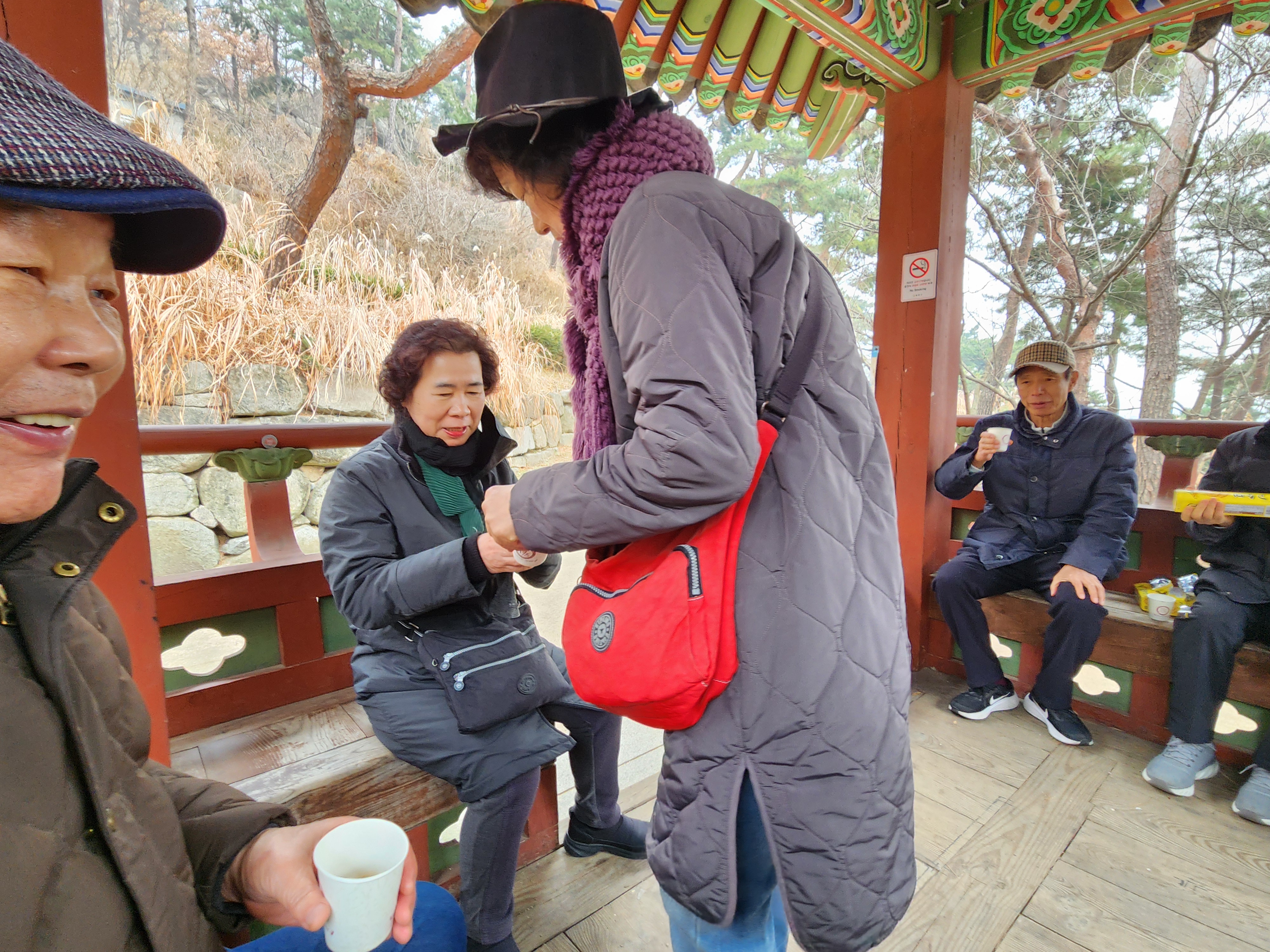정자에서 따끈한 커피 한잔