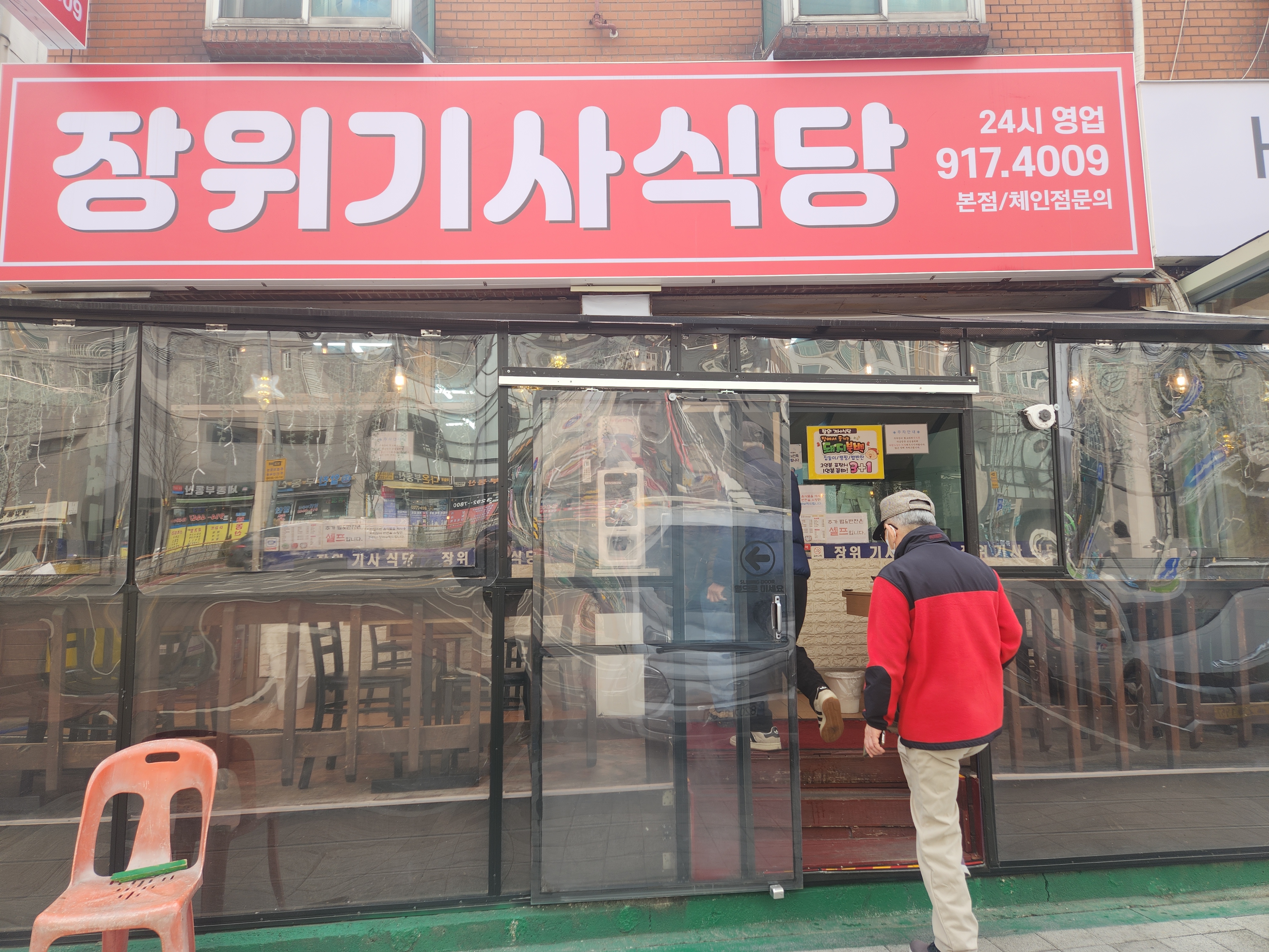 동쪽 정문밖으로 나와 횡단보도를 건너 식당으로
