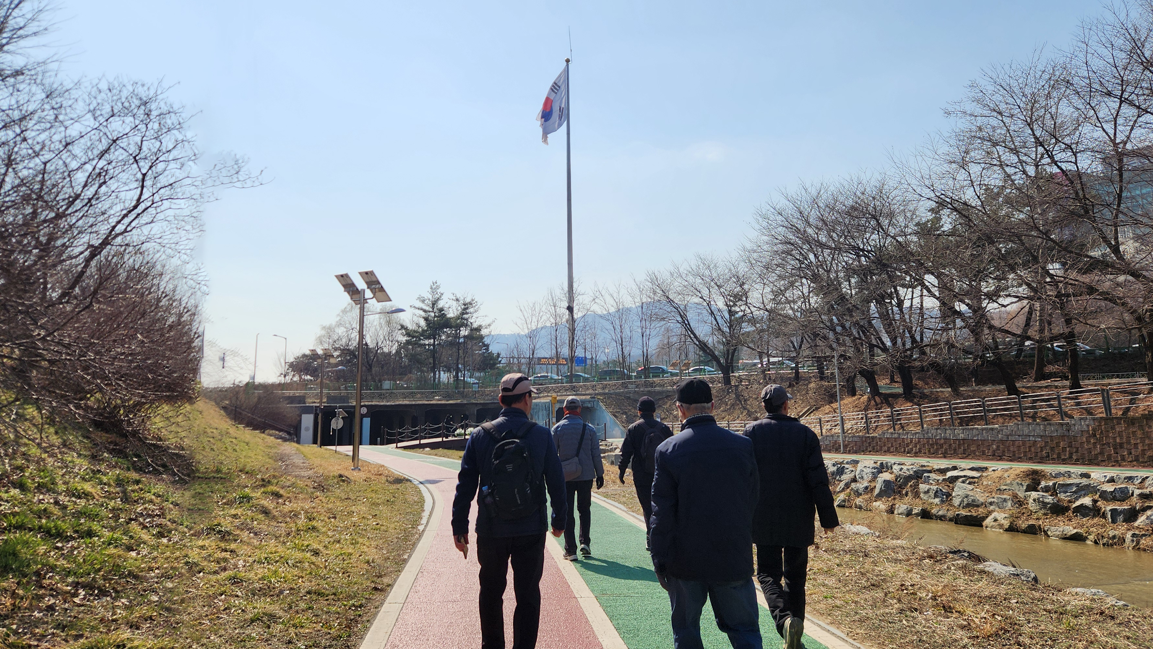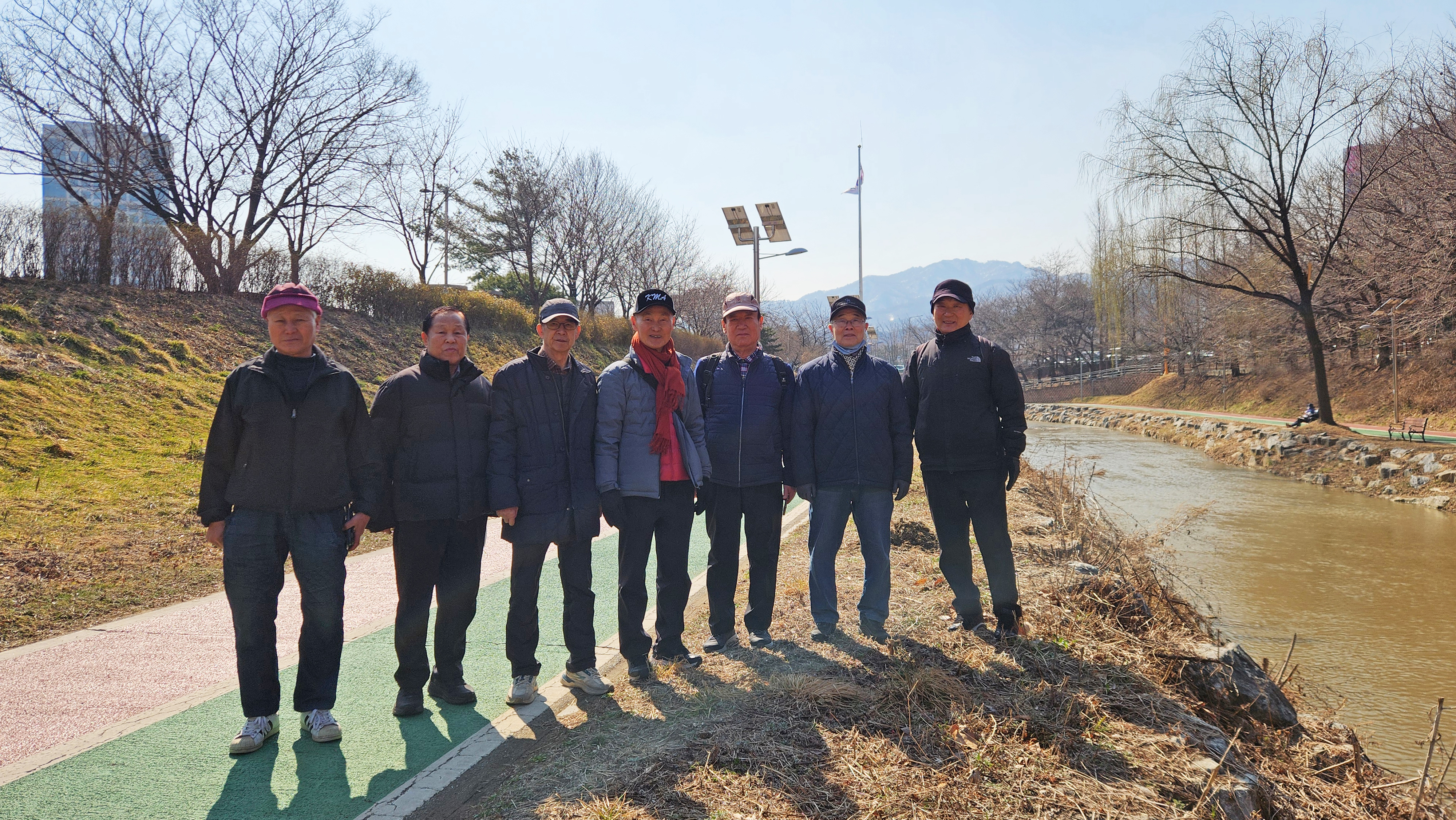 '25.3.19(수) 10:30, 양재시민의숲역에서 종친회 웰빙산행 8명이 만나 여의천을 지나 양재시민의숲을 돌아보고 일동제약 사거리 부근에서 점심식사
