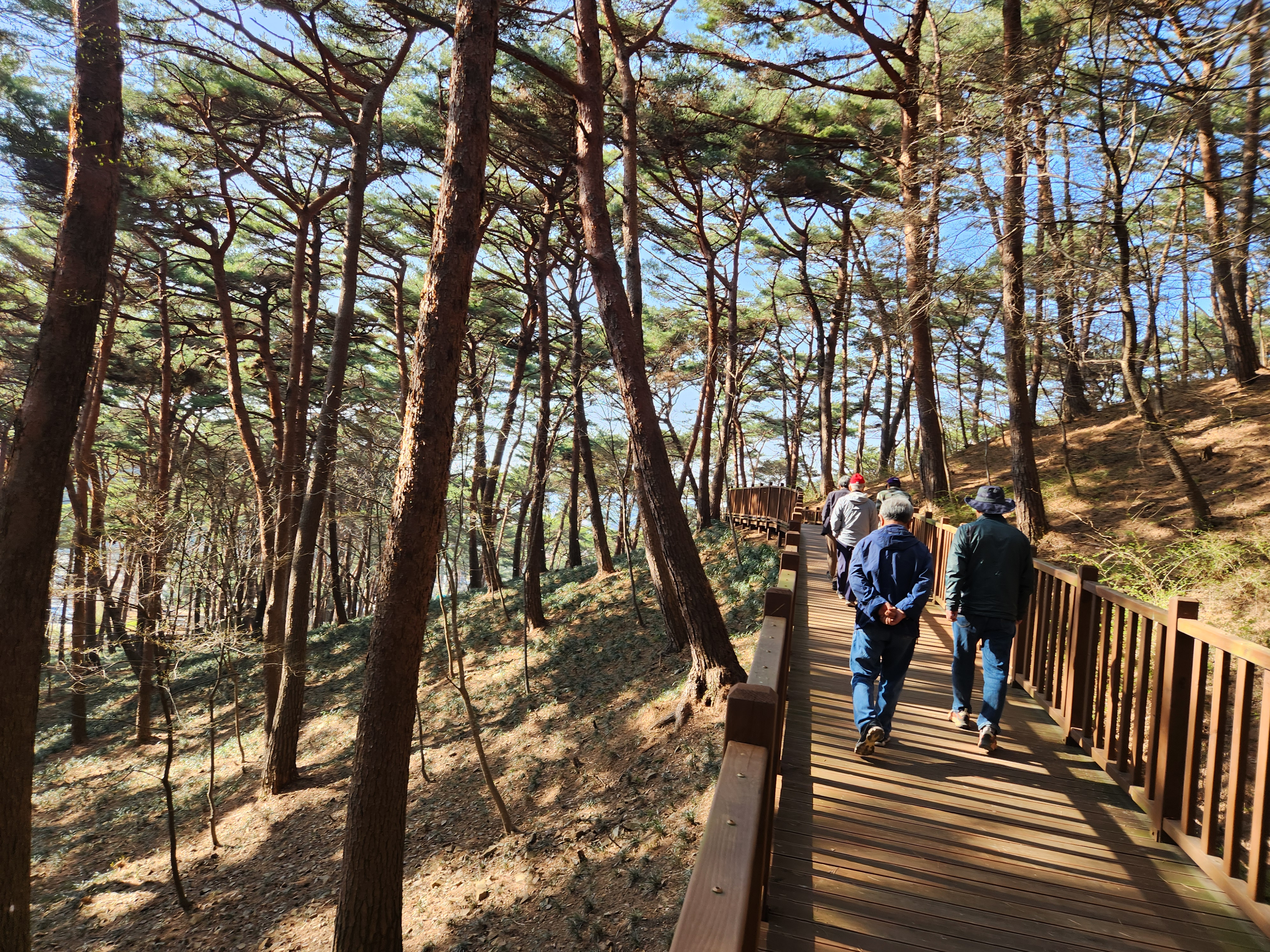 6)버스를 타고 자연휴양림으로 10분 이동하여 무장애데크숲길 30분 산책힐링