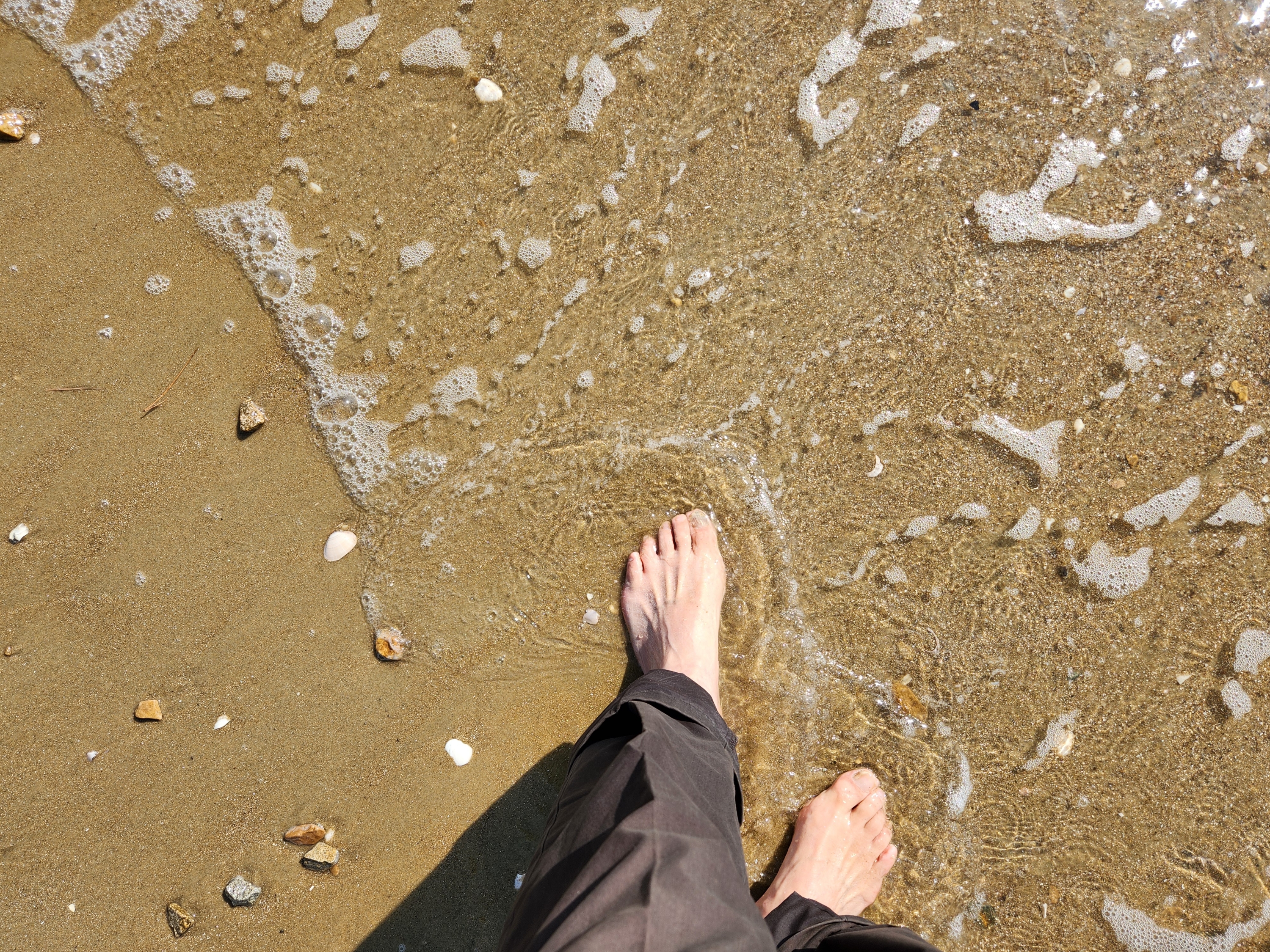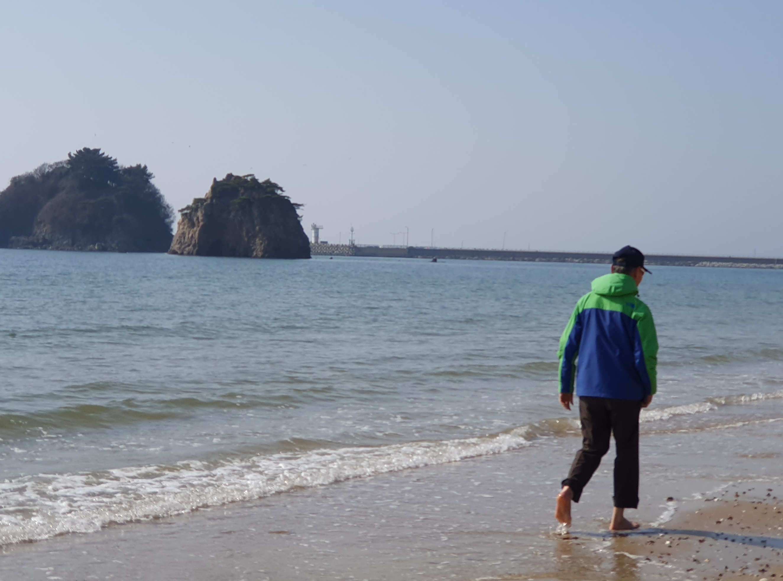 할머니섬 할아버지섬을 배경으로 맨발걷기