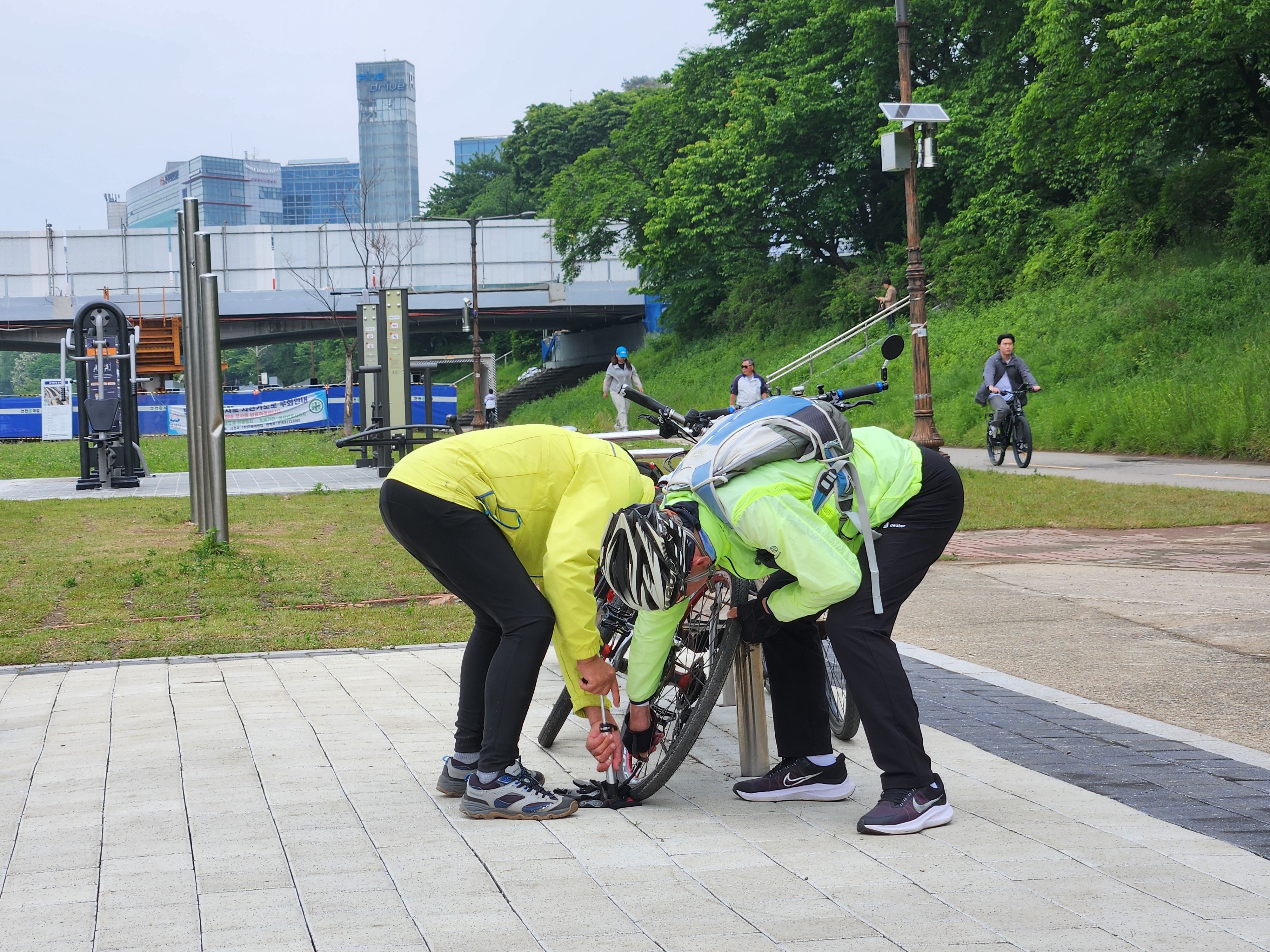 잠수교남단에서 4명의 대원들이 만나 한강상류로 청담대교까지 가서 탄천을 상류로 거슬러 발원지 가까이 자전거길까지 갔다가 구성역에서 마무리하는 평탄한 자전거전용도로 코스이다.