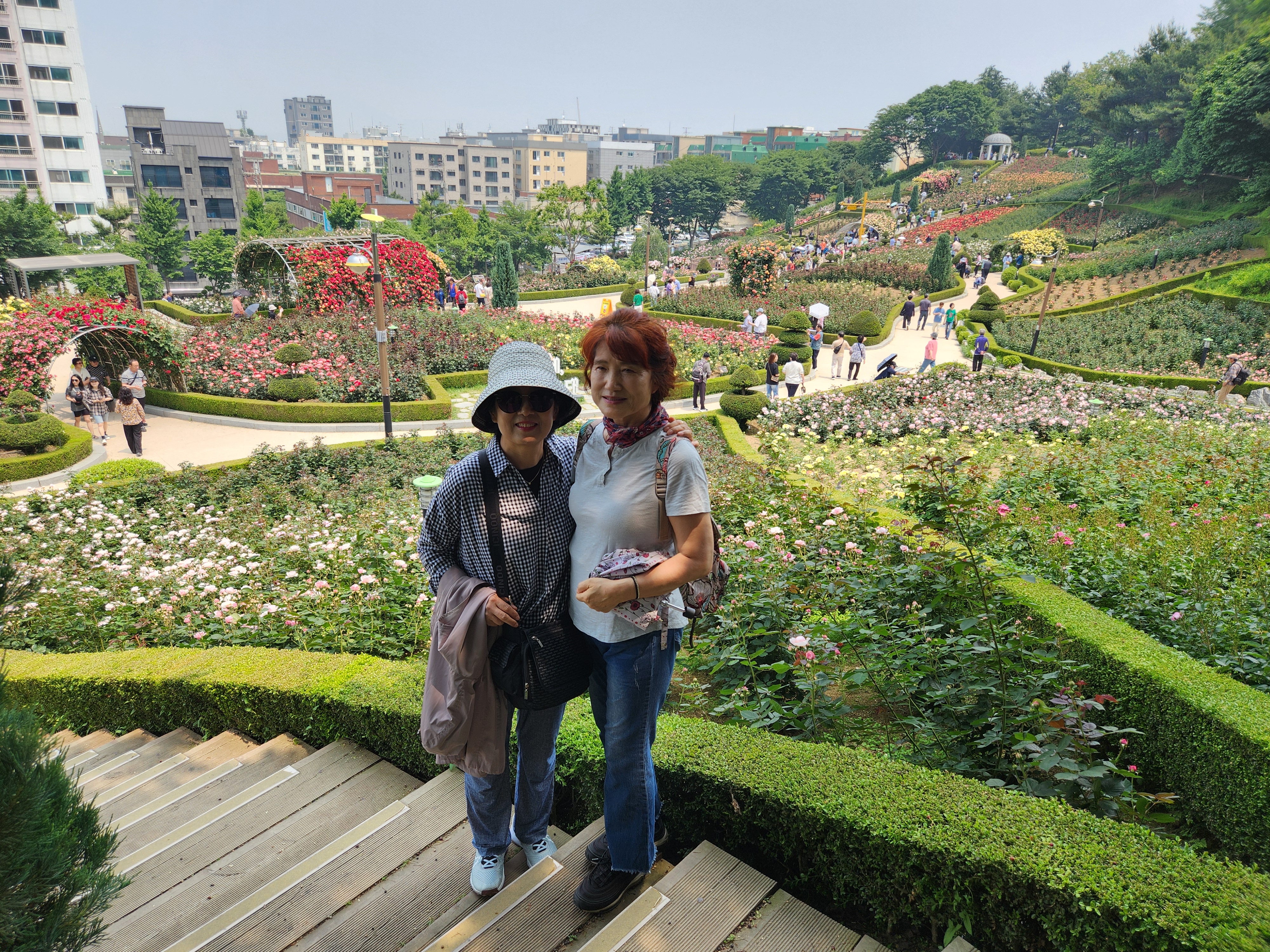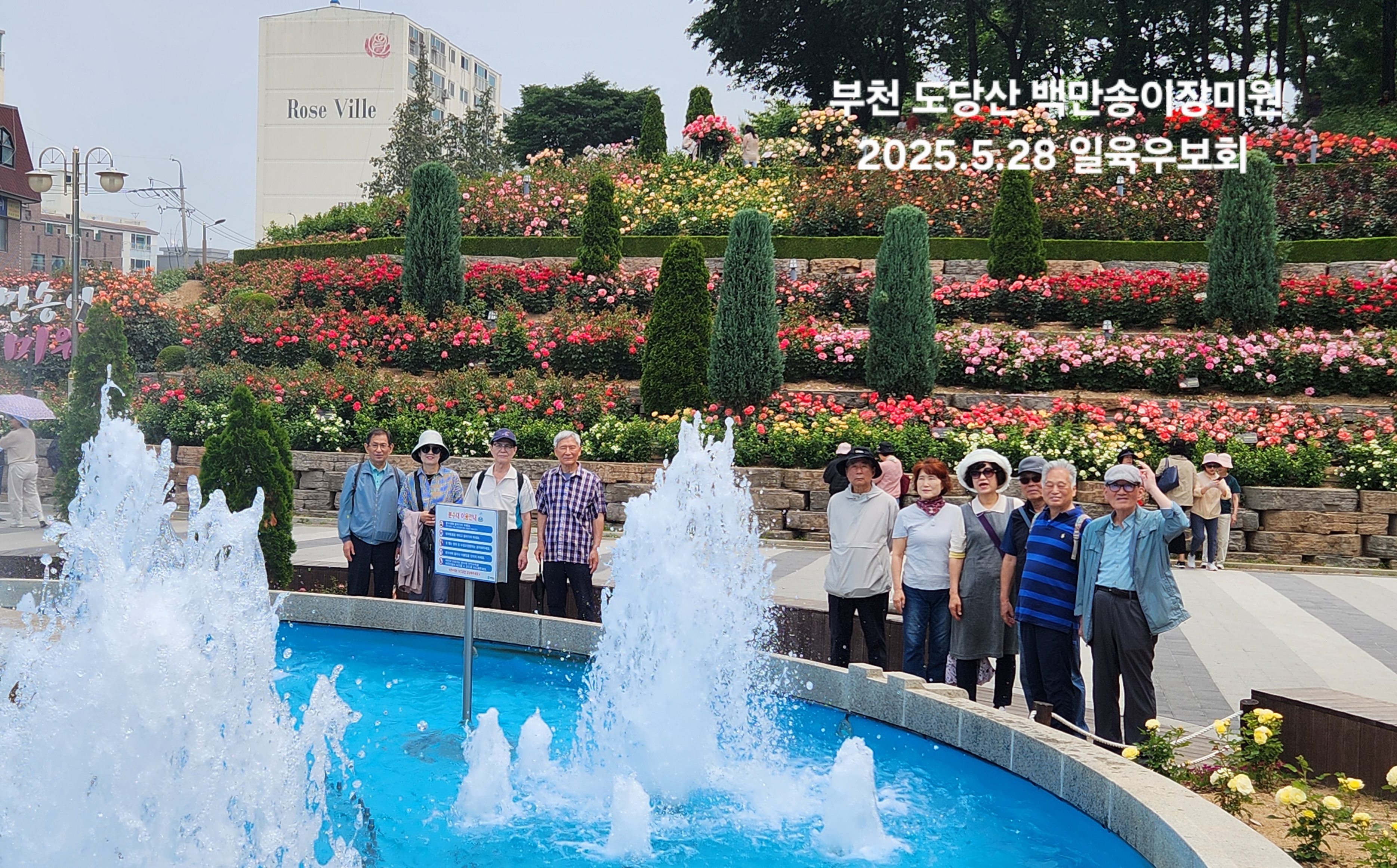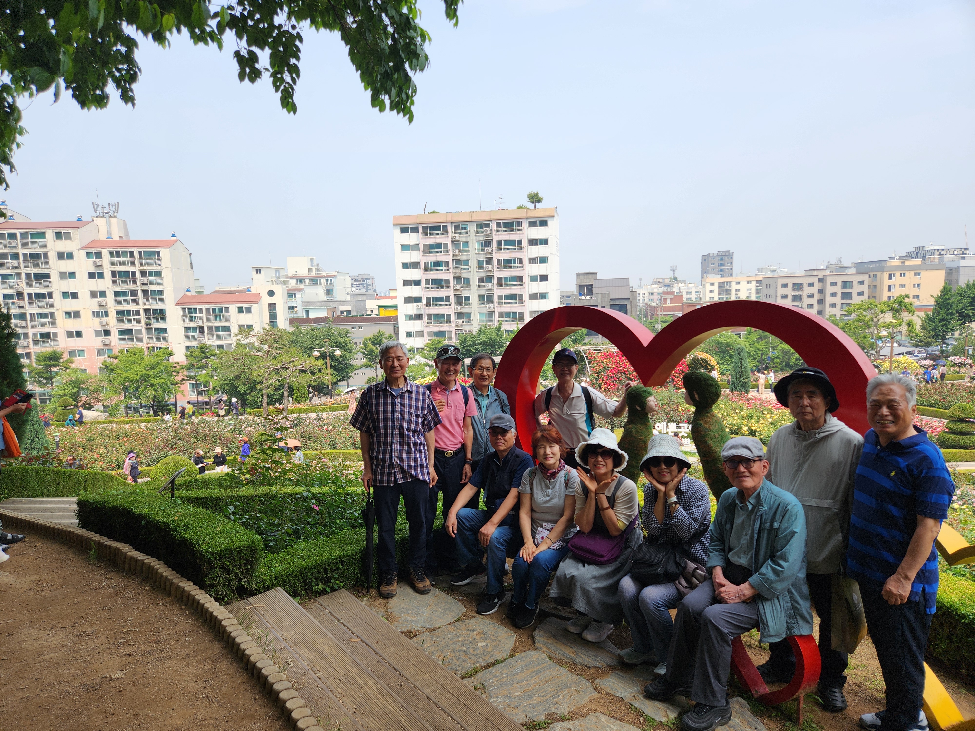 '25.5.26(월) 1030, 7호선 춘의역에서 고교 친구와 가족들 일육우보회 10명이 만나 버스로 도당산 백만송이장미원으로 이동, 공원산책 후 까치울역 부근 맛집에서 점심식사.
