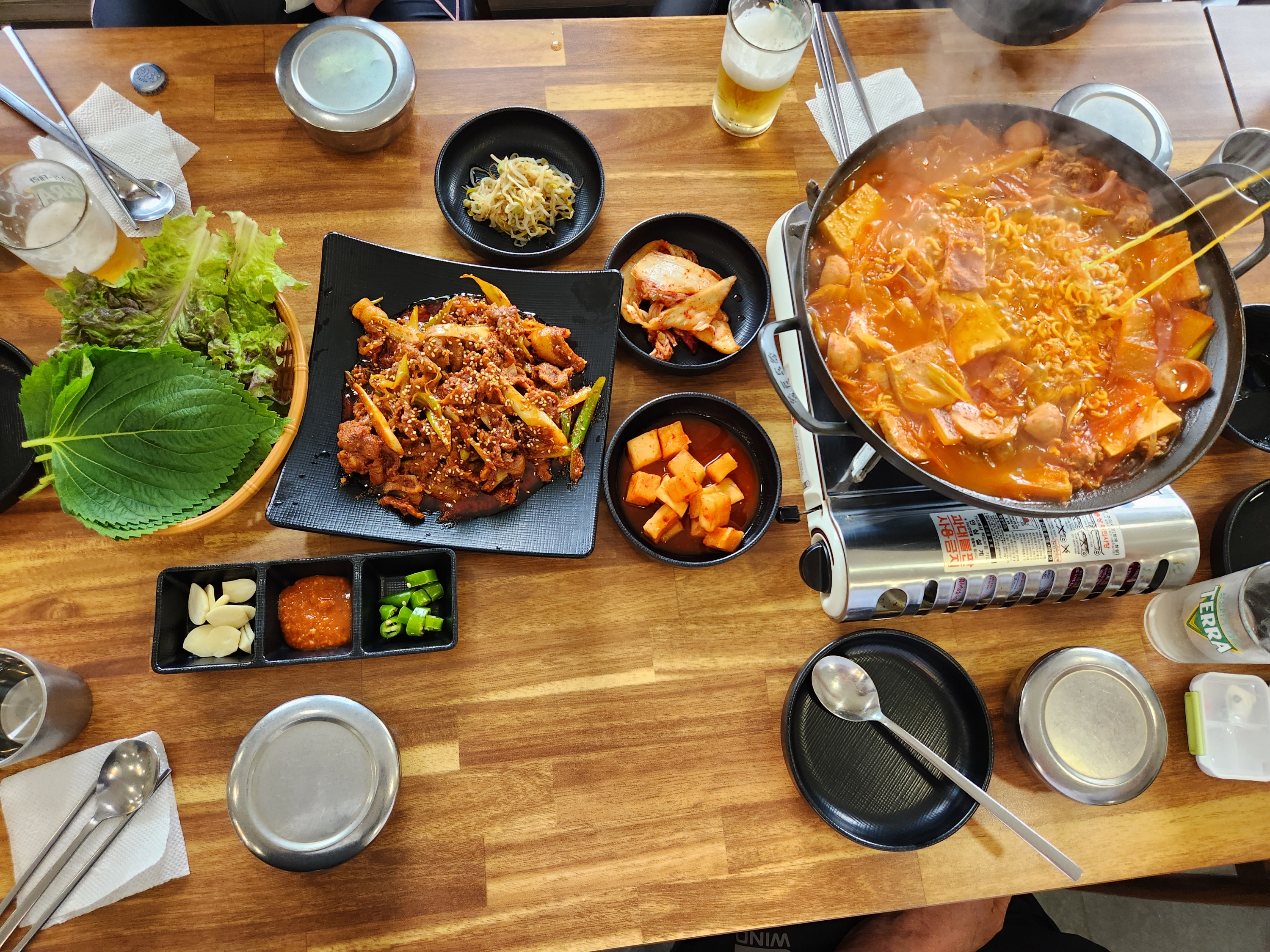 부대찌개와 제육 점심식사