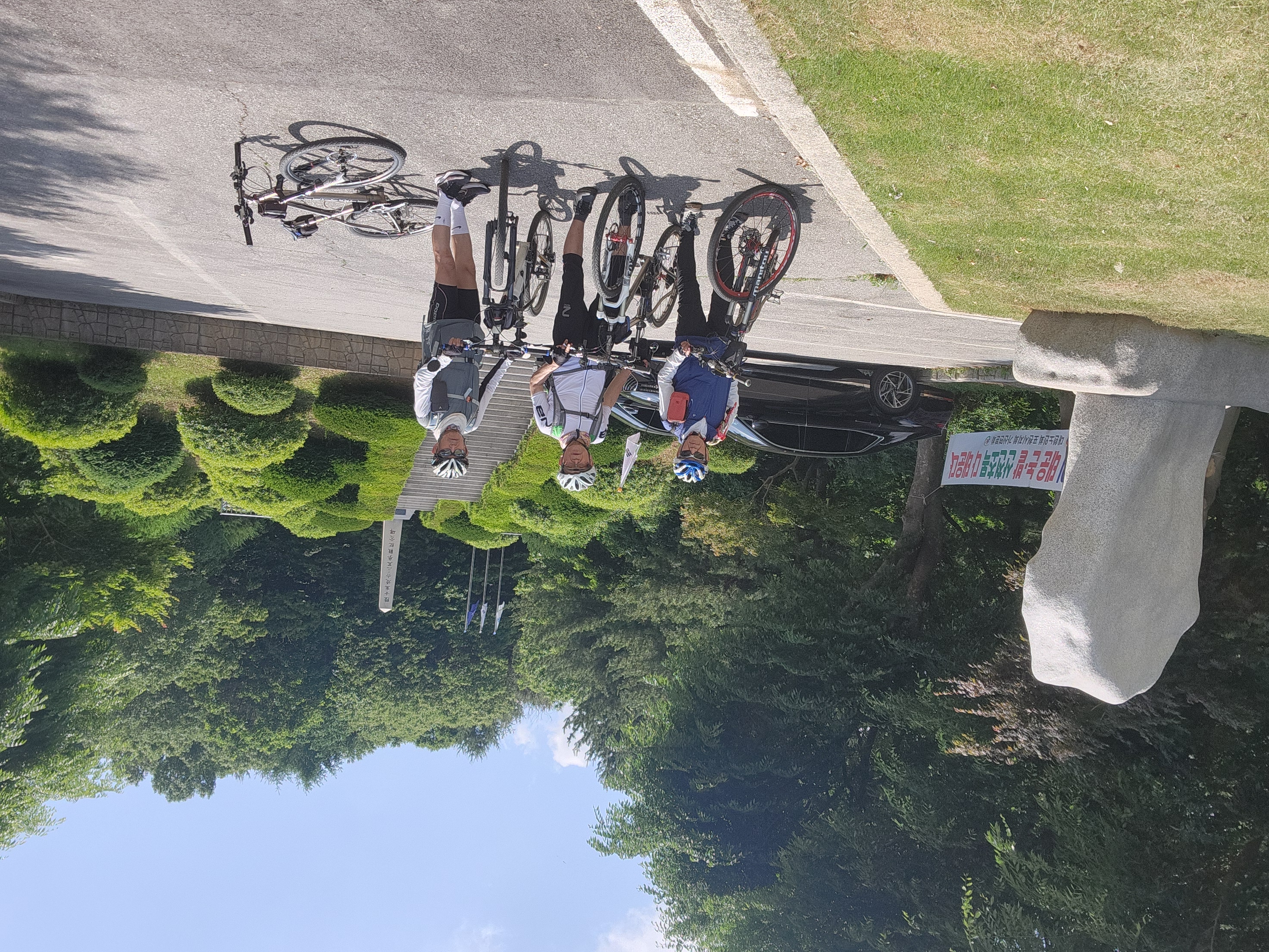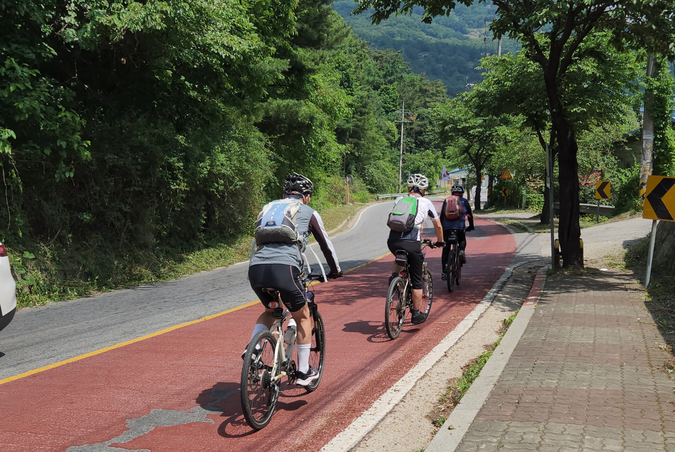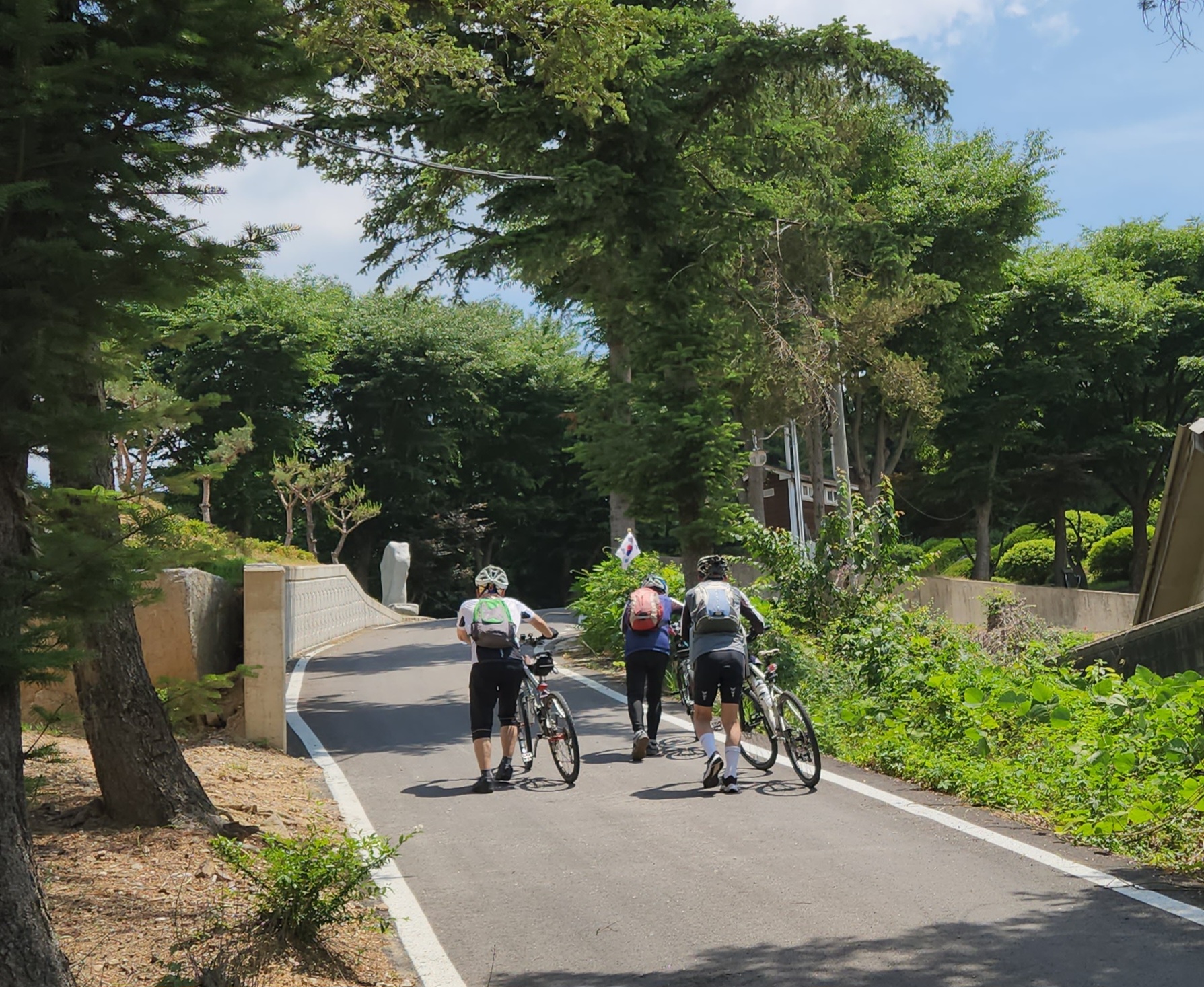 길찾기 전문가인 김명수동기가 앞장서서 구글지도로 찾은 길을 따라 안내해주어 뒤따라 가기만 하면 된다. 마치 네비따라 운전하듯이 어딘지도 모르고 따라간다. 맨뒤쪽 홍토마동기가 주요 포인트마다 사진을 찍으면서 따라온다. 라이딩결과는 스머프차 대장이 소상하게 코스에 연계된 역사적 사실들과 현재의 실상을 눈에 보이듯이 묘사하고 정리해서 올려주는 등 4명의 분담이 잘되어 있다.