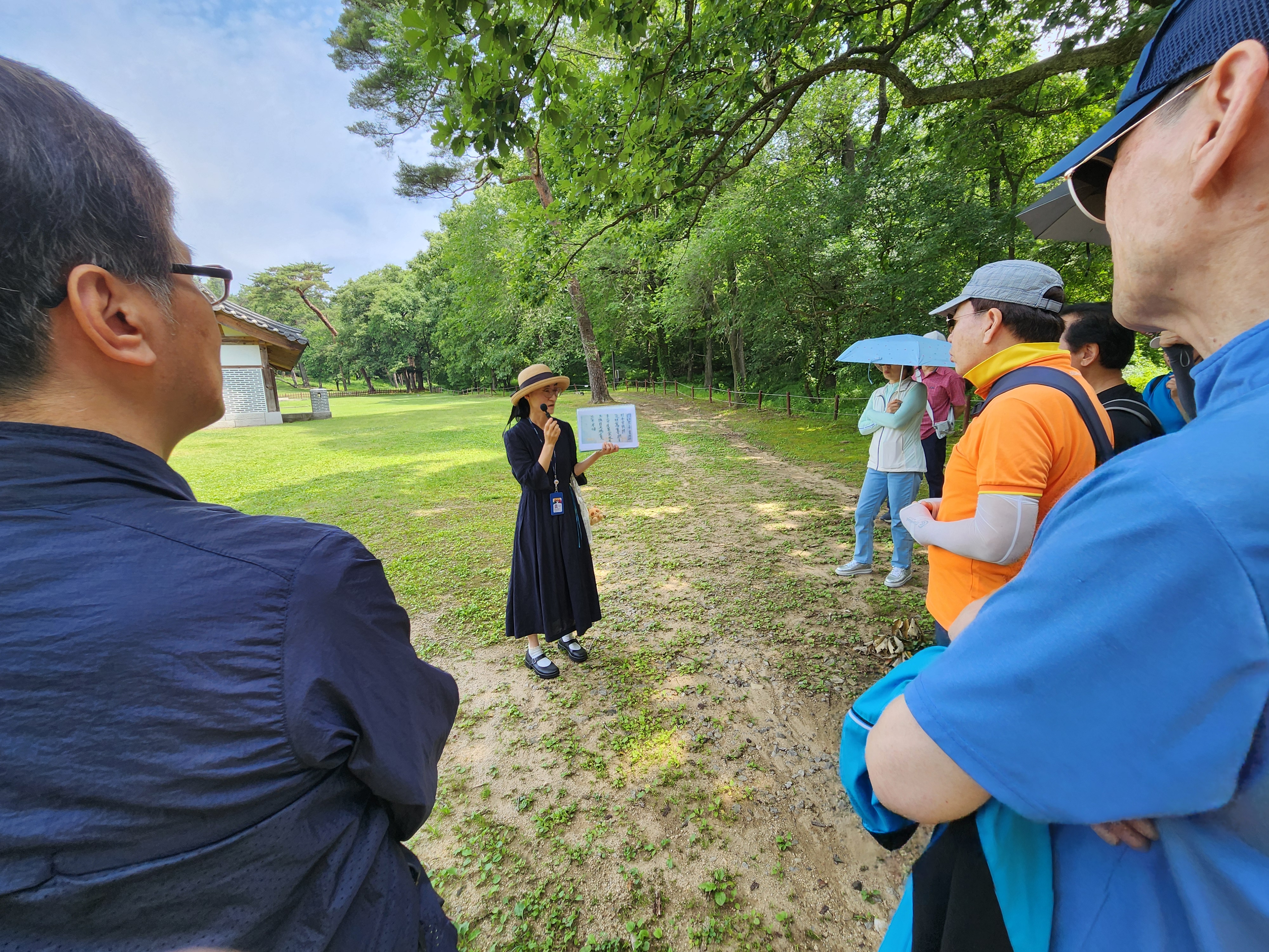 동구릉 매표소 부근에서 역사문화해설사와 가볍게 인사나누고 1시간 30분 동안 수릉, 현릉, 건원릉을 차례로 탐방하기로 하였다. 동구릉의 역사에 대하여 간단하게 설명하고 먼저 재실(齋室)로 향한다.