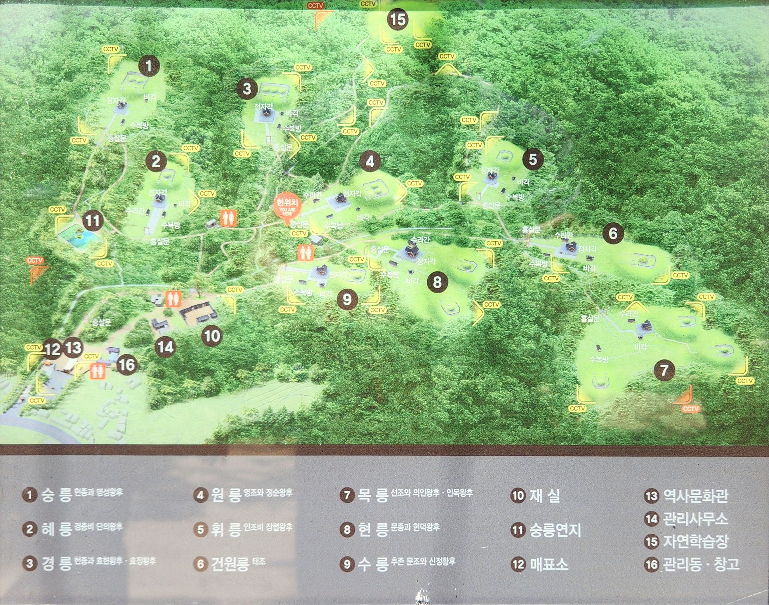뙤약볕이 쨍쨍한 무더운 날인데 동구릉 숲속은 계속 그늘이라 길도 널찍하고 시원해서 관람하기에 불편함이 없다. 권역이 너무 넓어서 9개소를 다 돌아보기가 쉽지 않지만 몇군데는 특징적으로 가봐야할 곳들이다.
