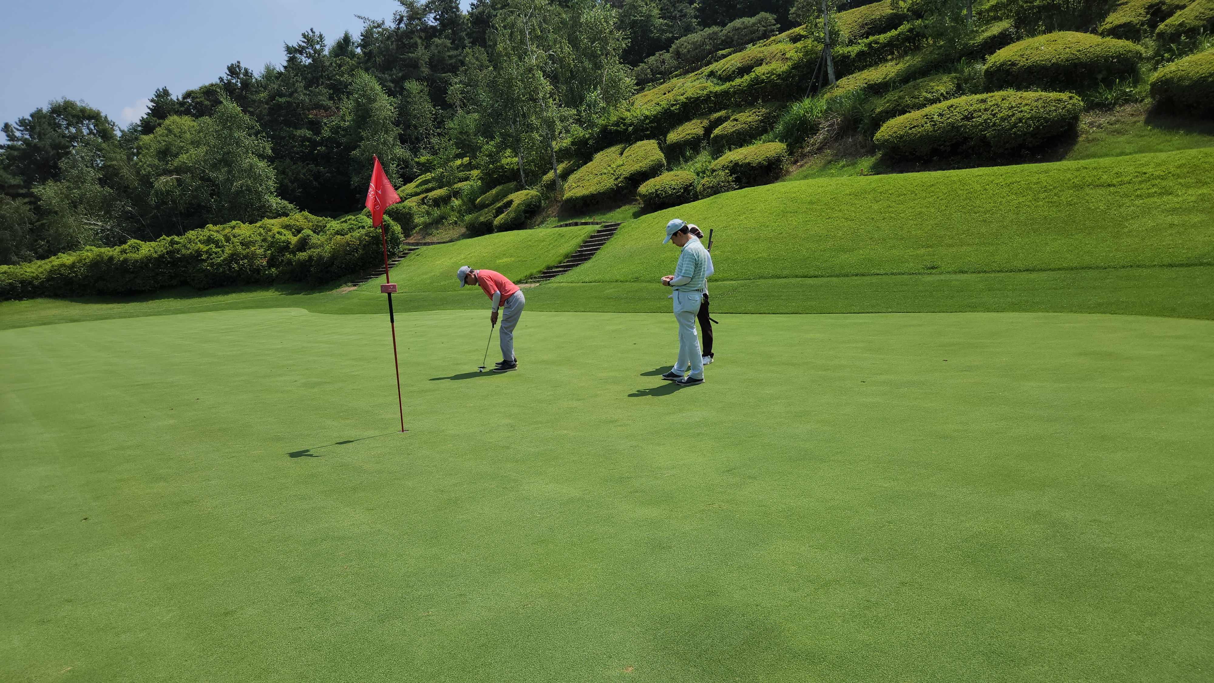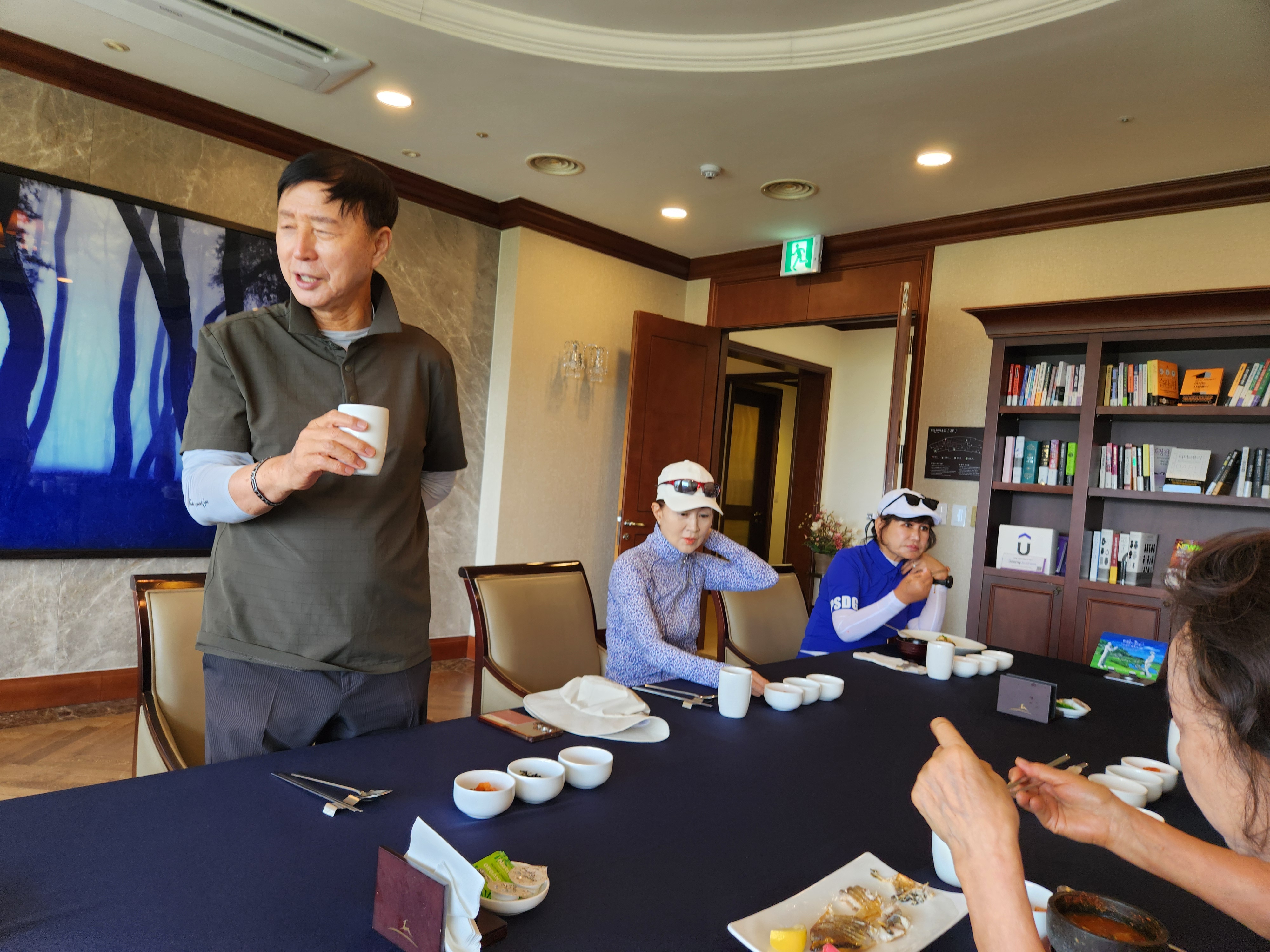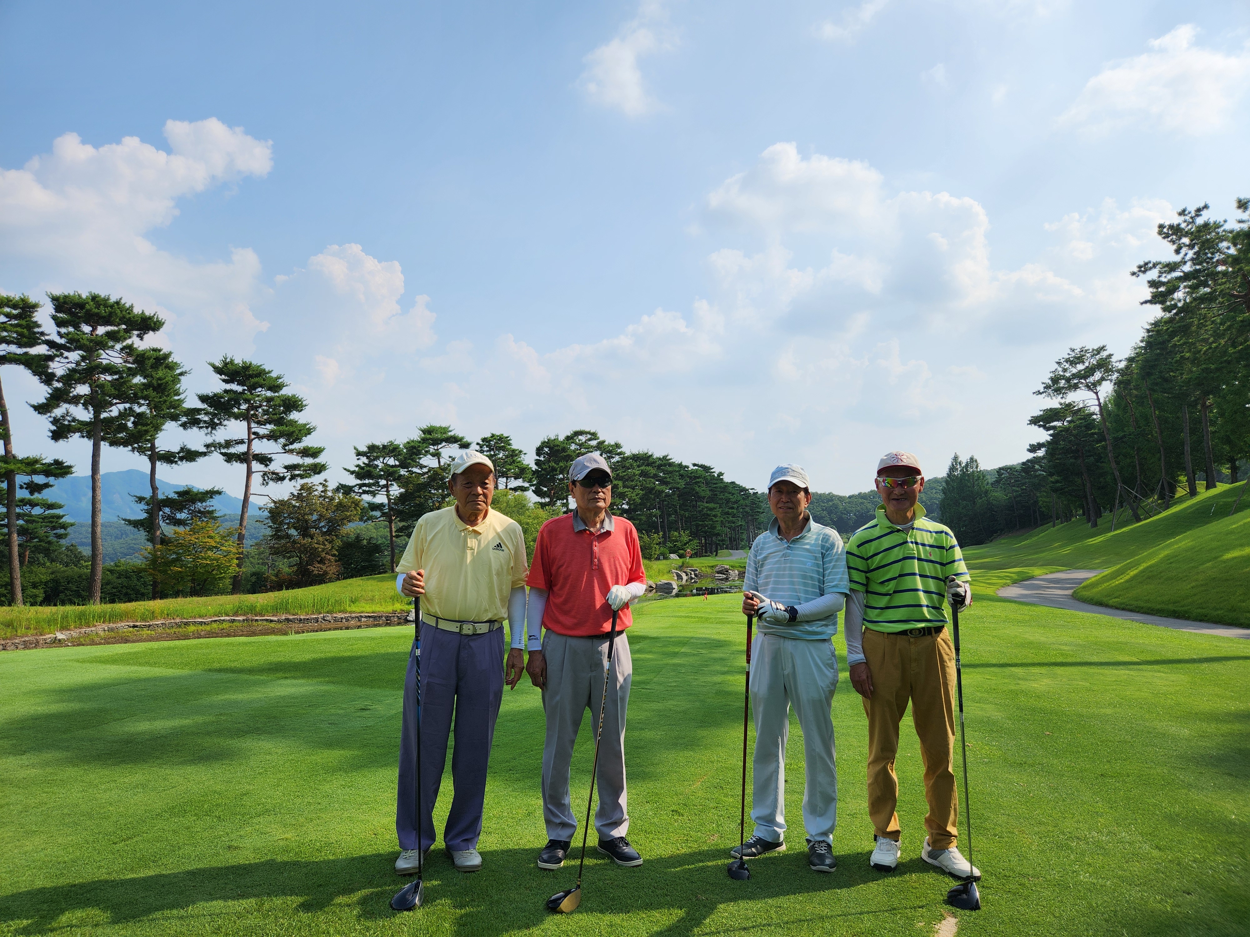 그런데 가장 더운 12시반부터 시작하여 땡볕에서 4시간반 골프라운딩을 한다. 18홀 다 돌 수 있겠나 하고 시작했는데 85세 김주한회장도 끝까지 함께 하신다. 조진경회장은 카터도 안타고 계속 걸었다고 한다.