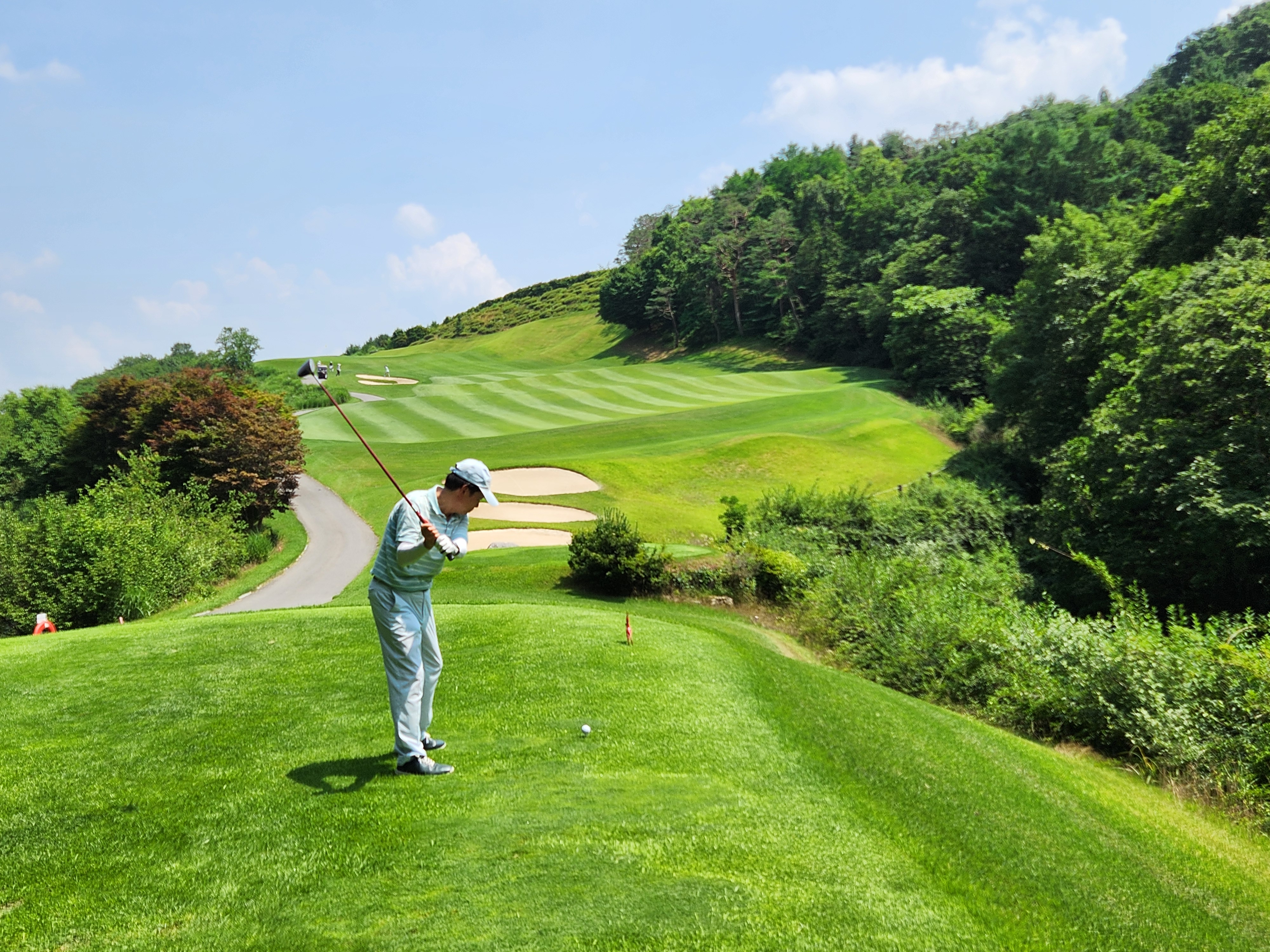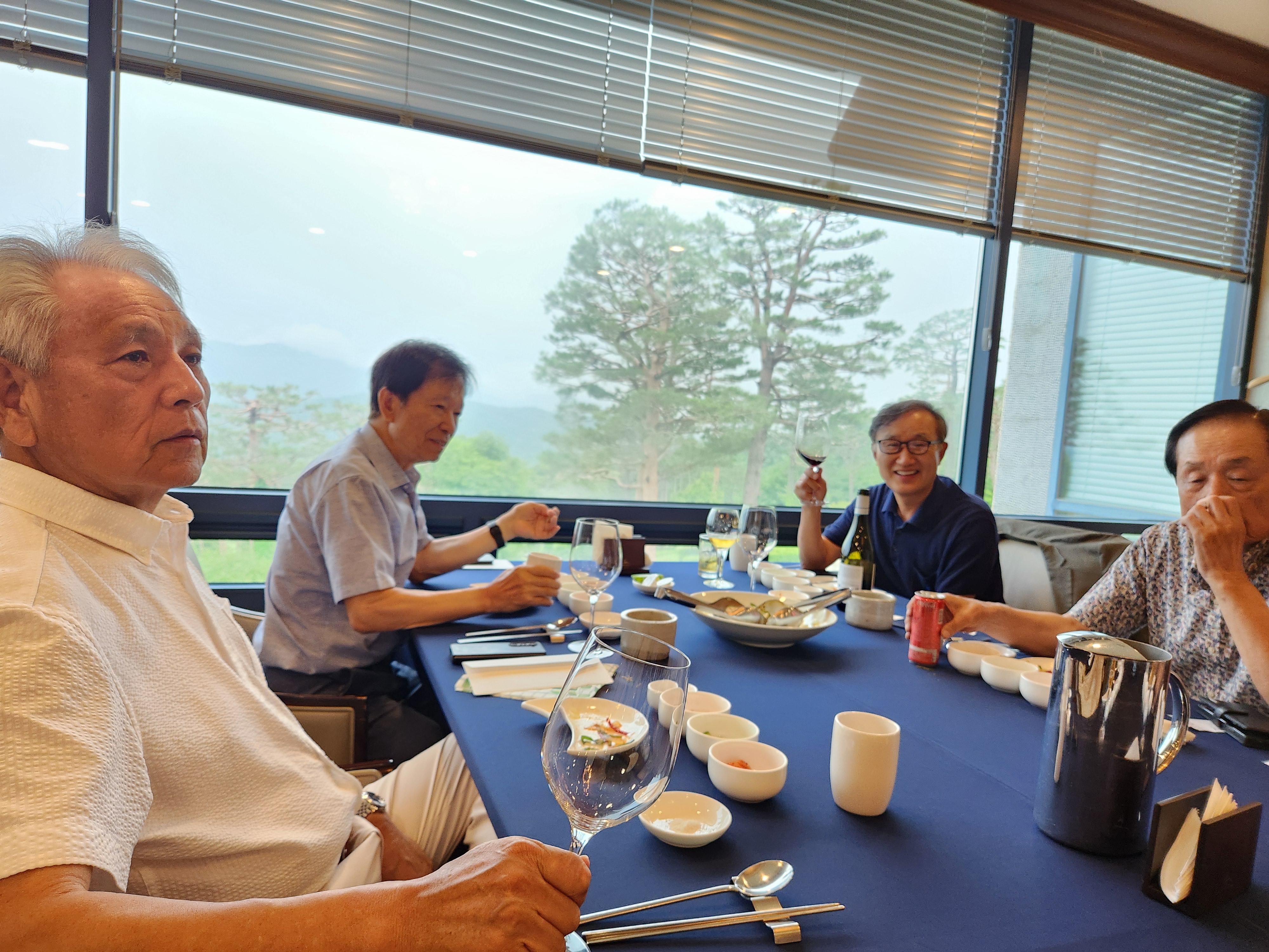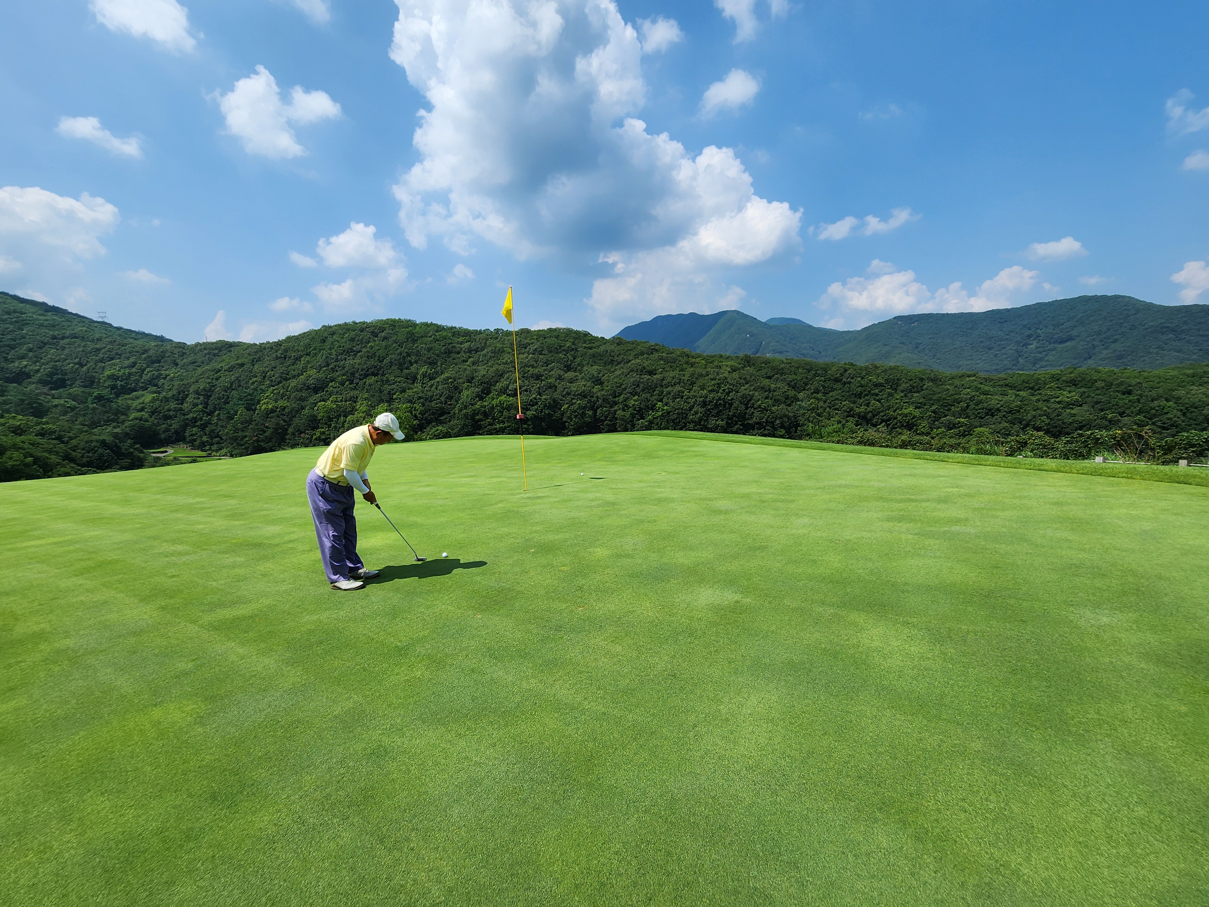 그런데 가장 더운 12시반부터 시작하여 땡볕에서 4시간반 골프라운딩을 한다. 18홀 다 돌 수 있겠나 하고 시작했는데 85세 김주한회장도 끝까지 함께 하신다. 조진경회장은 카터도 안타고 계속 걸었다고 한다.