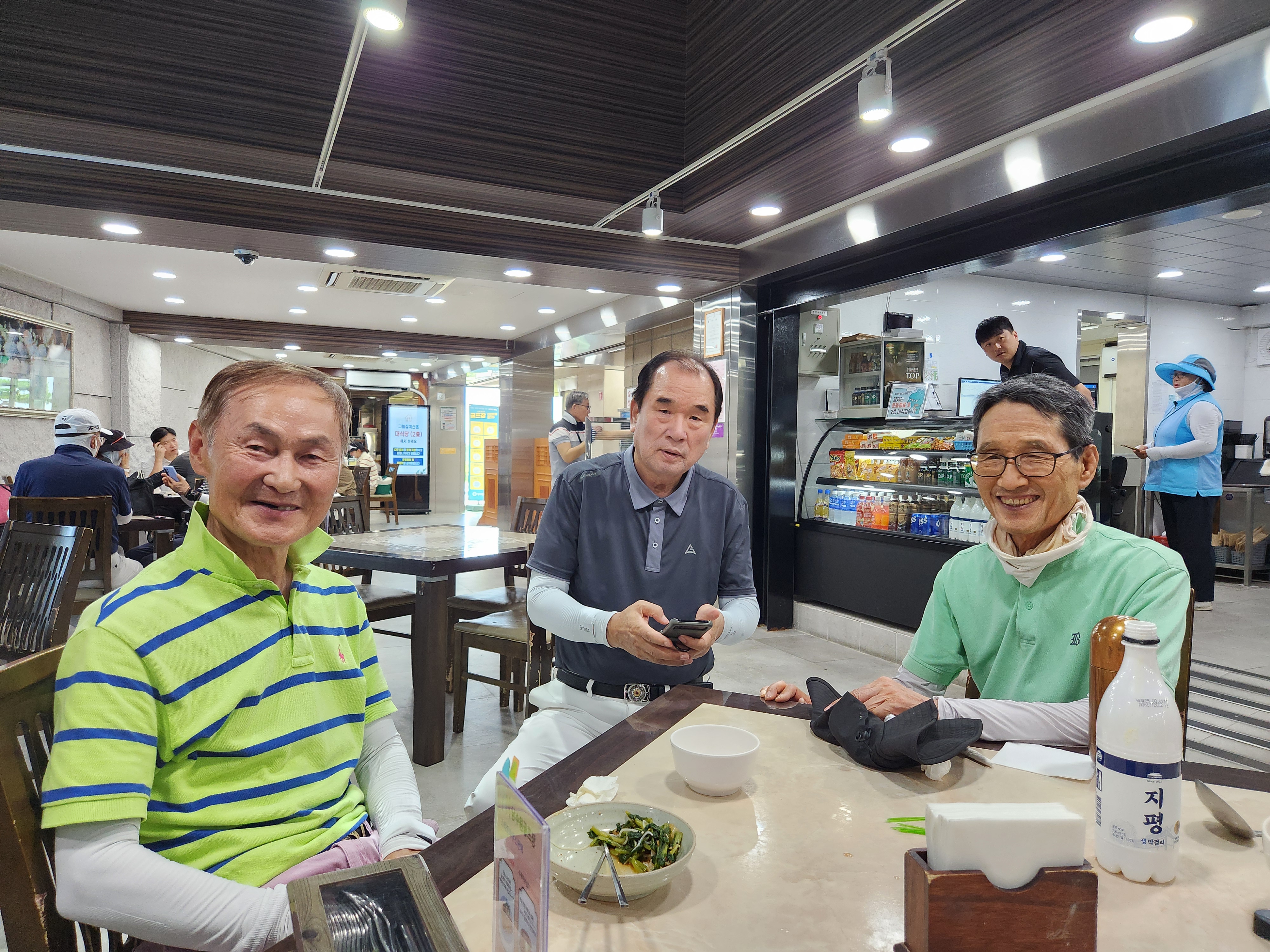 아침부터 구름없는 쨍쨍 땡볕 무더위로 시작하여 5시간정도 골프라운딩을 한다. 80세 넘은 김용균 차기문 최영호선배 모두 쌩쌩하시다.