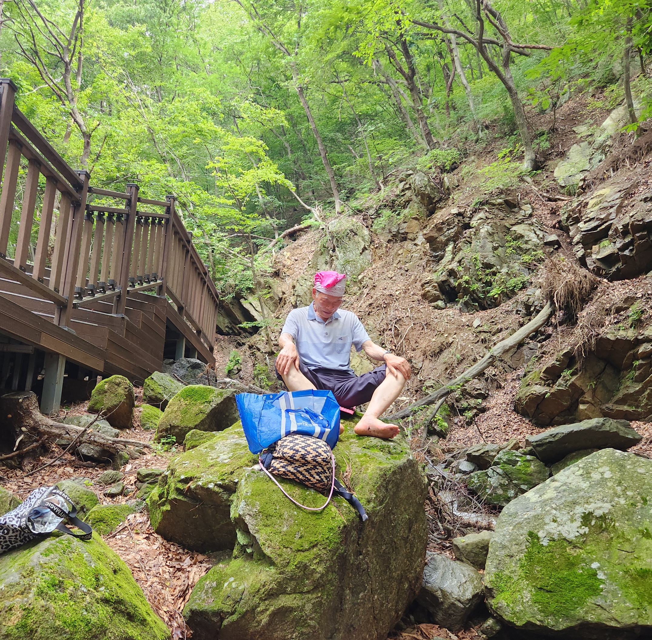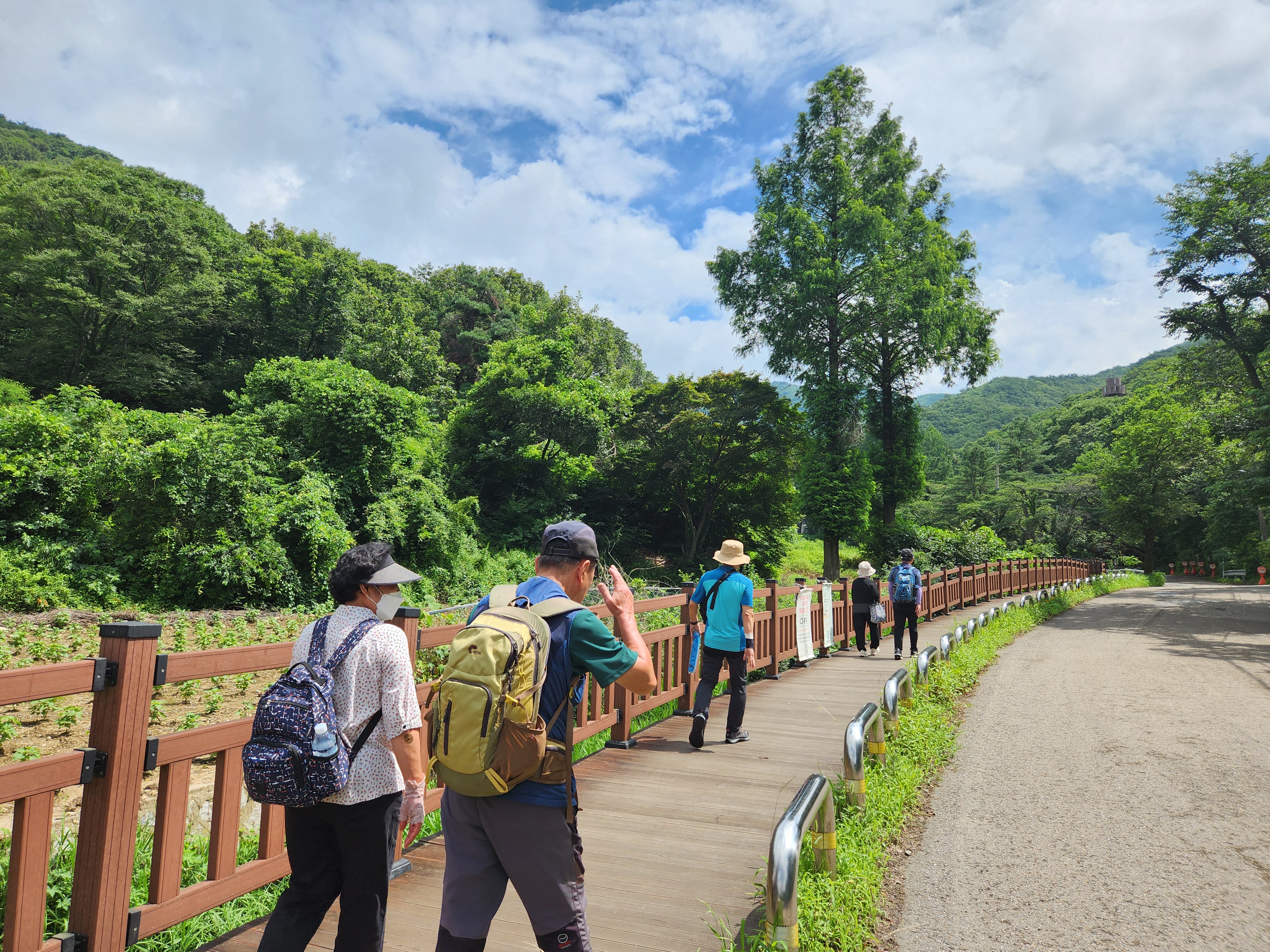 버스종점에서 계곡상류로 10여분 올라가 맑은숲 덱크길로