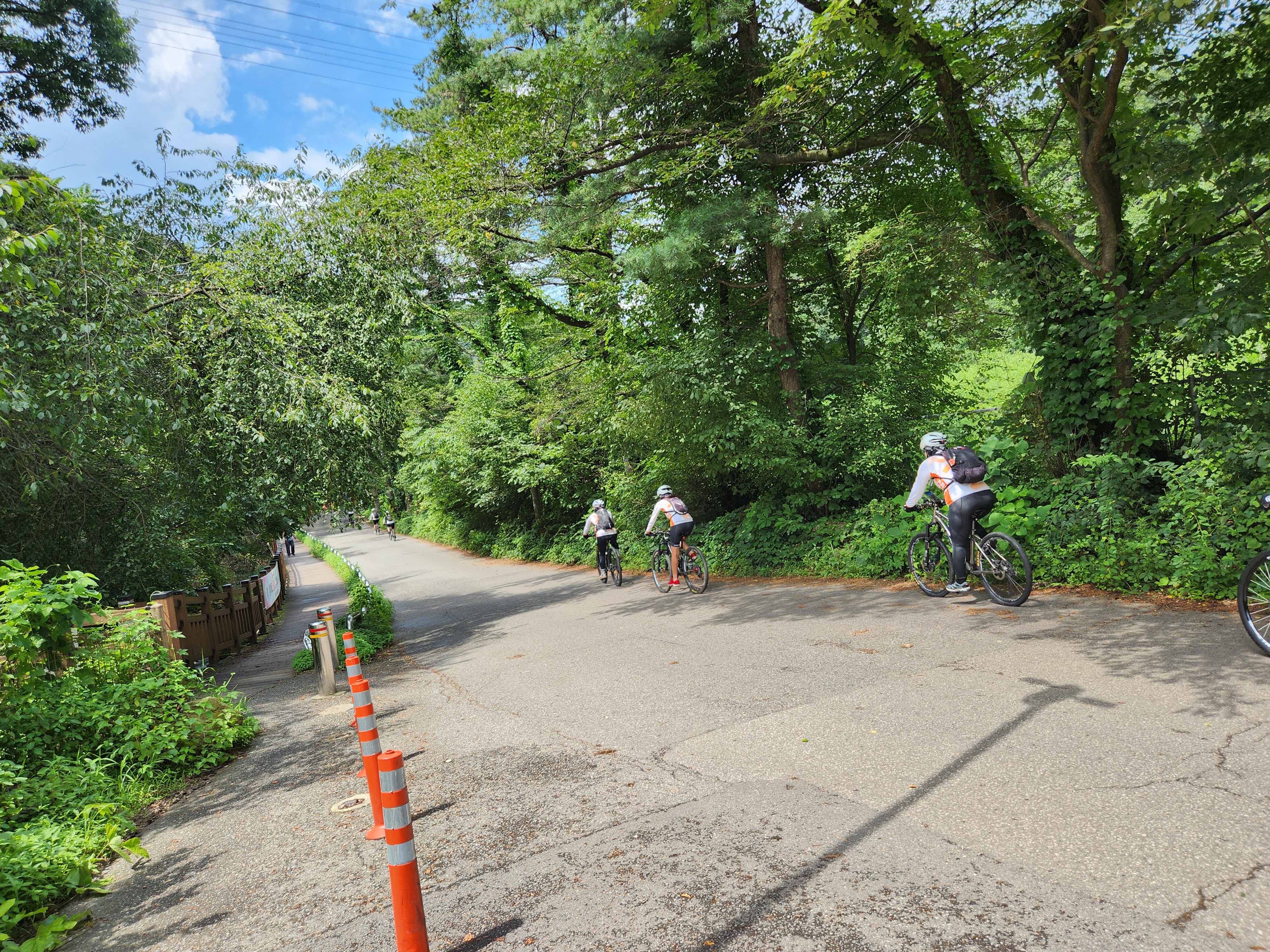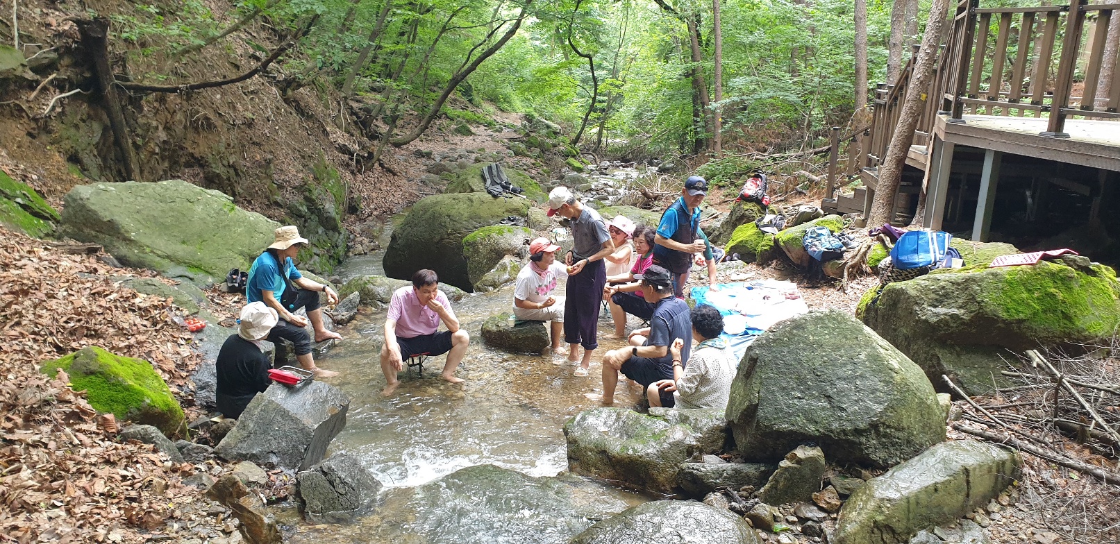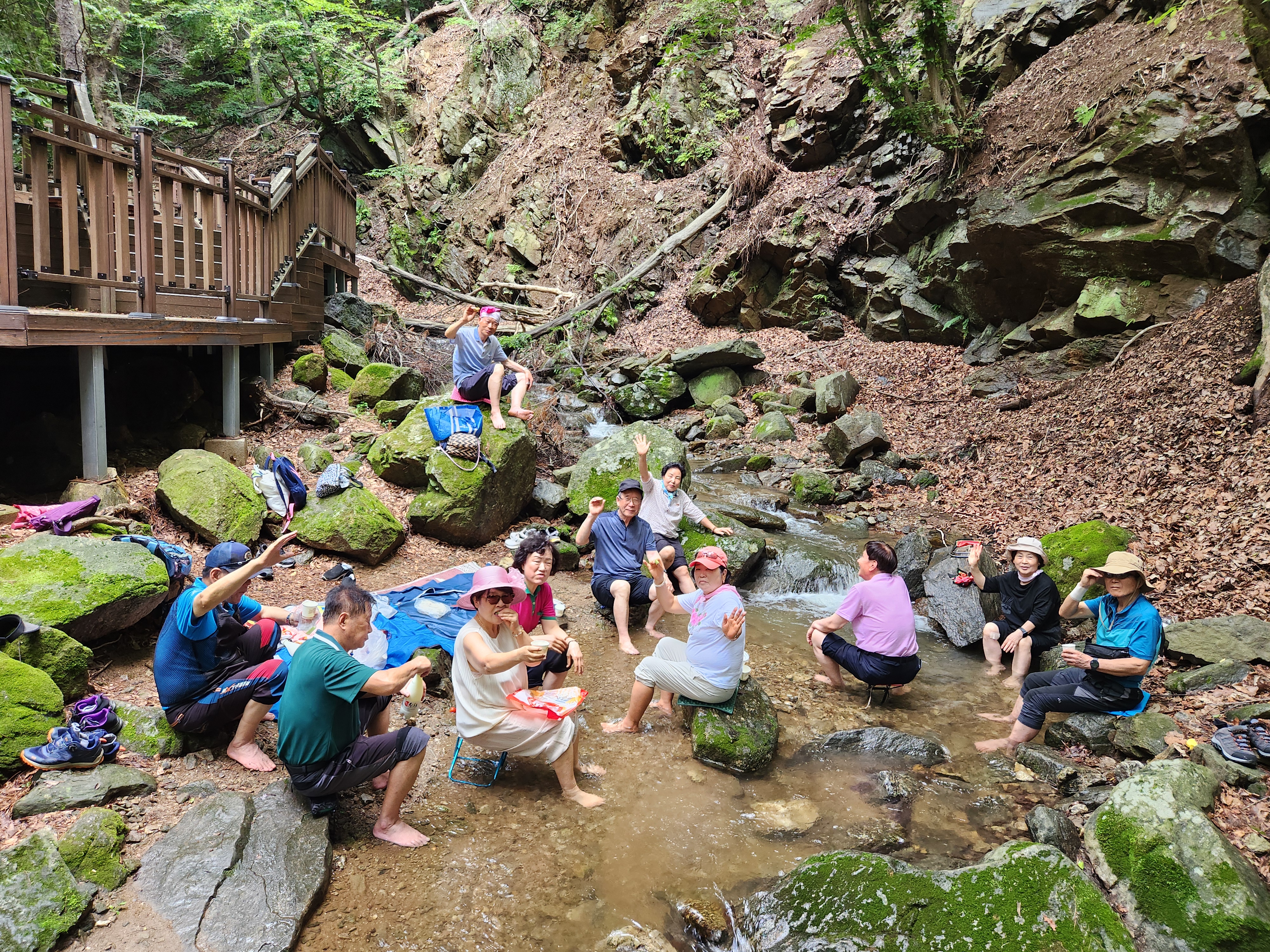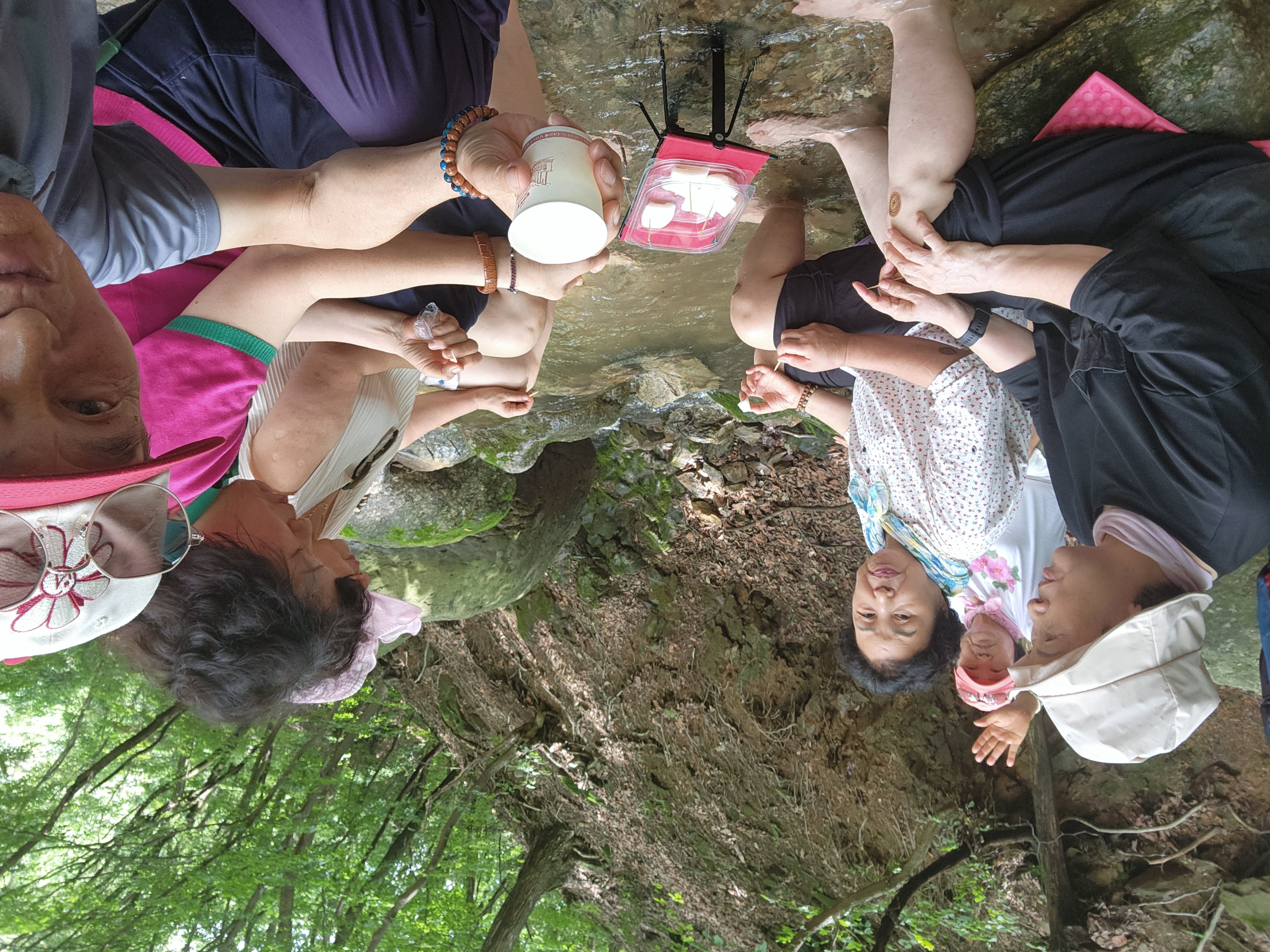 자전거동호회 여성회원 열댓명이 더운날씨에 계곡 족탁을 다녀간다.
