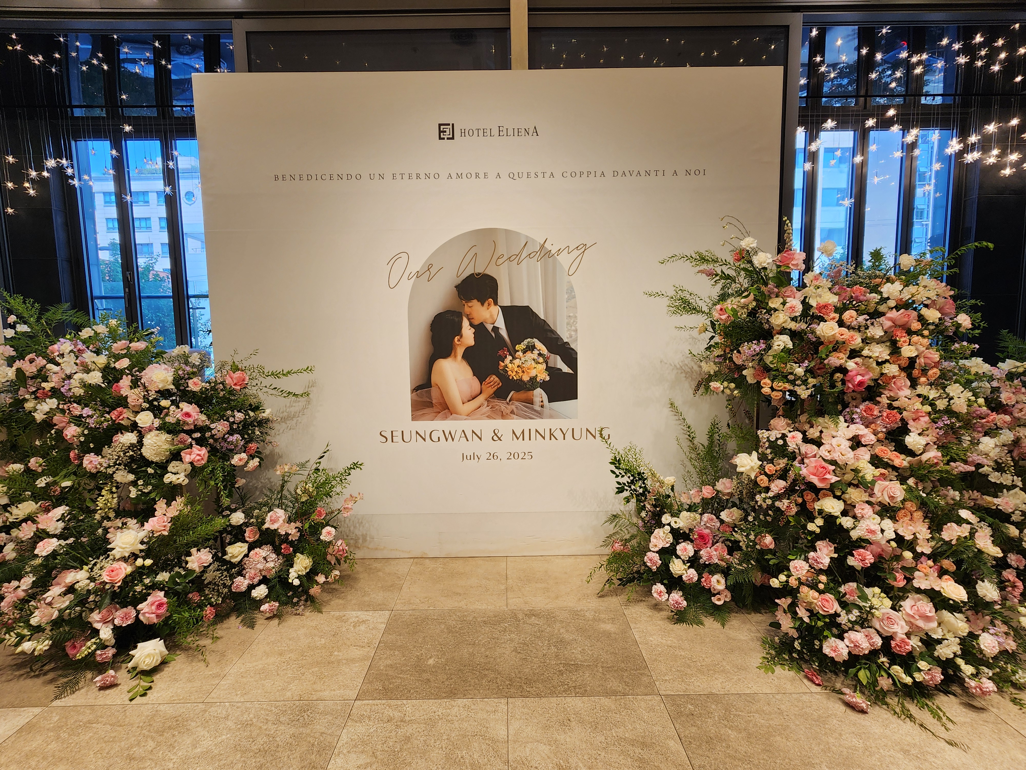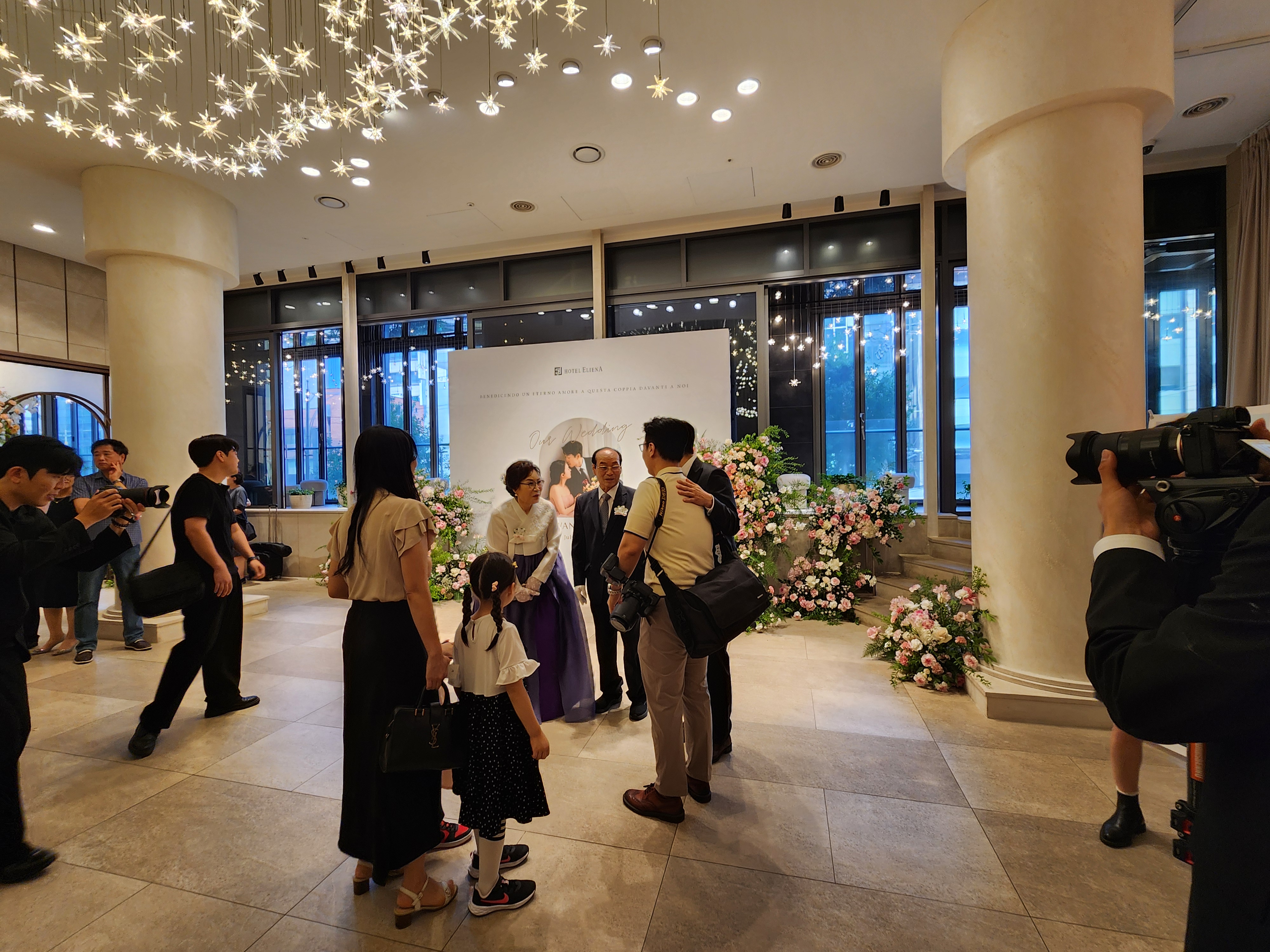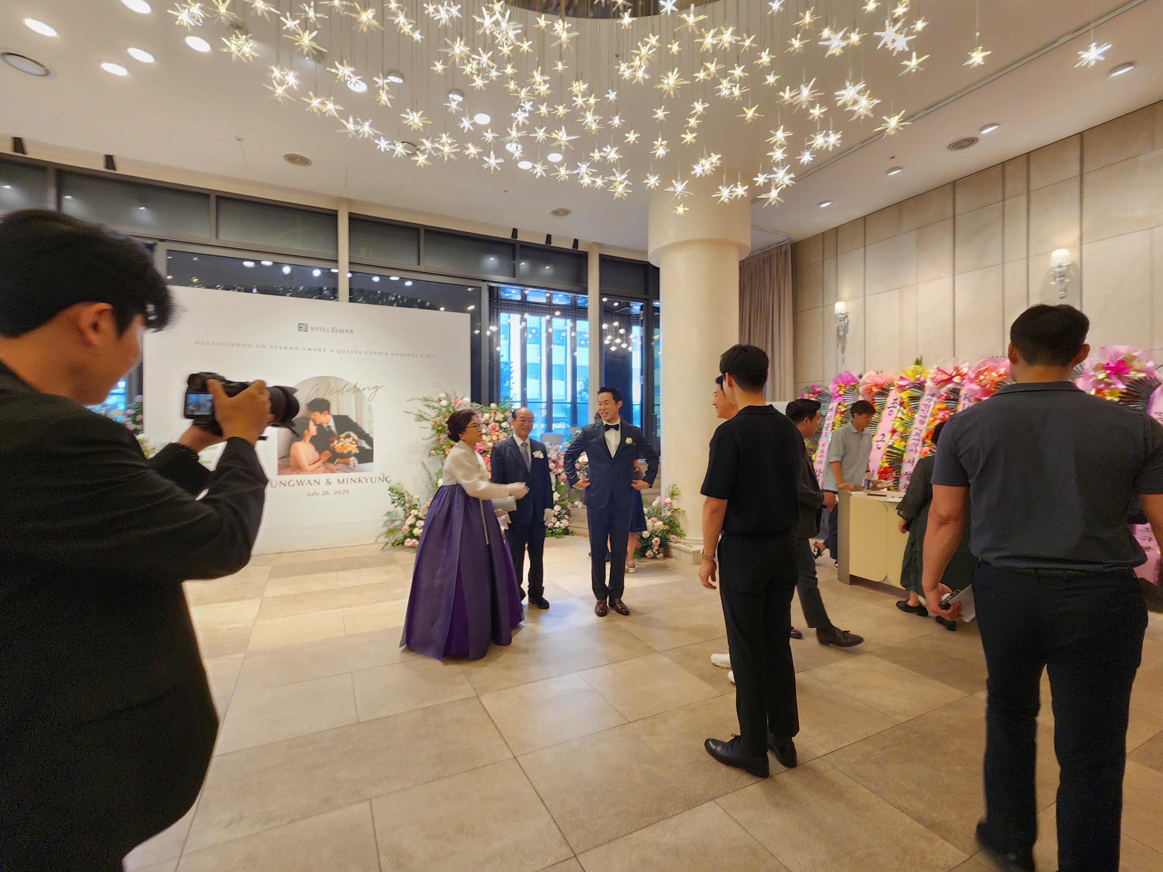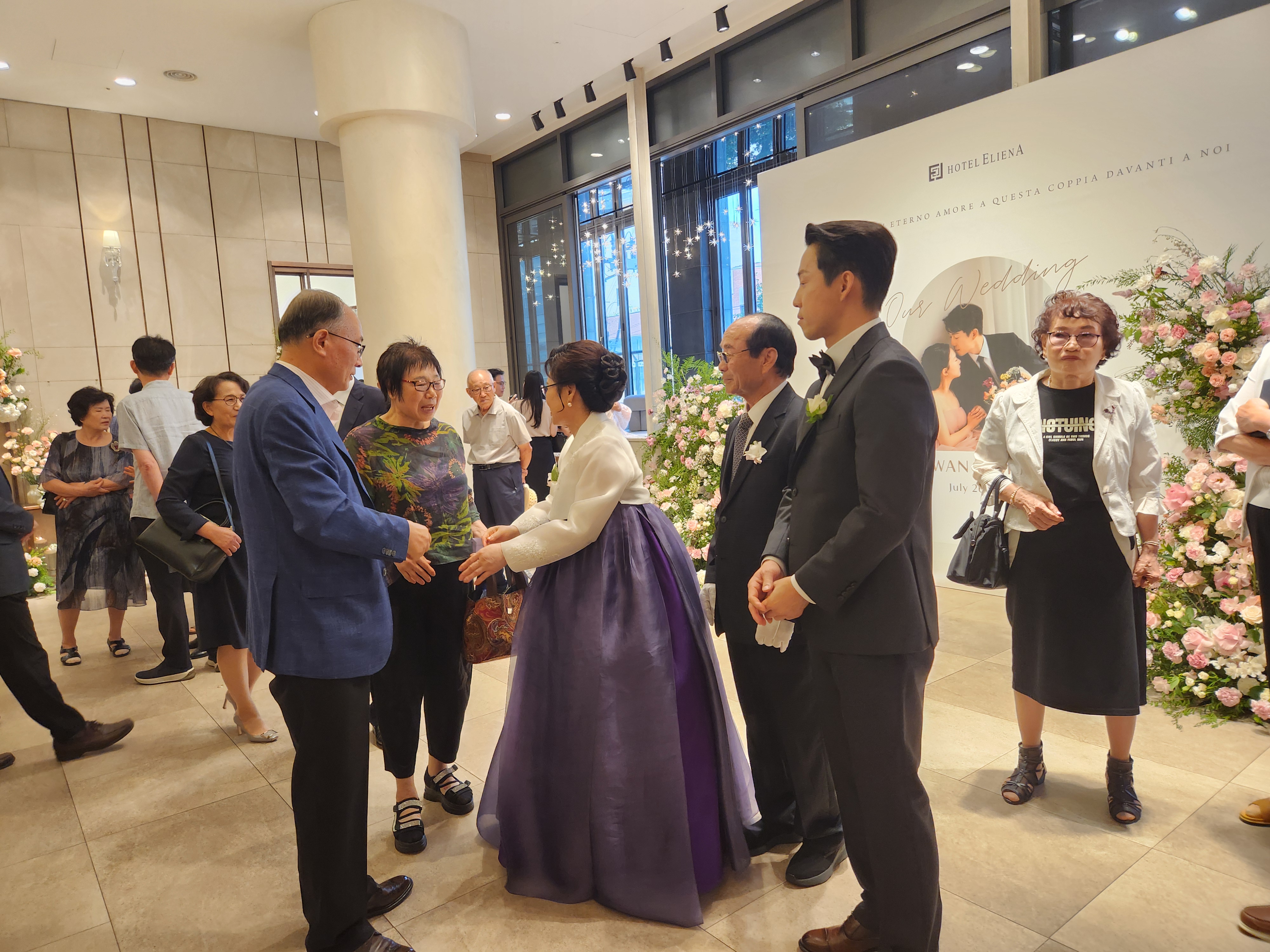 서울의 낮기온이 39도까지 오른 화끈하게 더운 삼복더위 기간이다. 잔치를 준비한 혼주 입장에서는 날씨가 더울까, 추울까, 눈비가 올까, 하객들이 불편해하지 않을까 노심초사 걱정이 된다. 그런데 덥기는 해도 맑고 화끈한 날이다. 지하철역에서 조금 걸어오는 구간이 덥지 강남의 좋은 호텔은 분위기도 좋고 젊은 스타일에 딱맞게 시원스럽고 아름답다.