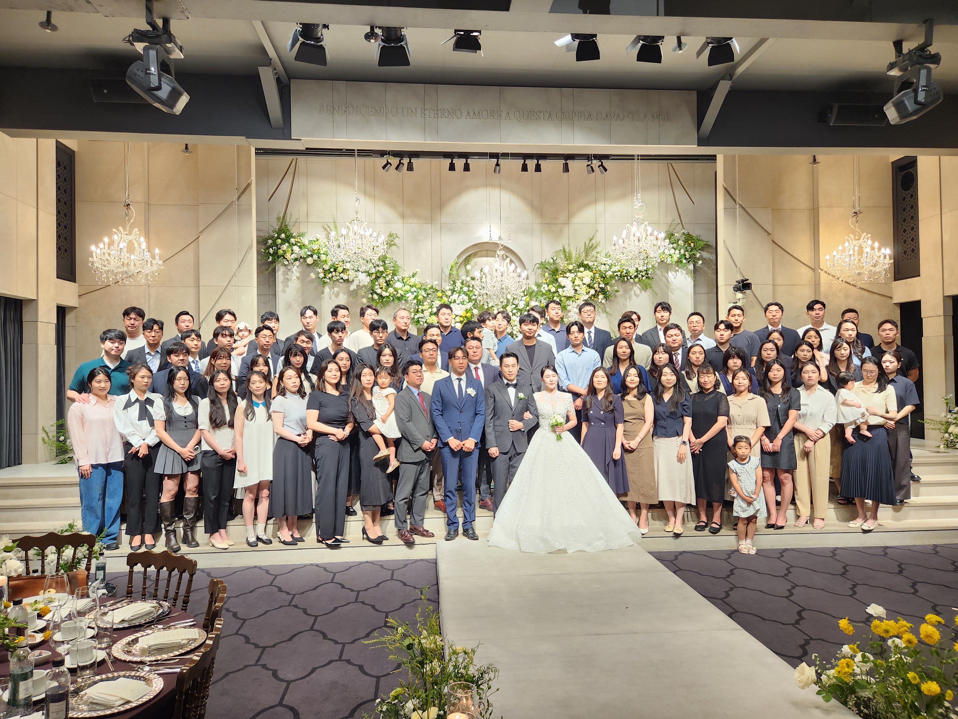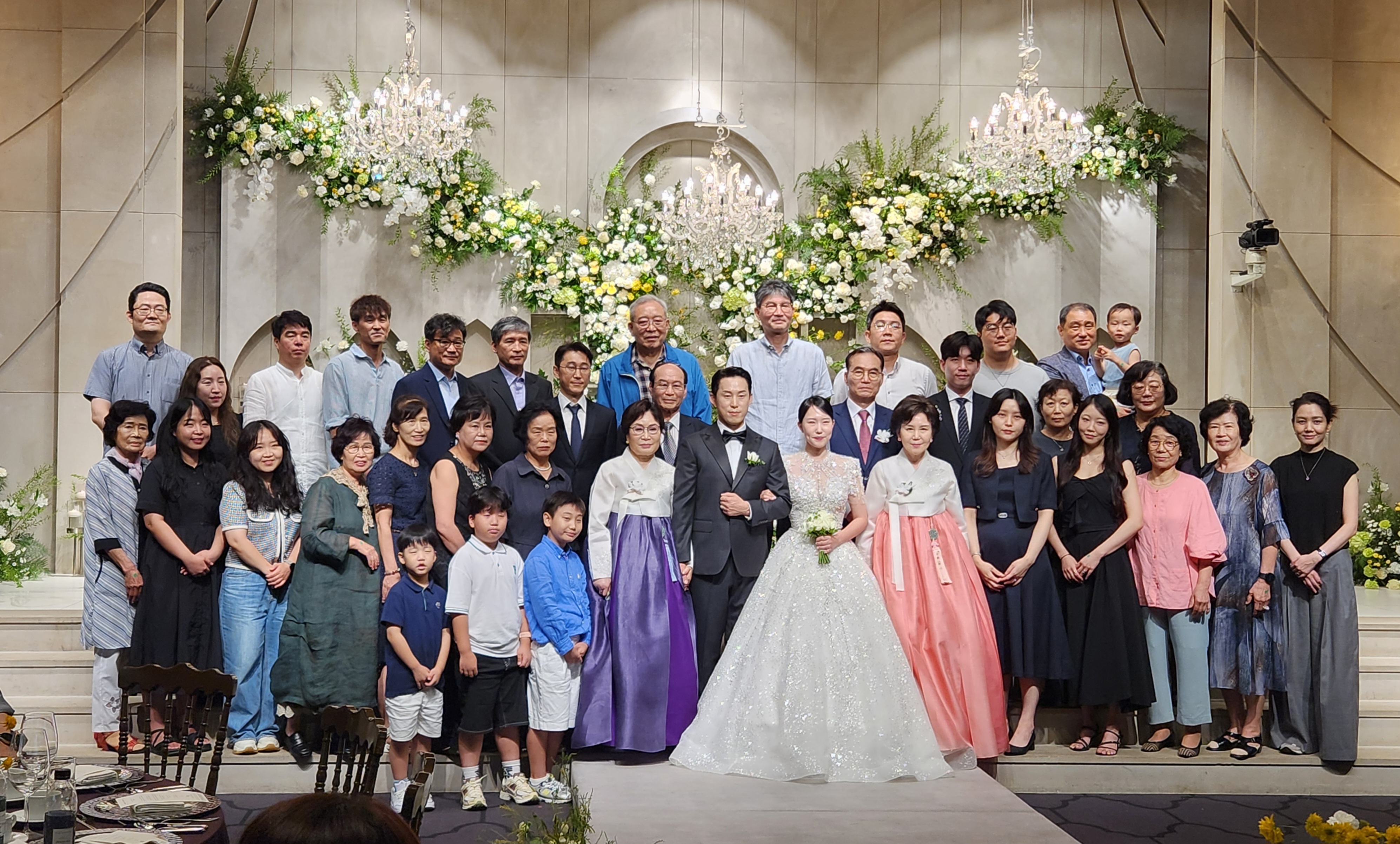 '25.7.26(토) 오후2시, 학동역 엘리시에호텔 웨딩홀에서 조의섭향우(이승연여사)의 아들 승 완군이 진민 경양을 신부로 맞아 결혼식을 올리는 자리에 폭염의 더위에도 불구하고 많은 향우들과 하객들이 참석하여 축하를 보내드렸다.