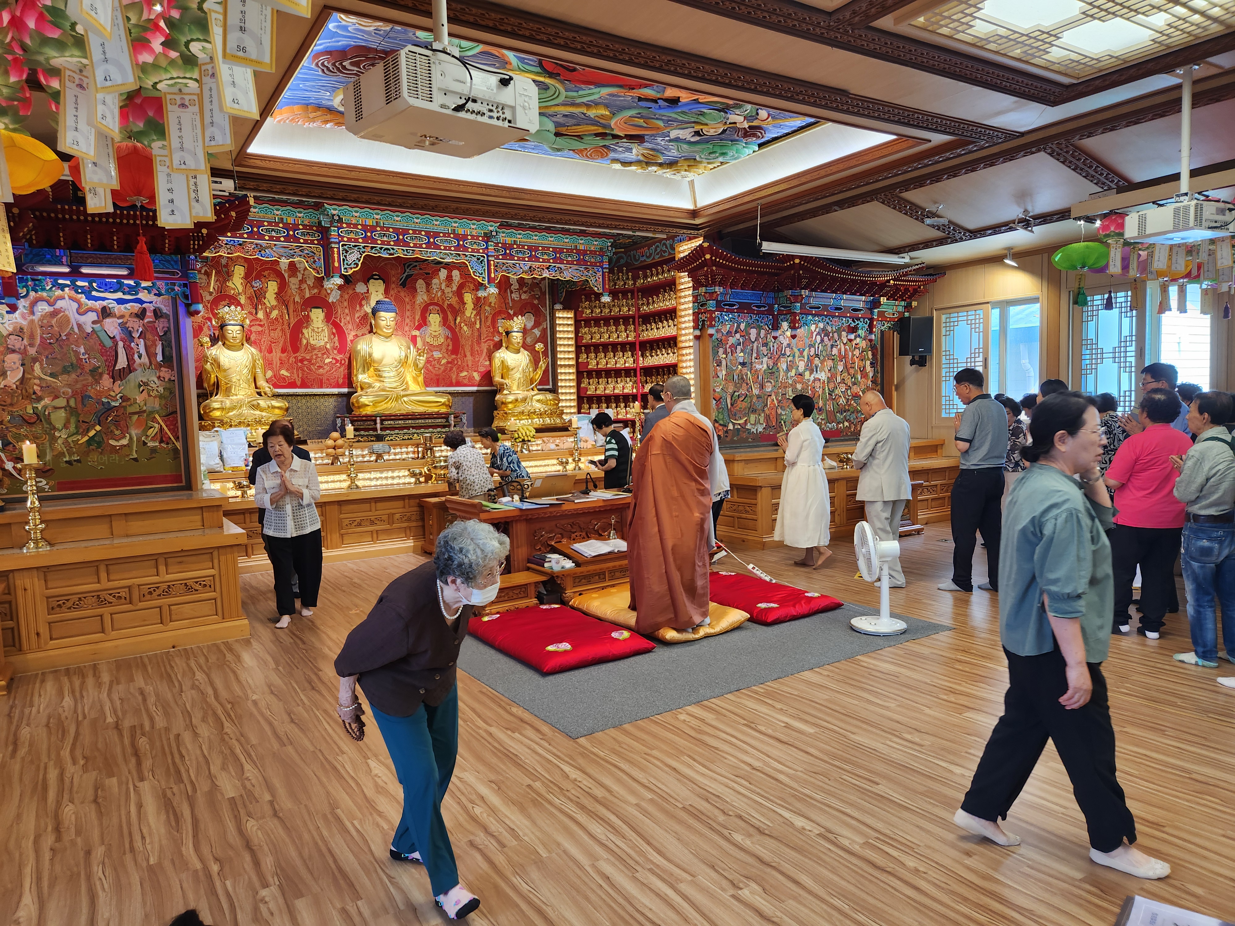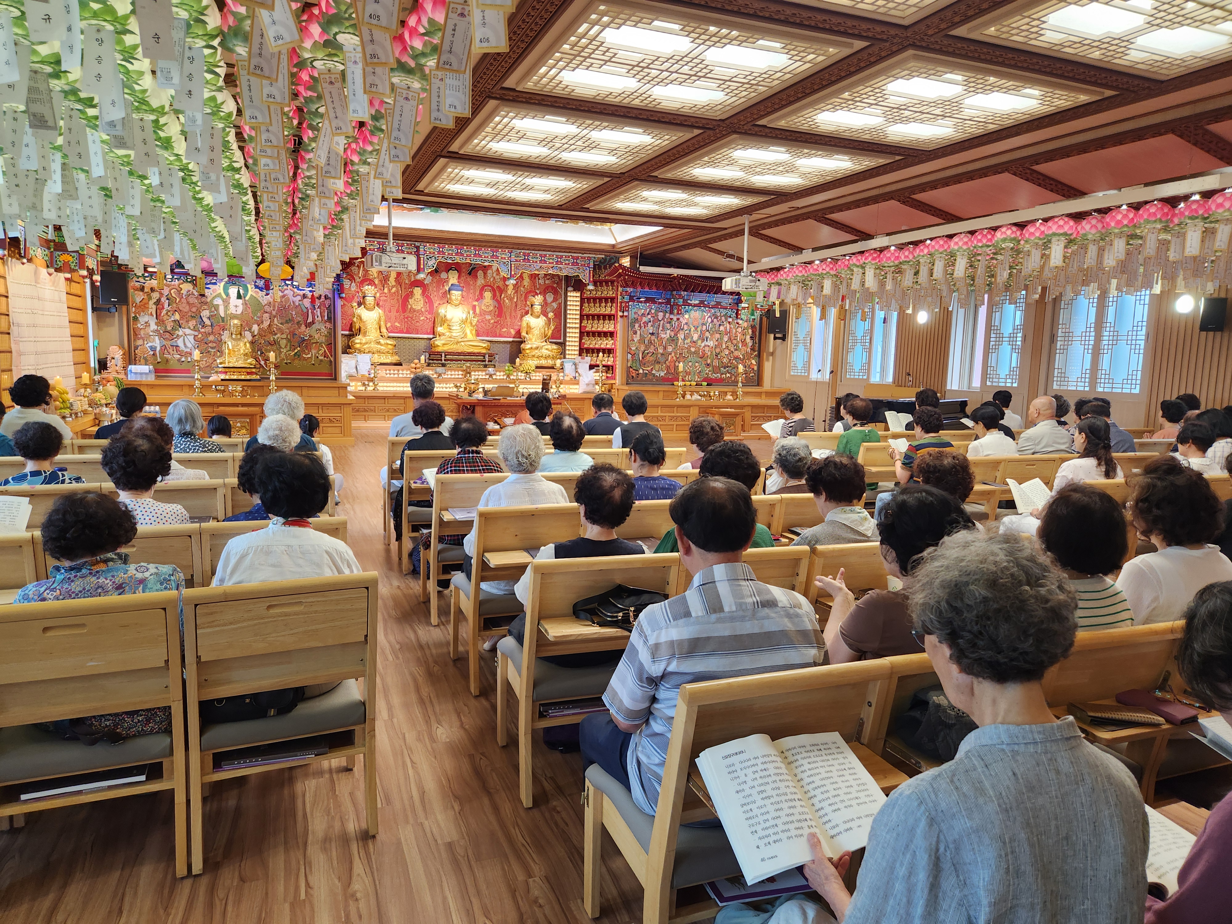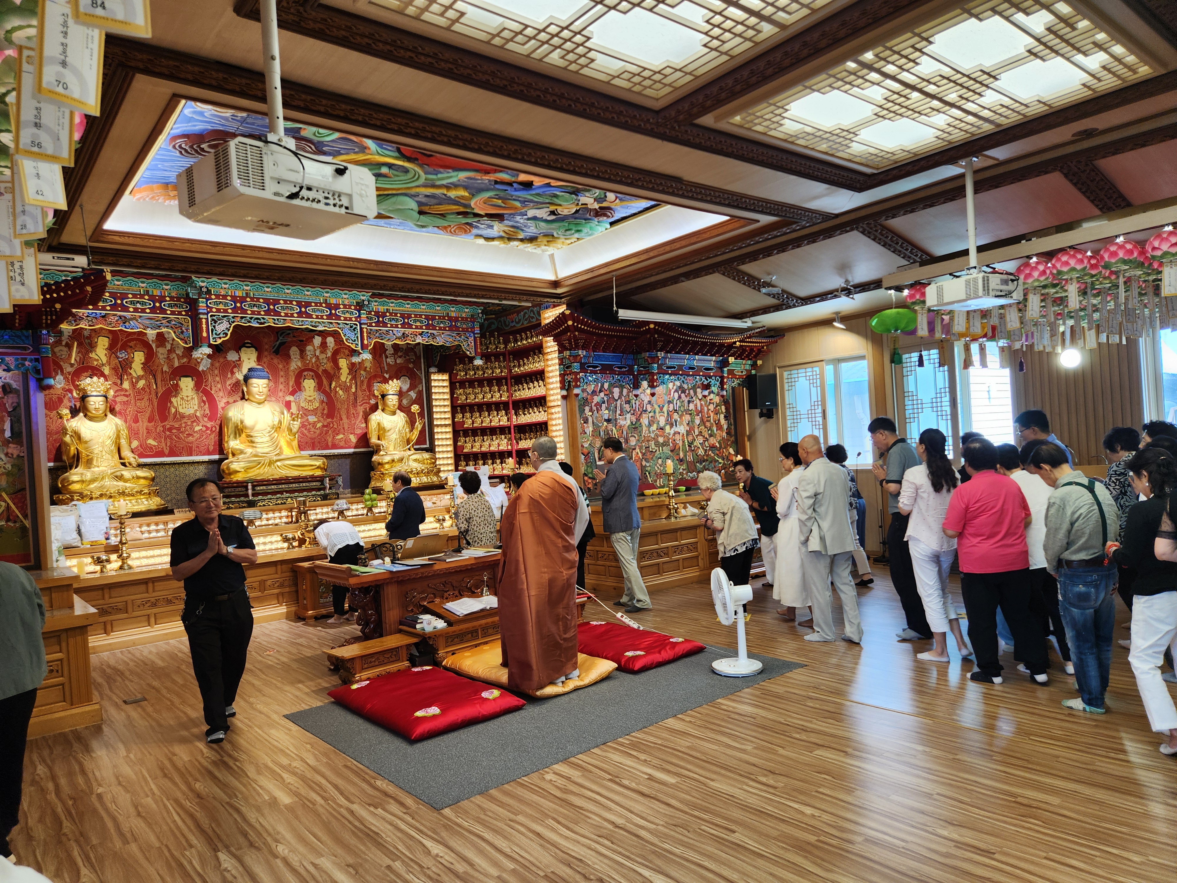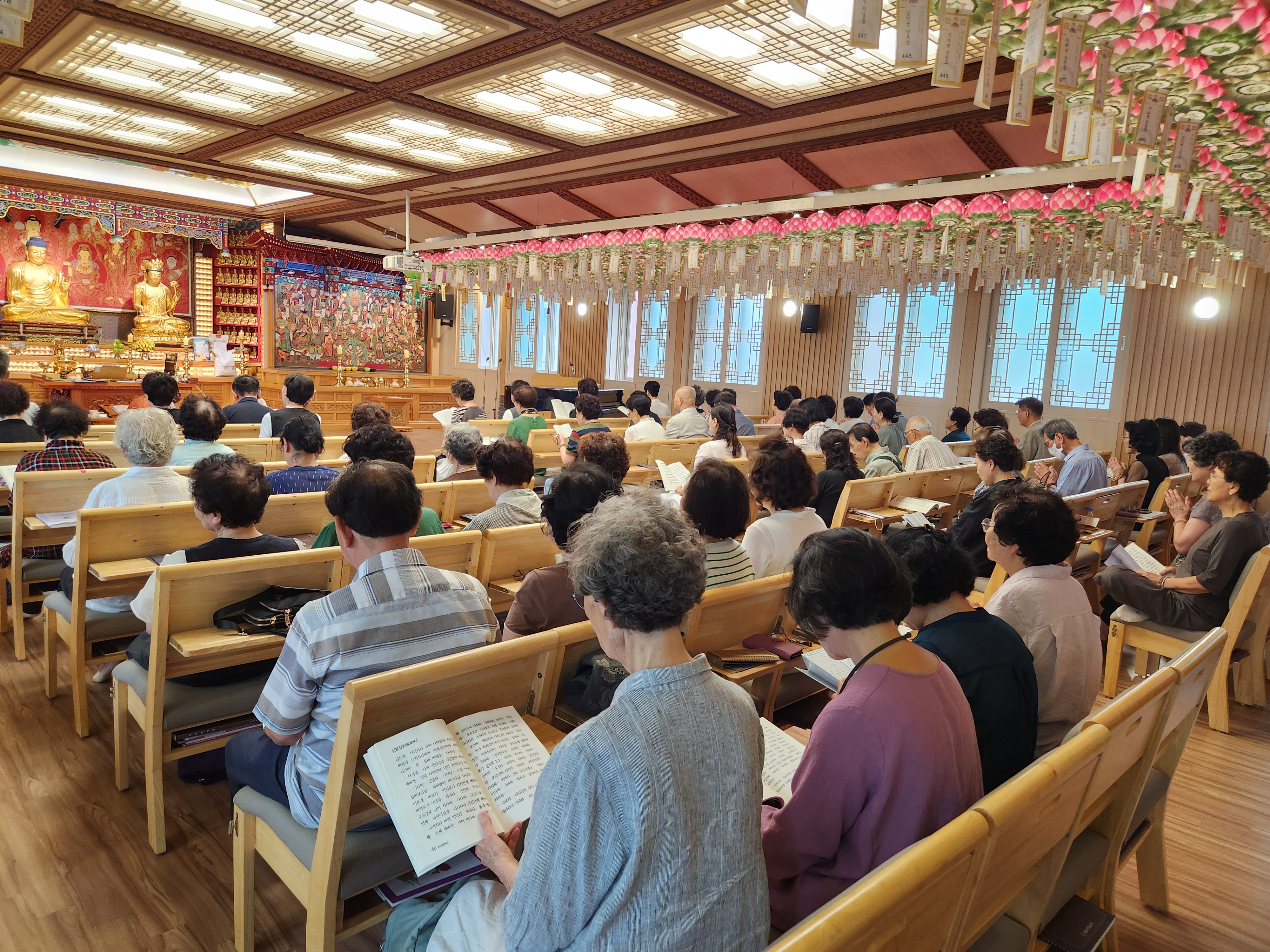 '25.8.17(일) 10:30, 국방부원광사 백중4재를 겸한 일요법회에 법당이 가득하도록 불자들이 동참하여 천수경 봉독과 일요법회 후에 백중 4재를 정성스럽게 봉행