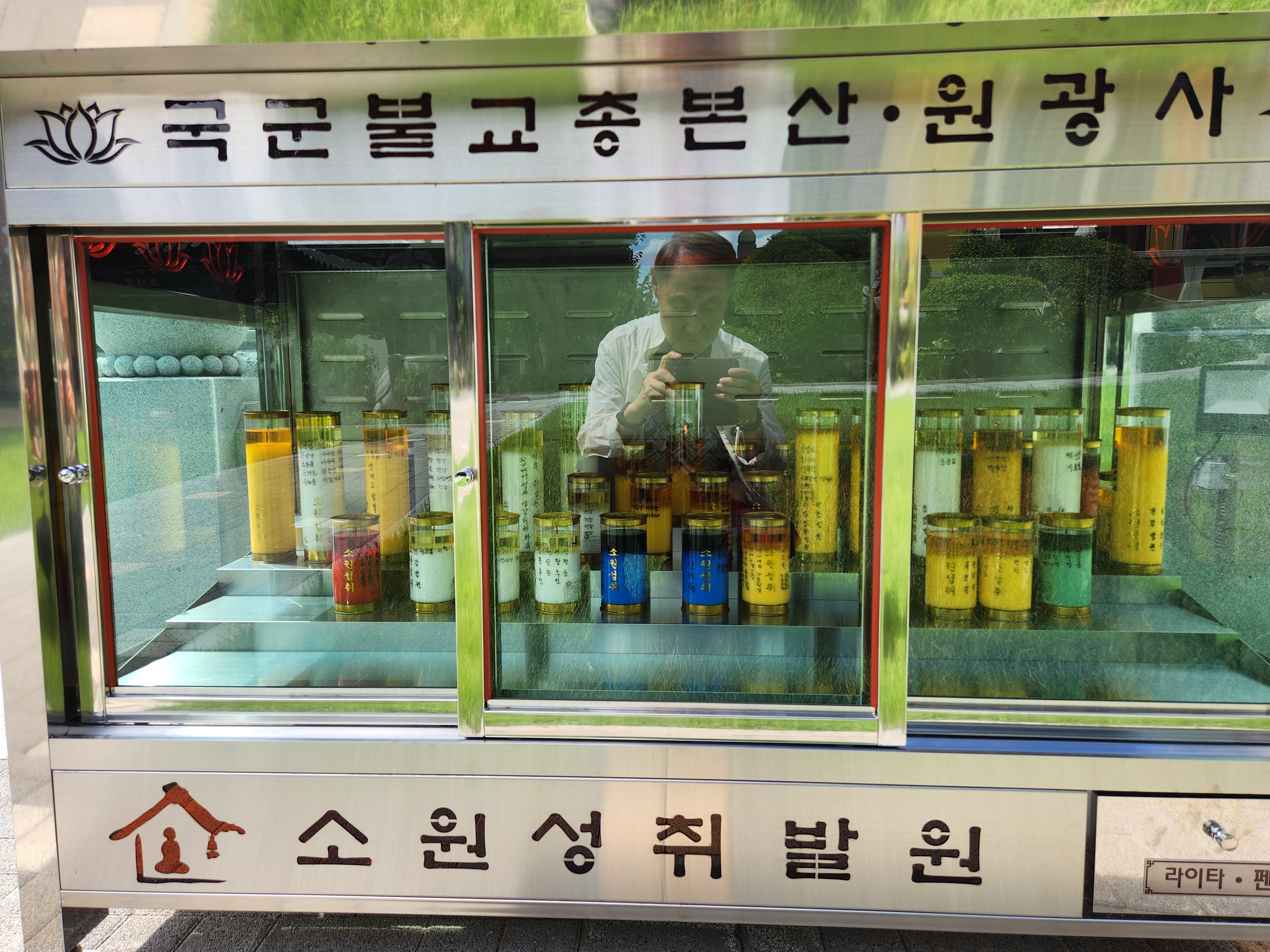 원광대탑 앞에 소원성취발원 촛불거치대가 갖추어져 있다.