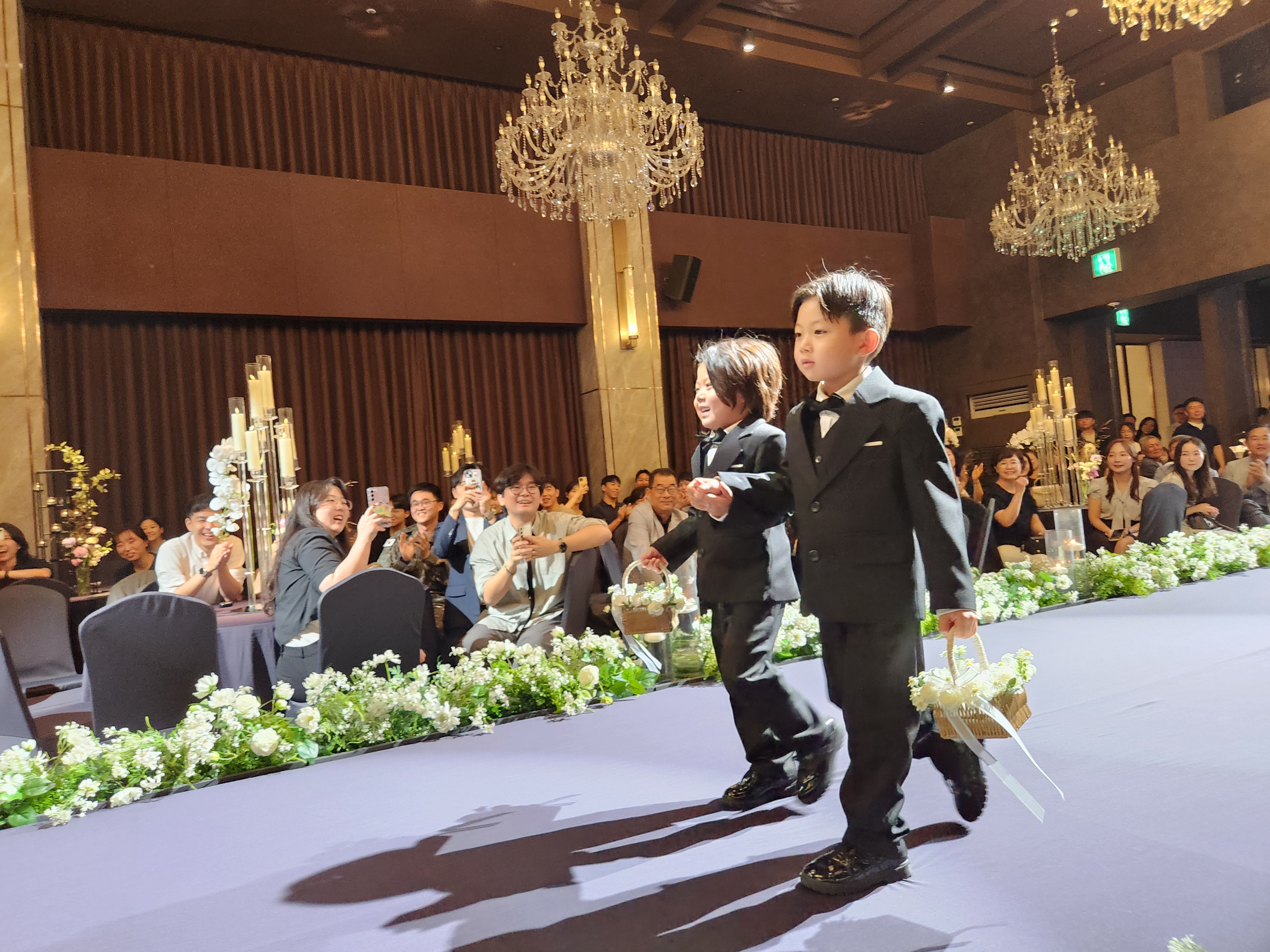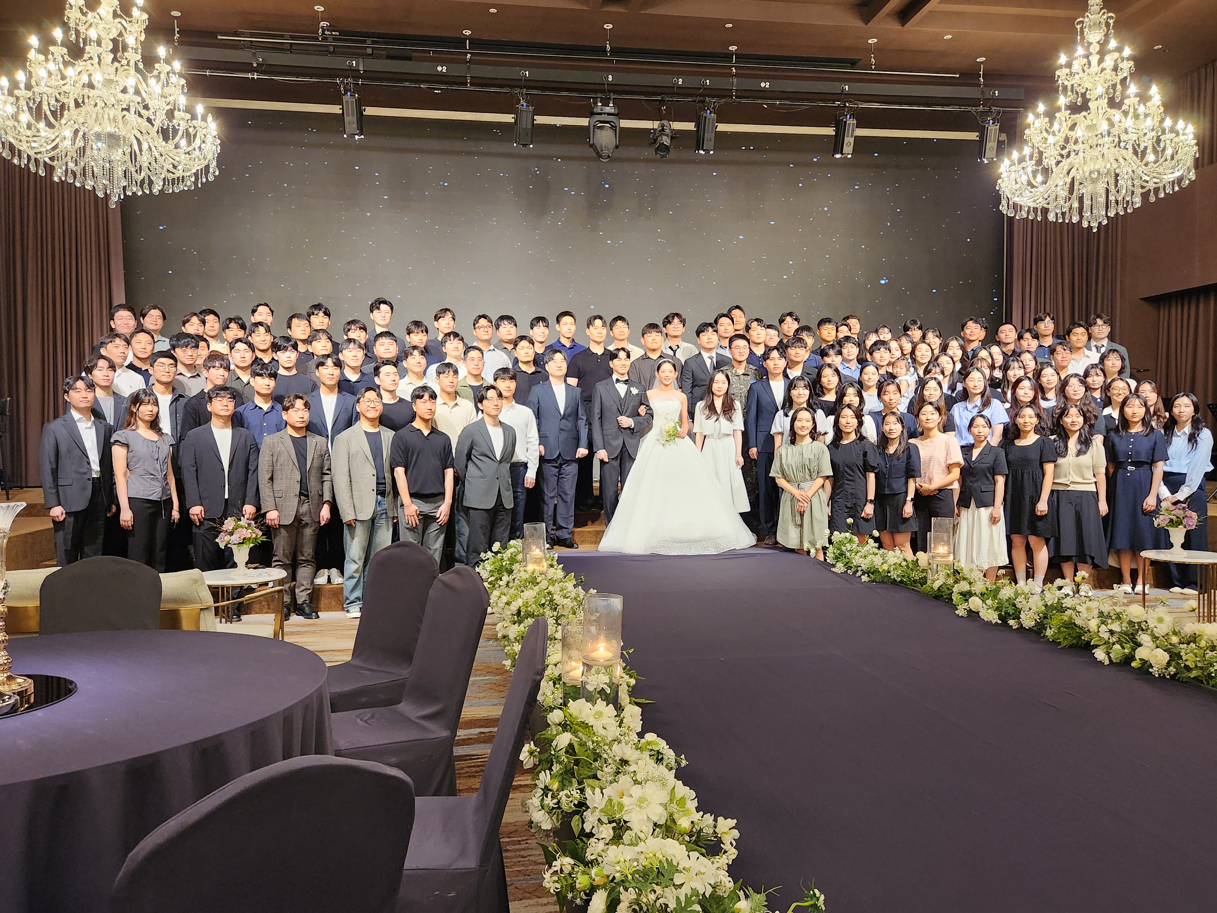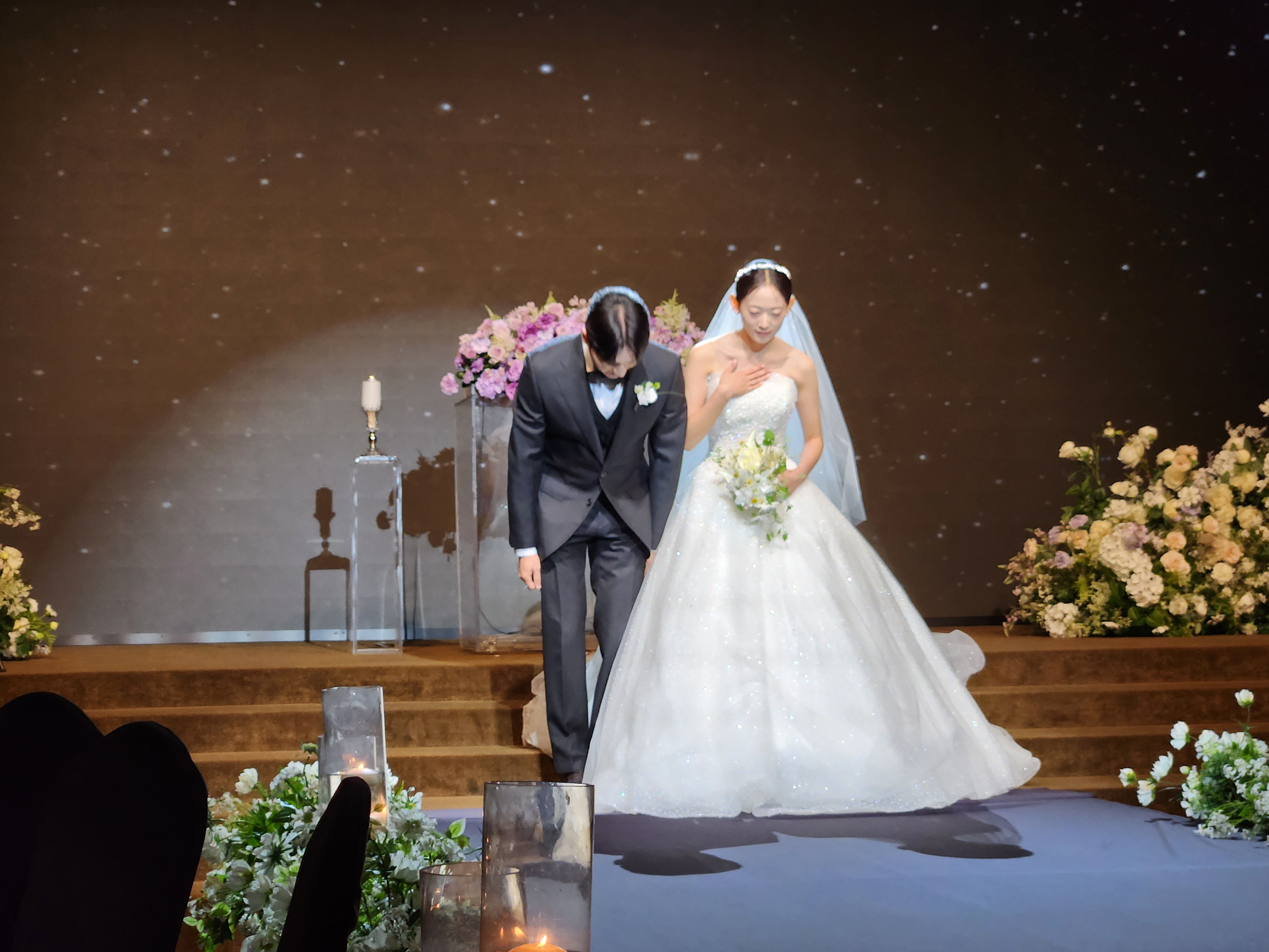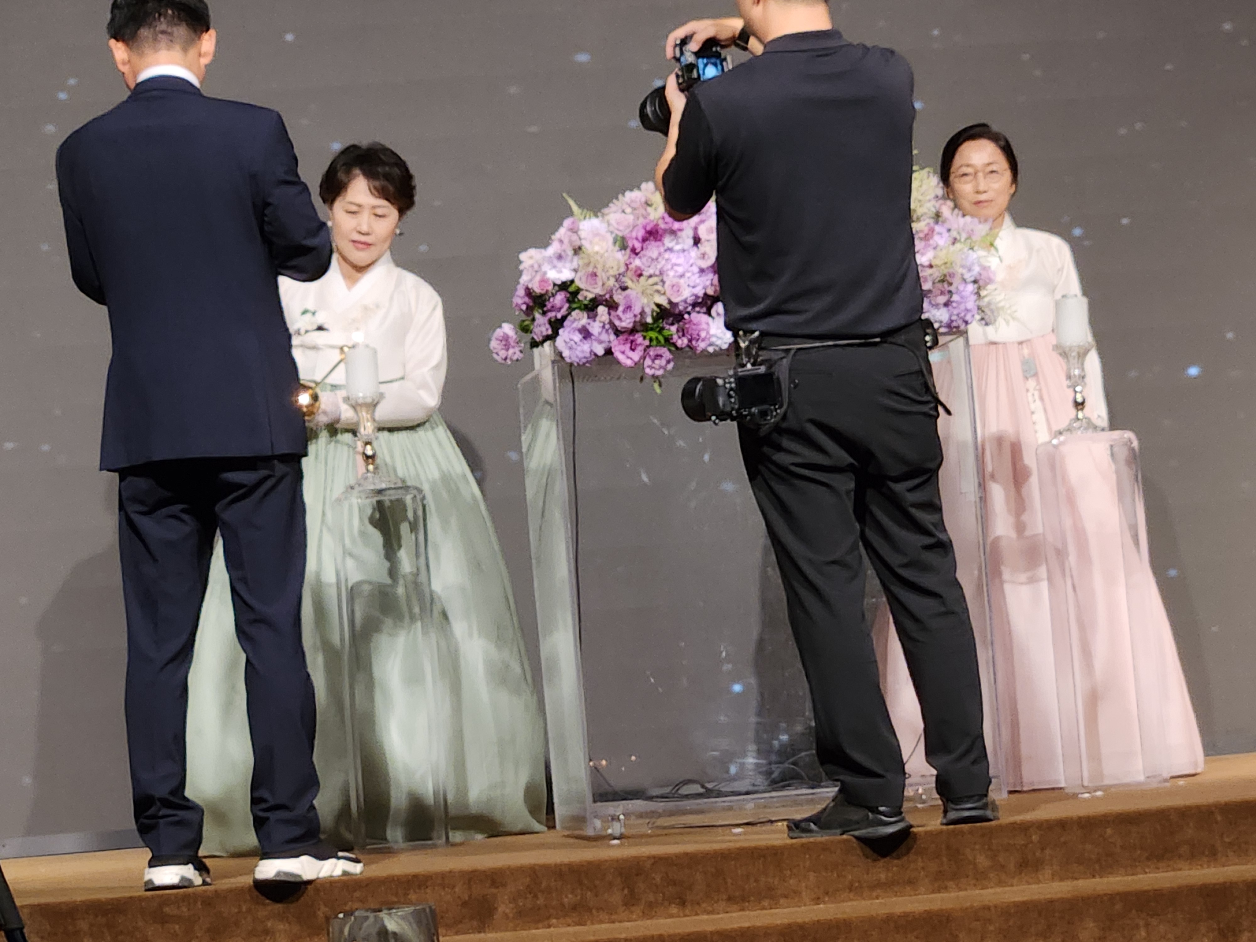'25.8.31(일) 11시, 로얄파크 컨벤션 3층에서 공병후배 이동훈장군(서명주여사)의 아들 정 협군이 박선 희양을 신부로 맞아 결혼식을 올리는 8월의 마지막날 주말, 일요일 귀한 시간인데도 많은 하객들과 친지, 신랑신부의 싱싱한 친구, 직장동료들이 넓은 홀에 가득하도록 많이 참석하여 축하를 보내주었다.