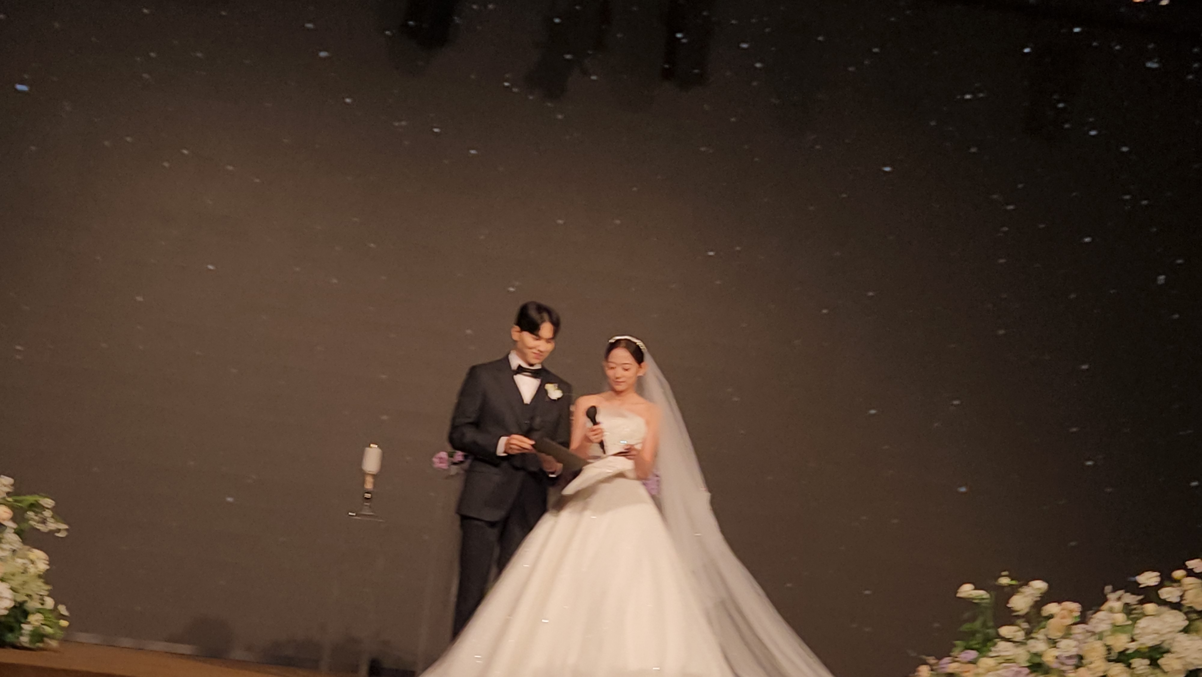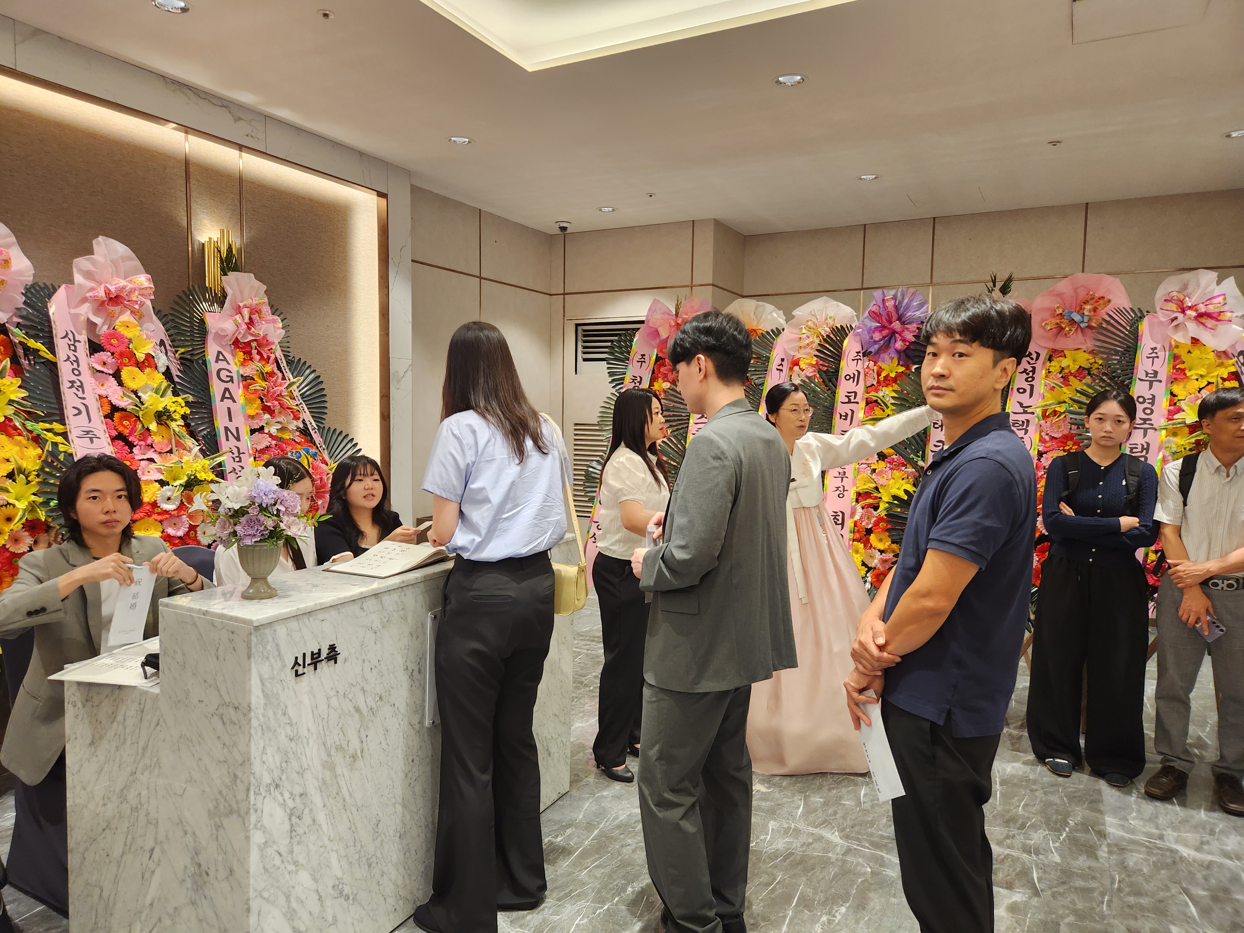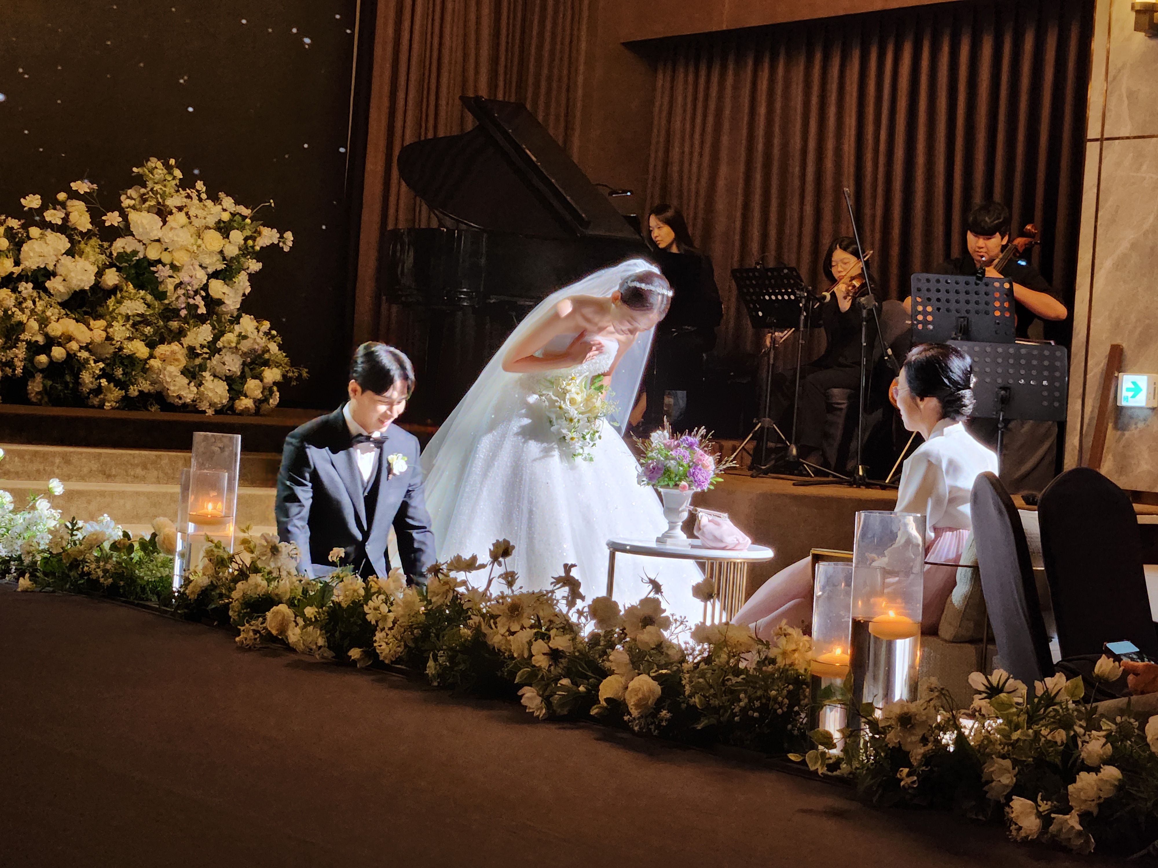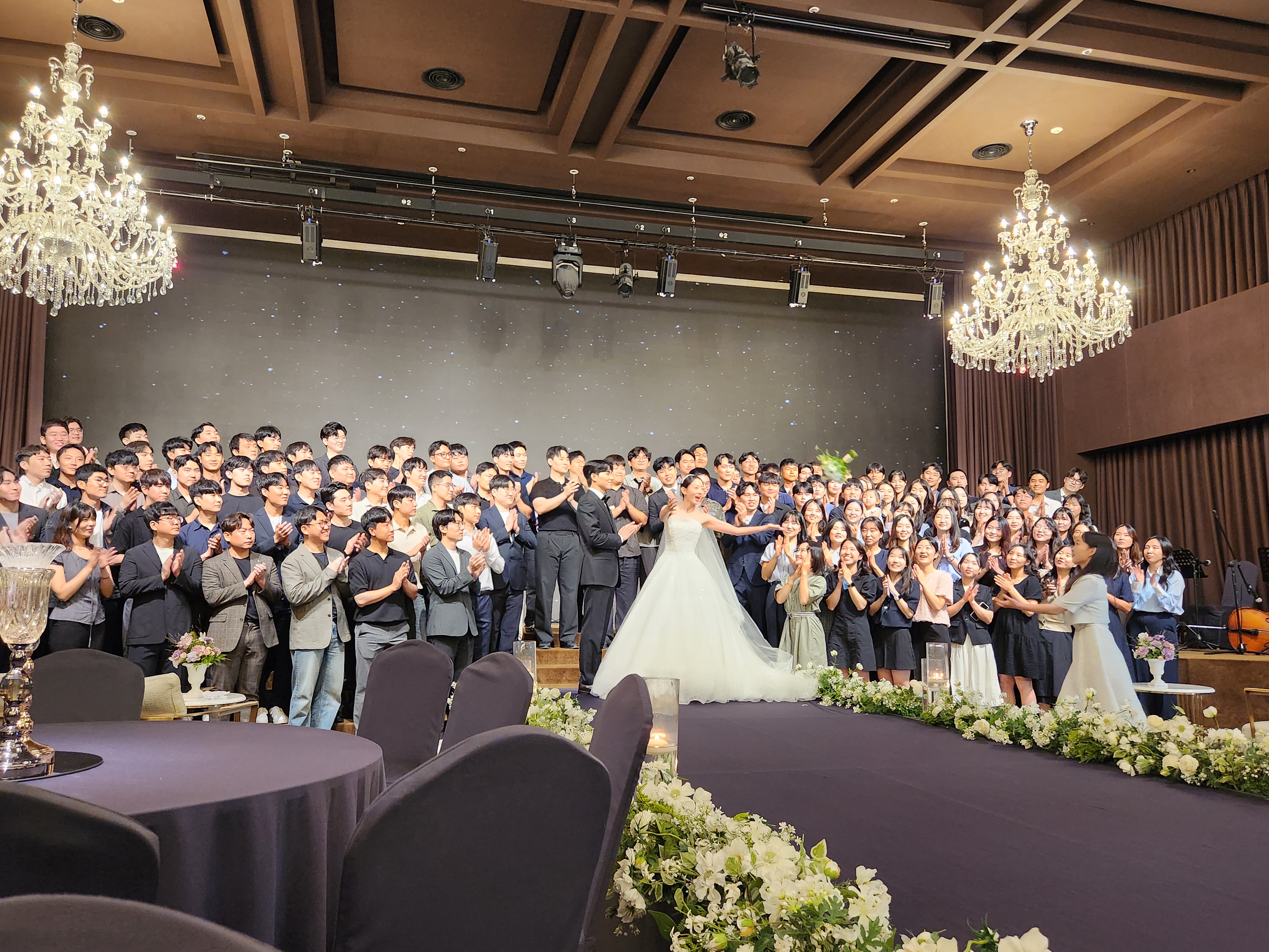 '25.8.31(일) 11시, 로얄파크 컨벤션 3층에서 공병후배 이동훈장군(서명주여사)의 아들 정 협군이 박선 희양을 신부로 맞아 결혼식을 올리는 8월의 마지막날 주말, 일요일 귀한 시간인데도 많은 하객들과 친지, 신랑신부의 싱싱한 친구, 직장동료들이 넓은 홀에 가득하도록 많이 참석하여 축하를 보내주었다.