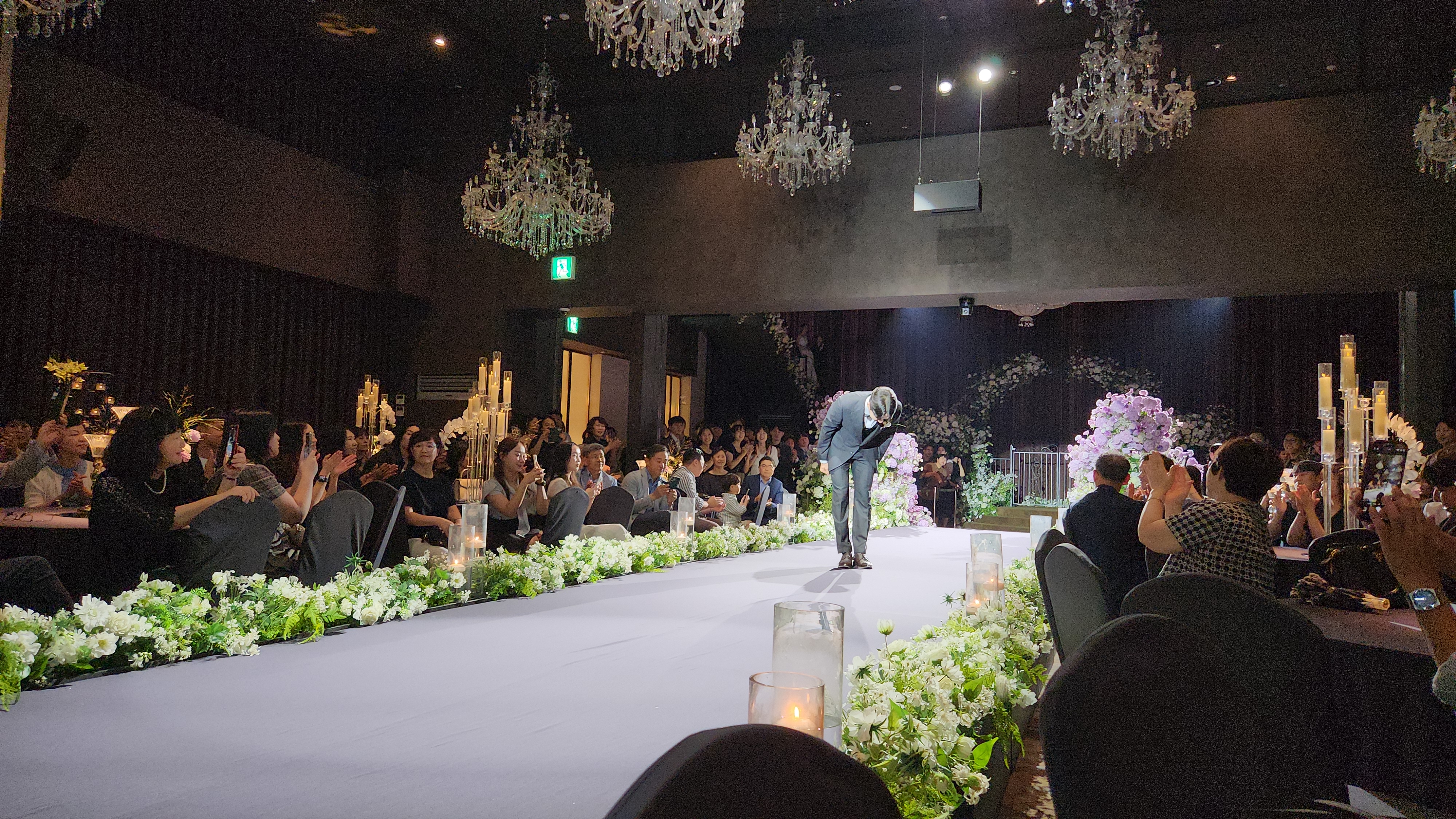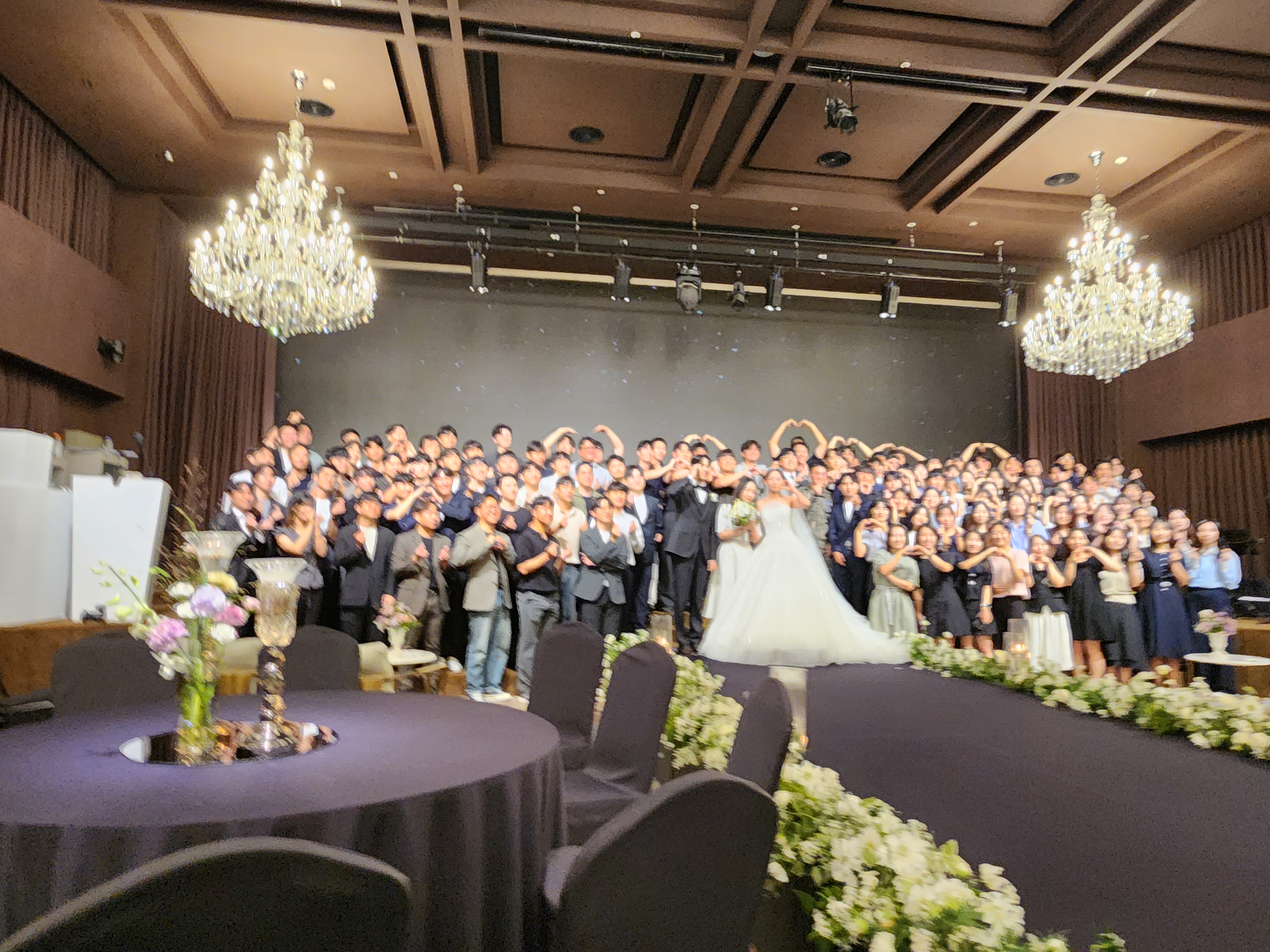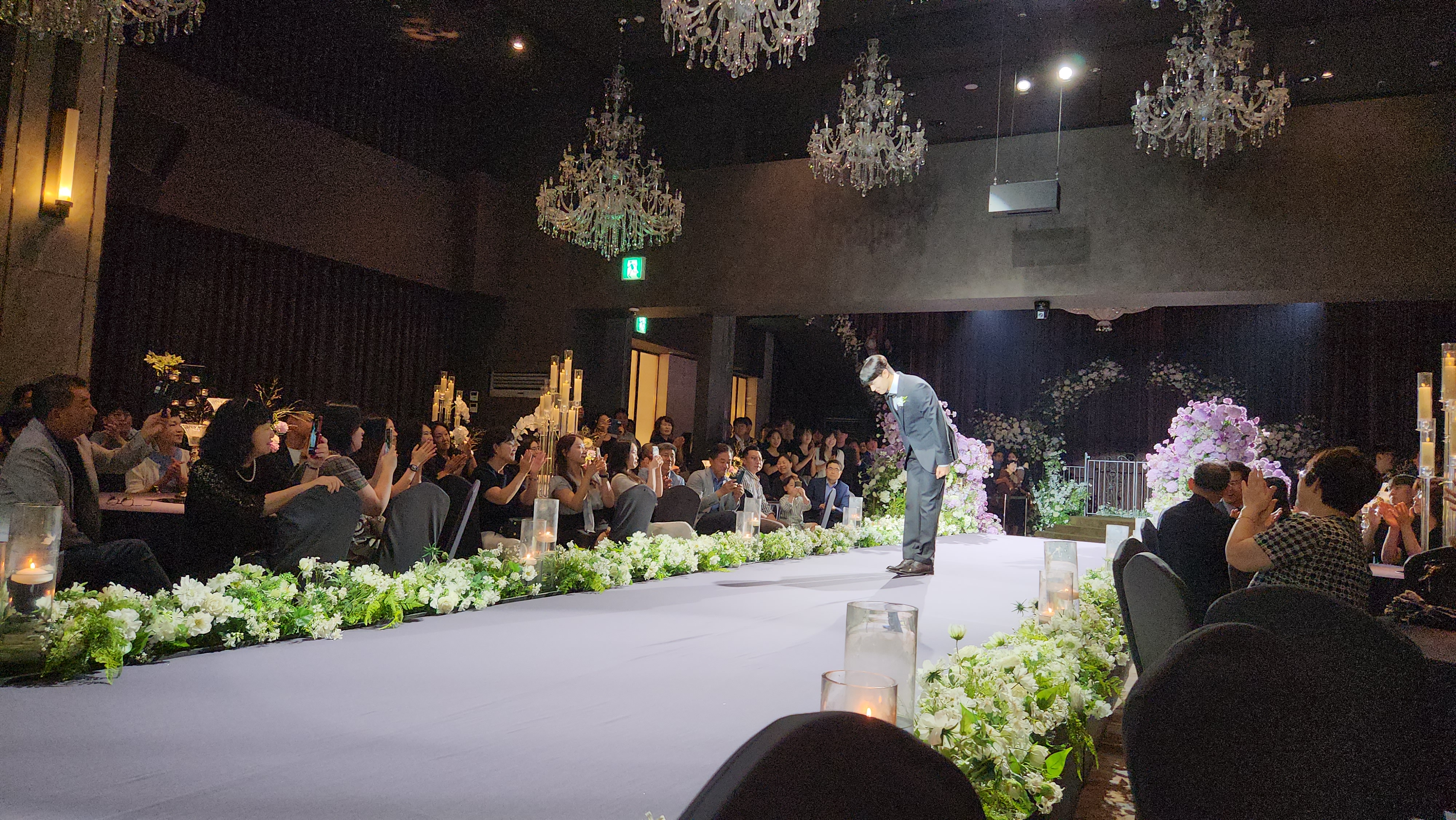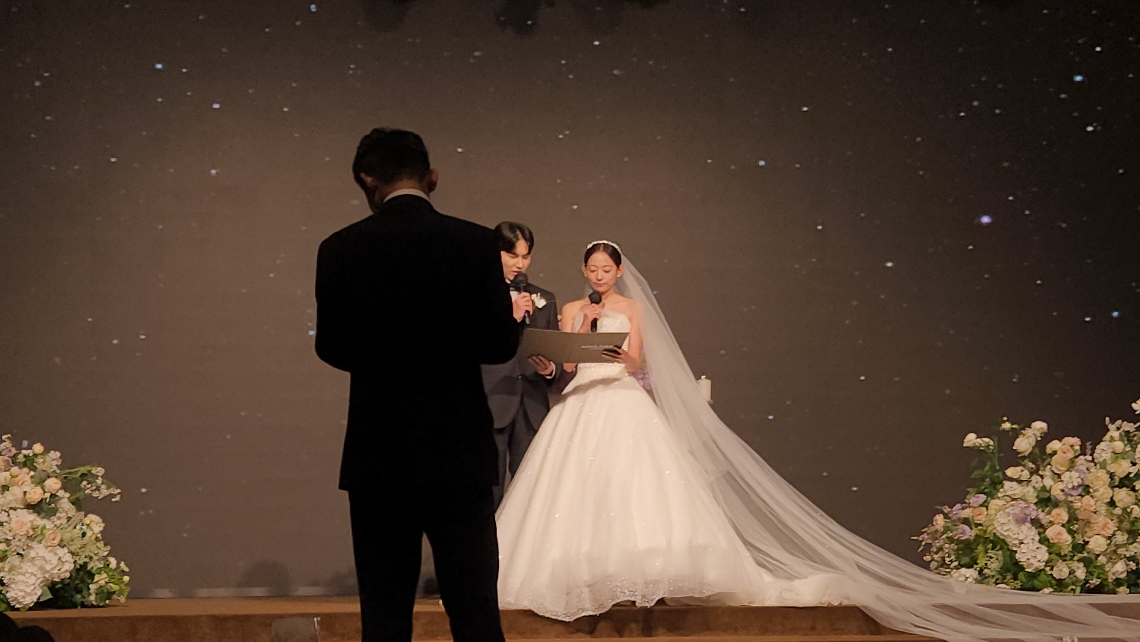 '25.8.31(일) 11시, 로얄파크 컨벤션 3층에서 공병후배 이동훈장군(서명주여사)의 아들 정 협군이 박선 희양을 신부로 맞아 결혼식을 올리는 8월의 마지막날 주말, 일요일 귀한 시간인데도 많은 하객들과 친지, 신랑신부의 싱싱한 친구, 직장동료들이 넓은 홀에 가득하도록 많이 참석하여 축하를 보내주었다.