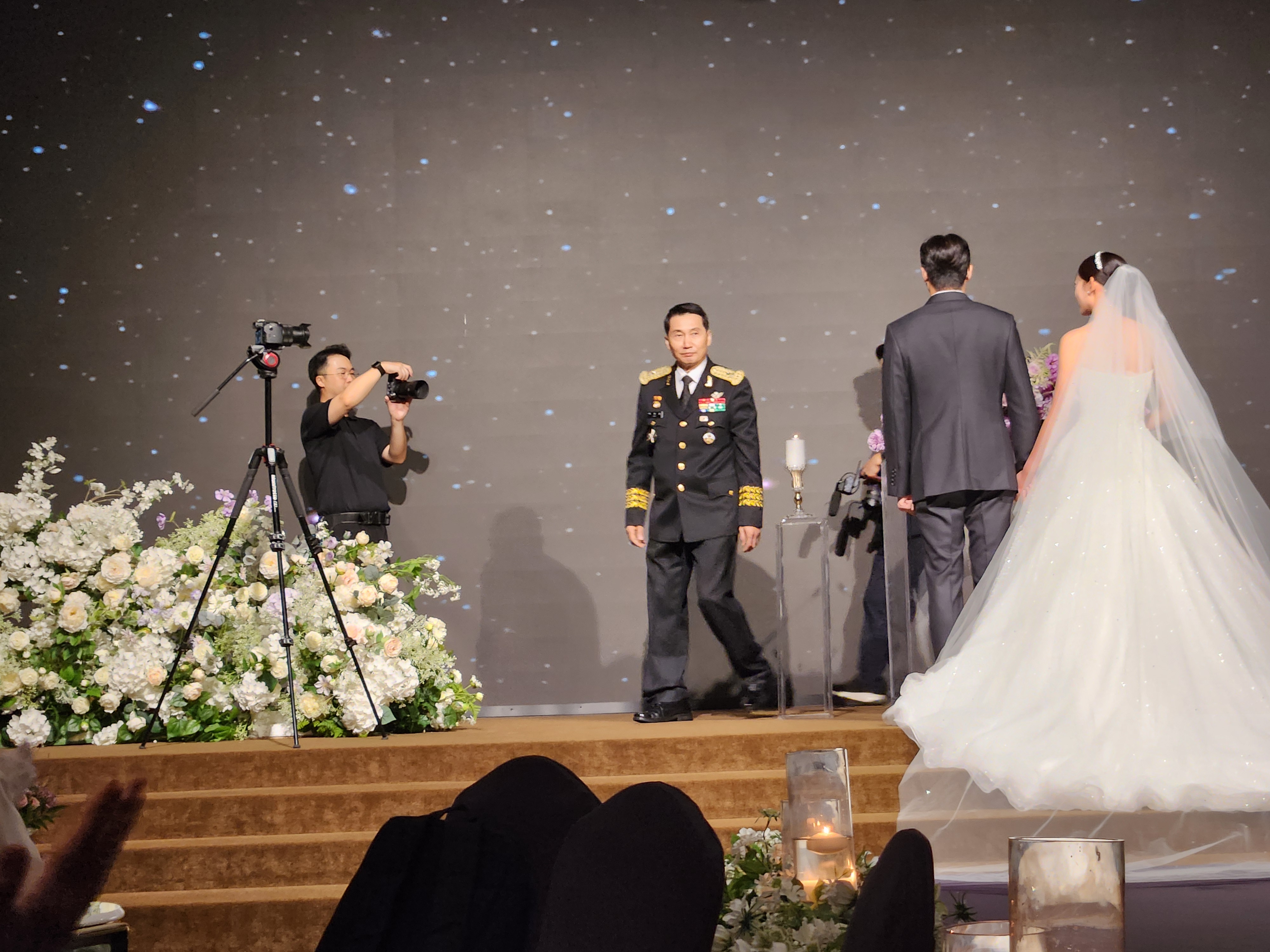 신랑댁은 부친과 아들이 자랑스러운 공병병과출신이다. 신랑부친 이동훈장군이 덕담으로 3가지를 잘 실천하도록 당부했다.