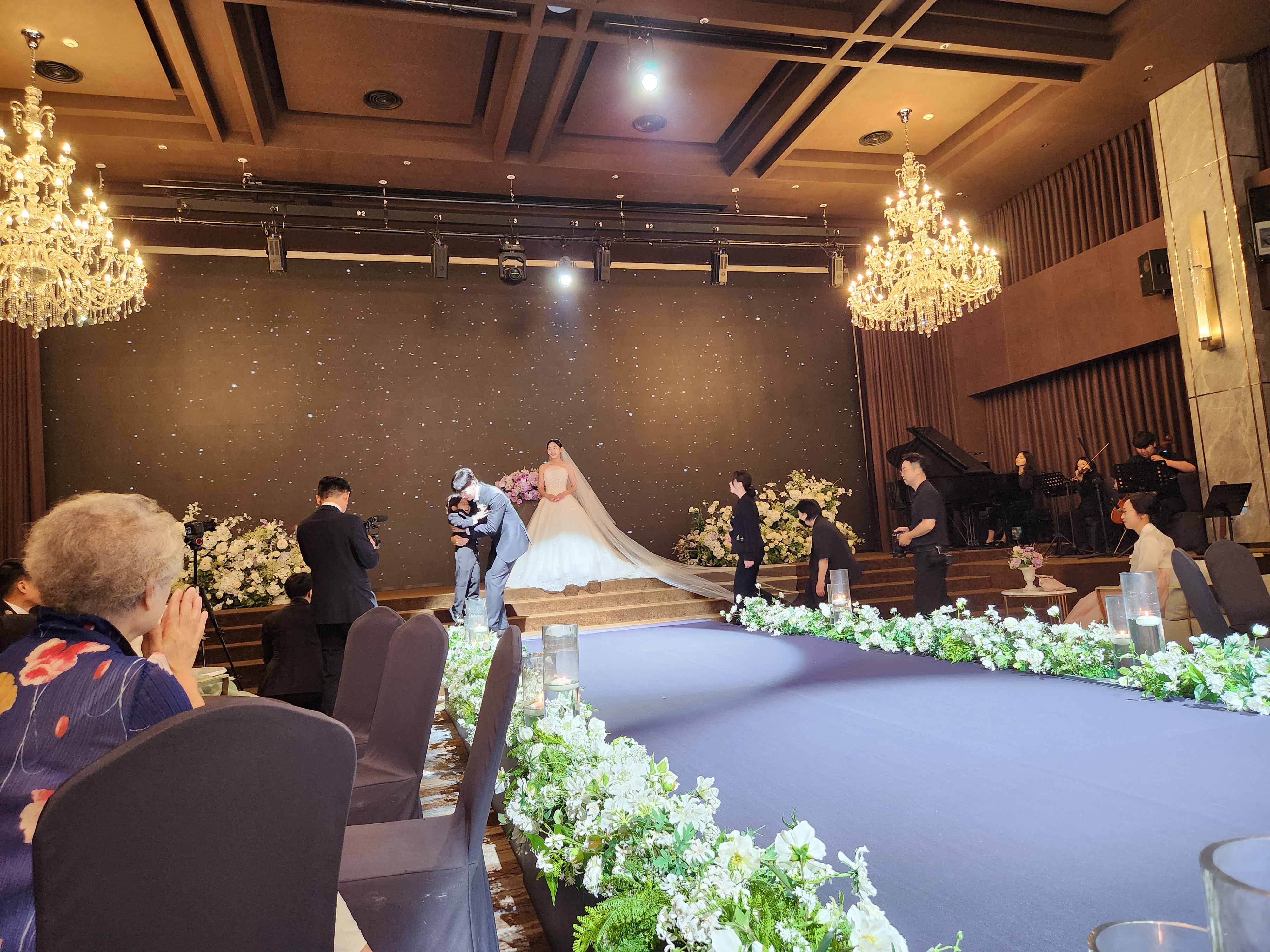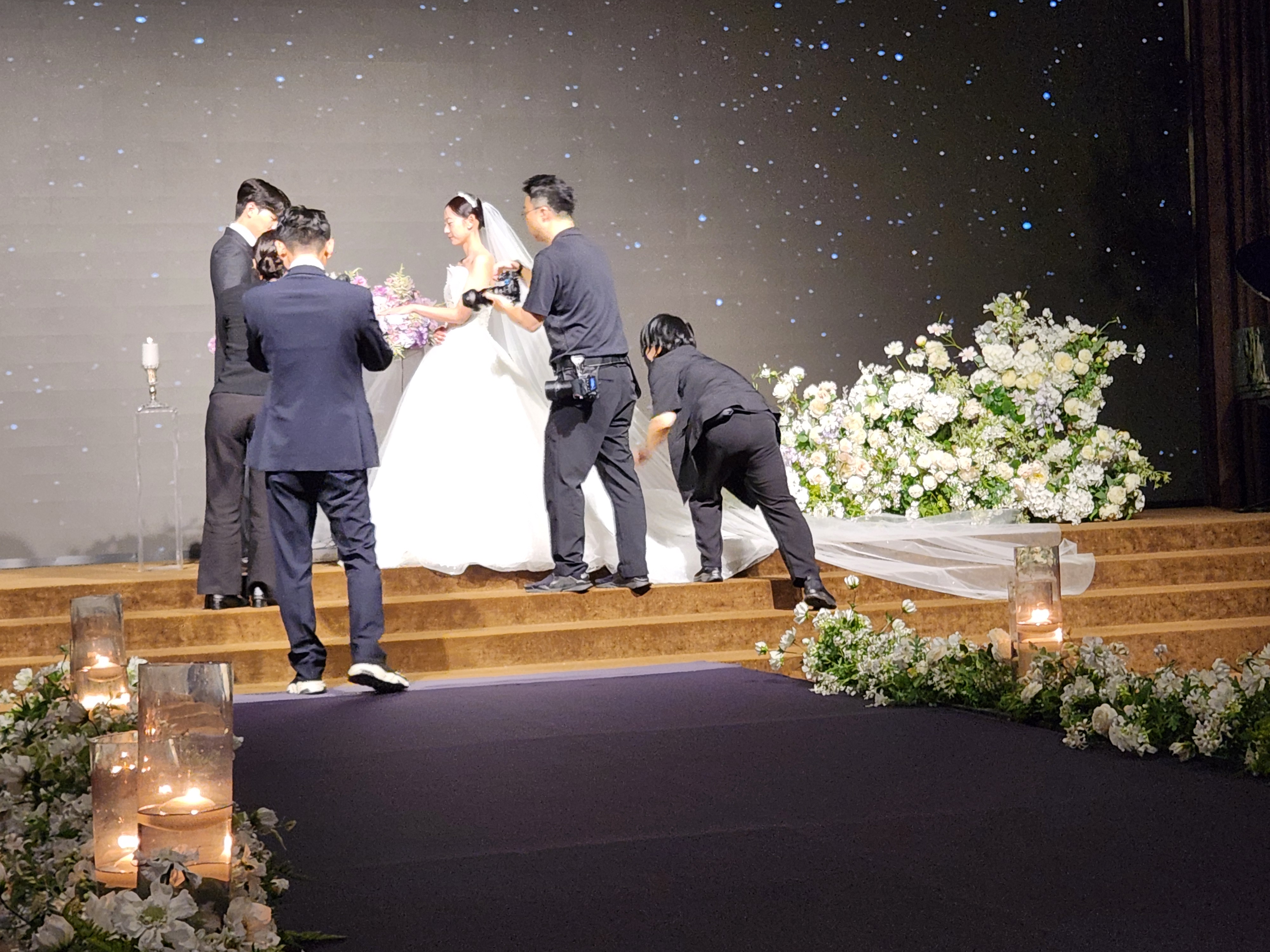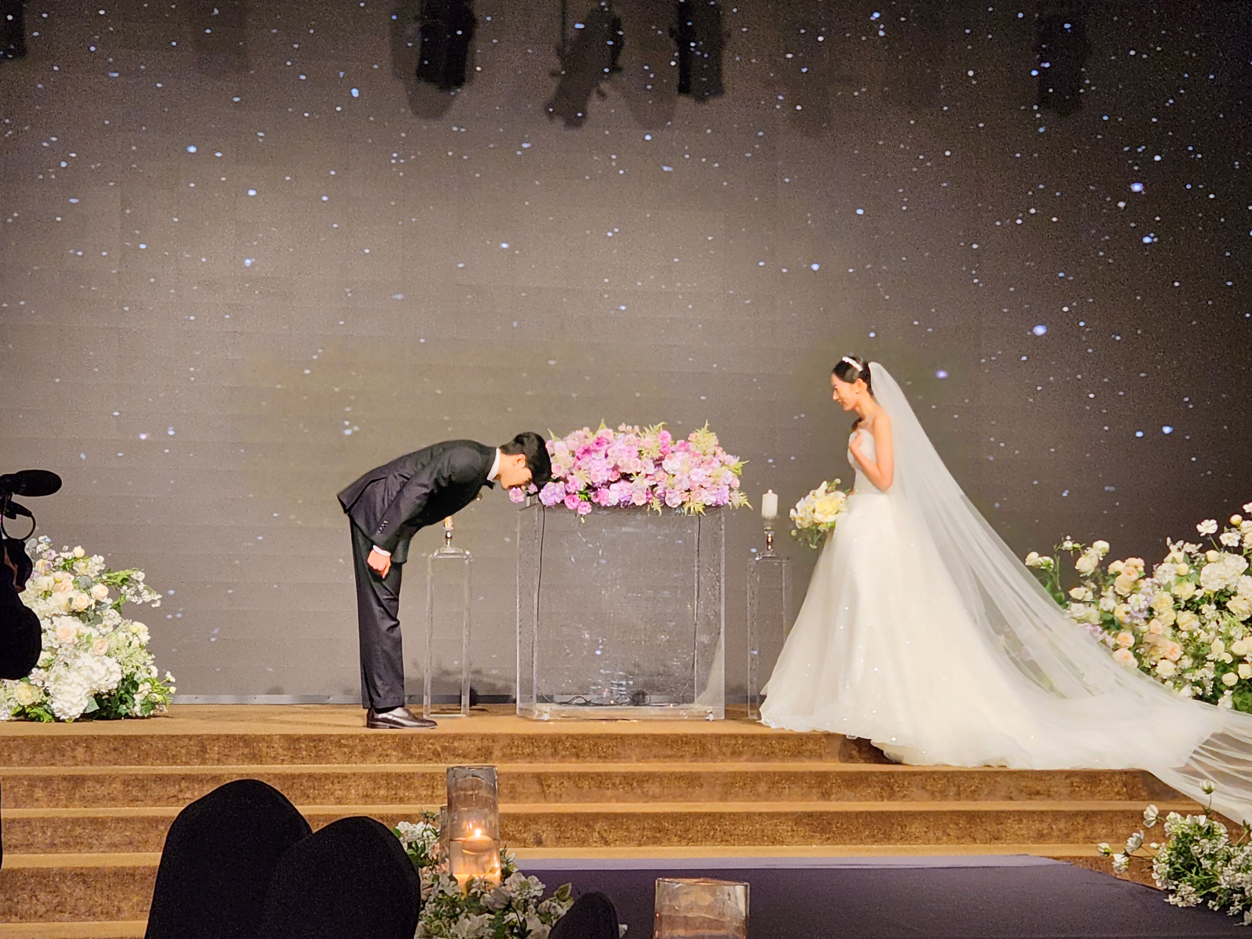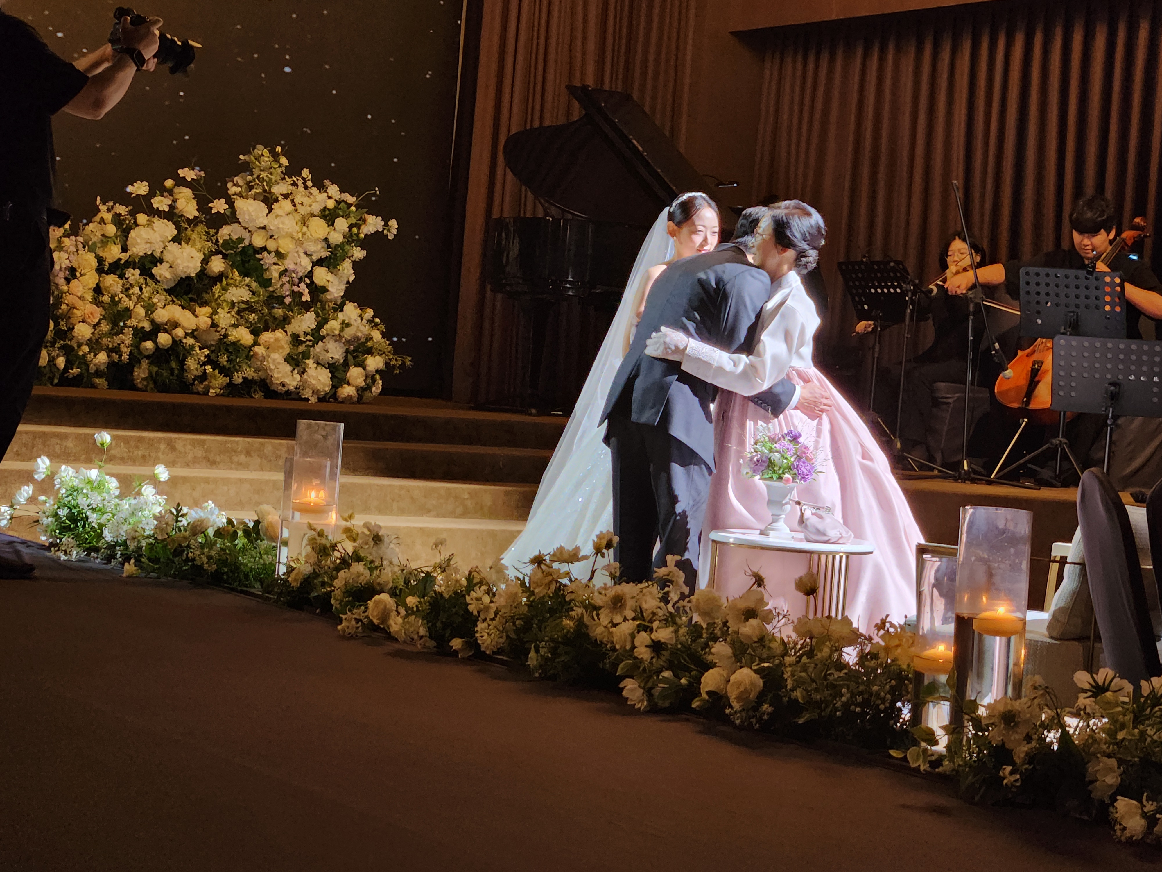 계속 이어지는 폭염으로 너무 덥지나 않을까 혼주입장에서는 하객들이 불편해하지 않는지 노심초사했을텐데 하늘이 딱맞는 날을 잘 잡아준 것같다.