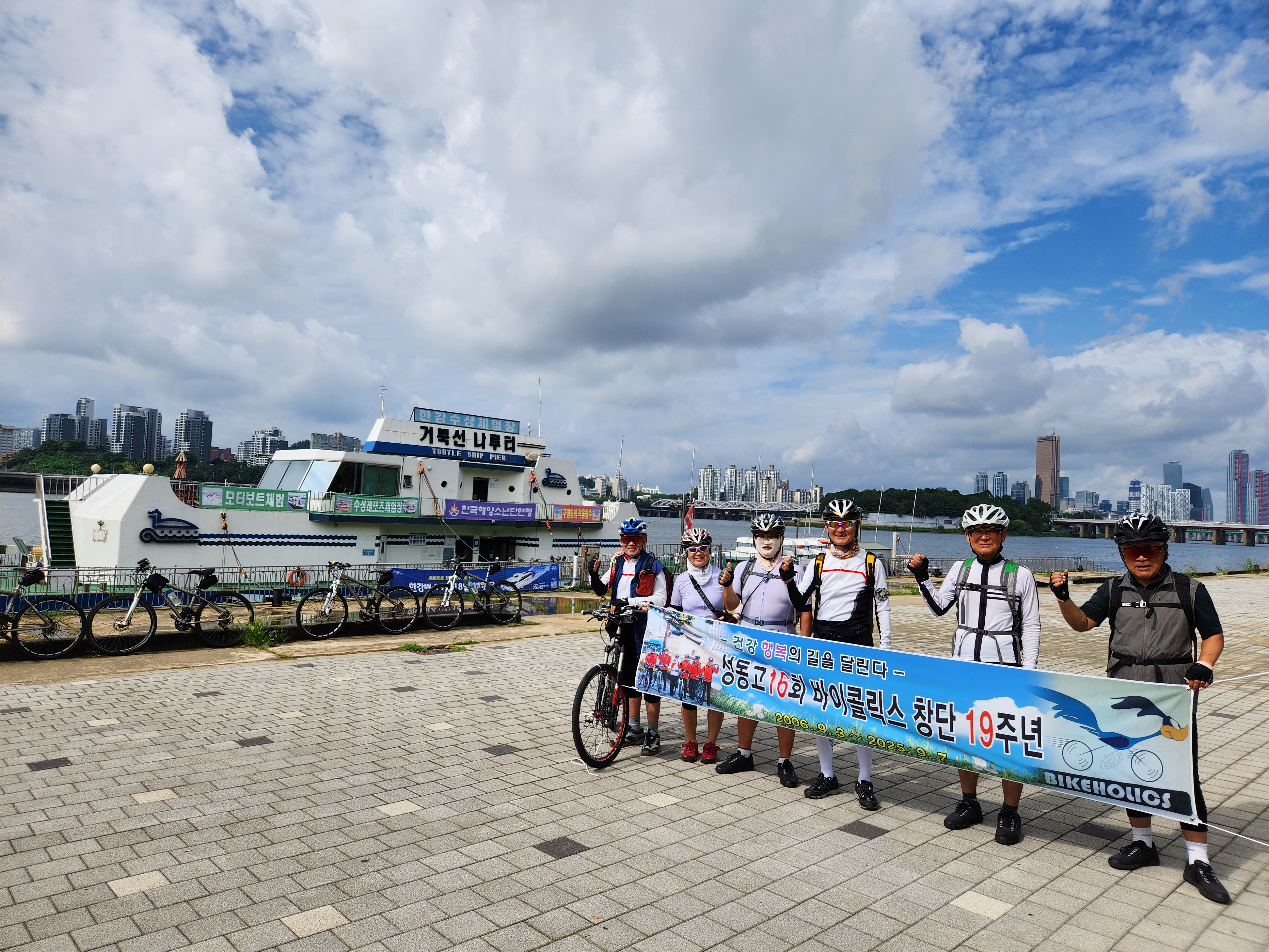 2006년 9월 창단된지 19주년을 맞아 첫 모임을 가졌던 한강대교 부근의 거북선나루에서 기념촬영을 하고 하류로 행주산성까지 이동하여 점심식사 후 다시 상류방향으로 합정역까지 6시간반, 40km 라이딩 마감