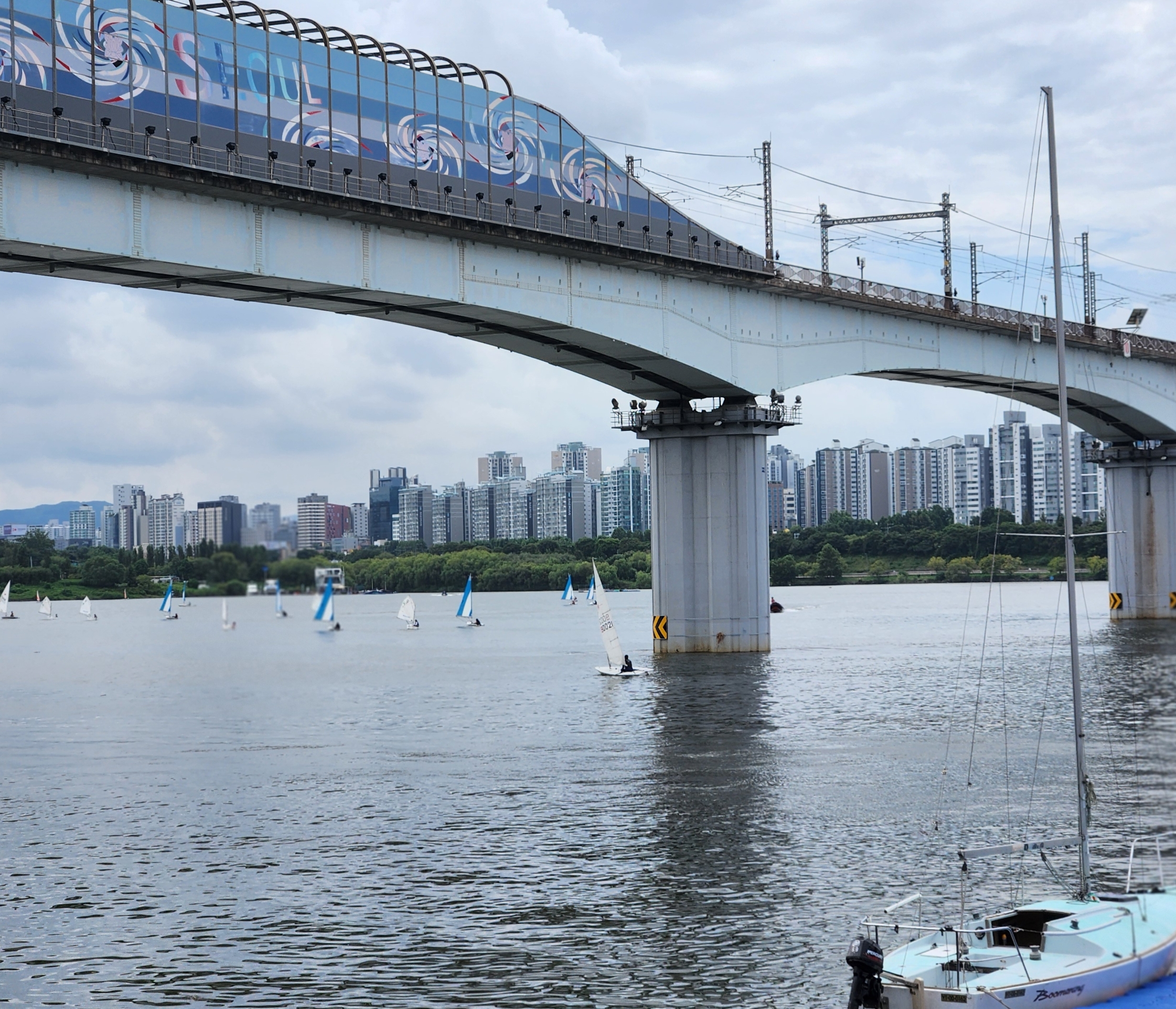 당산철교 상류에는 수많은 요트가...