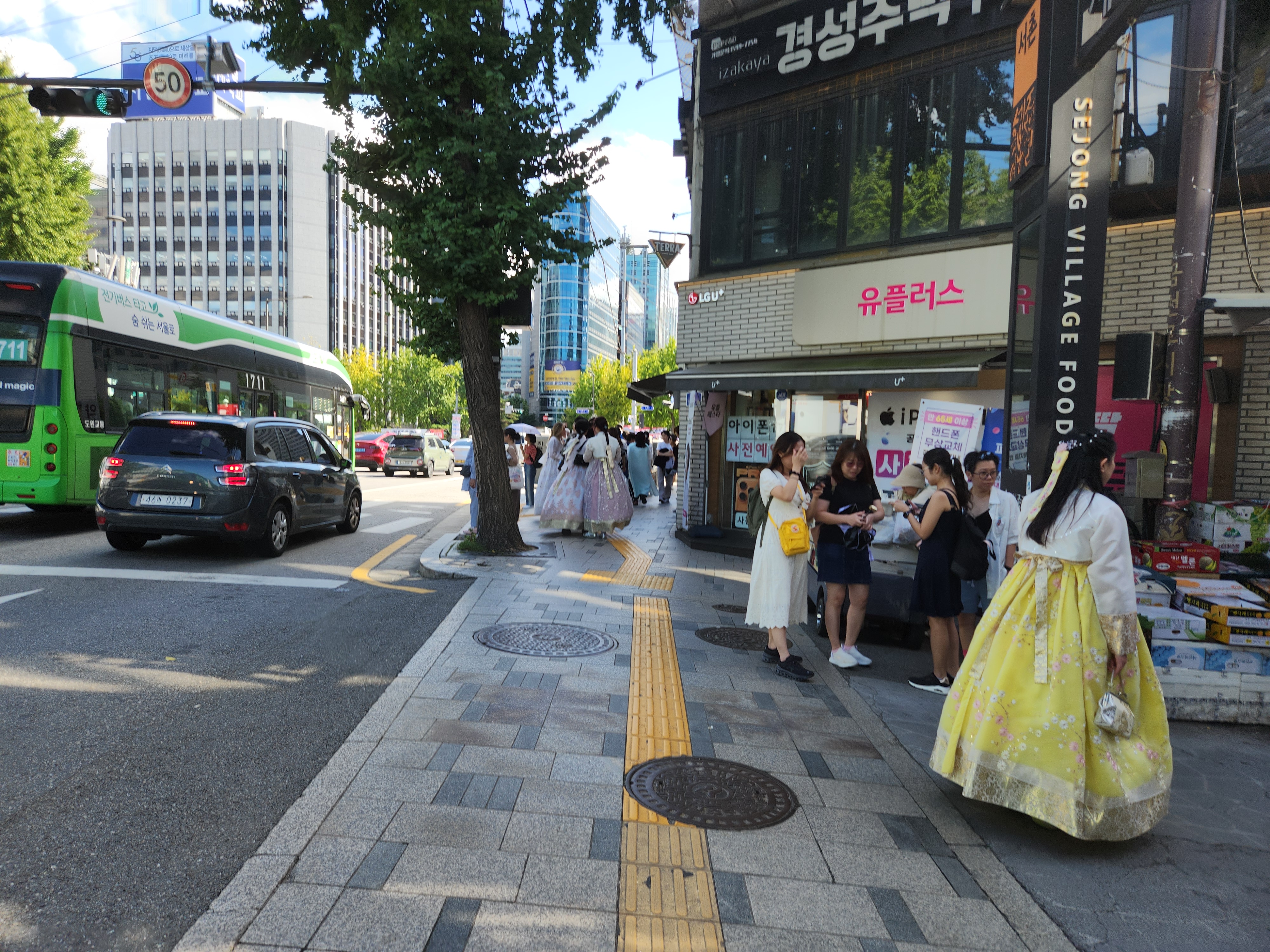 경복궁역 부근에 이르니 온통 한복차림의 관광객이다.