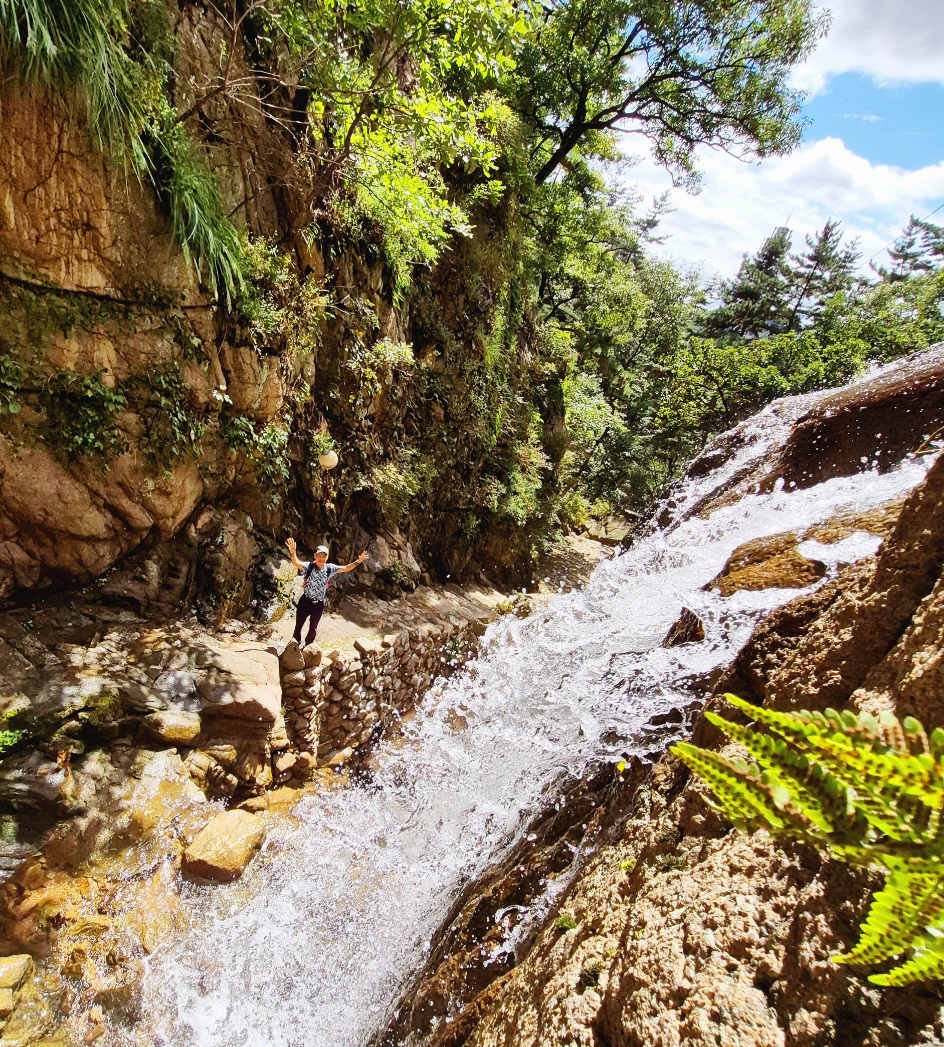 전날밤 비가 많이 내려 1단,2단 쏟아져 내리는 폭포수가 절경이다. 그것만 해도 볼꺼리가 충분하다. 게다가 목정굴을 지나는 거의 수직의 계단통로를 통해 위로 빠져나오는 길은 어디로 어떻게 나왔는지 모르게 절묘하다.