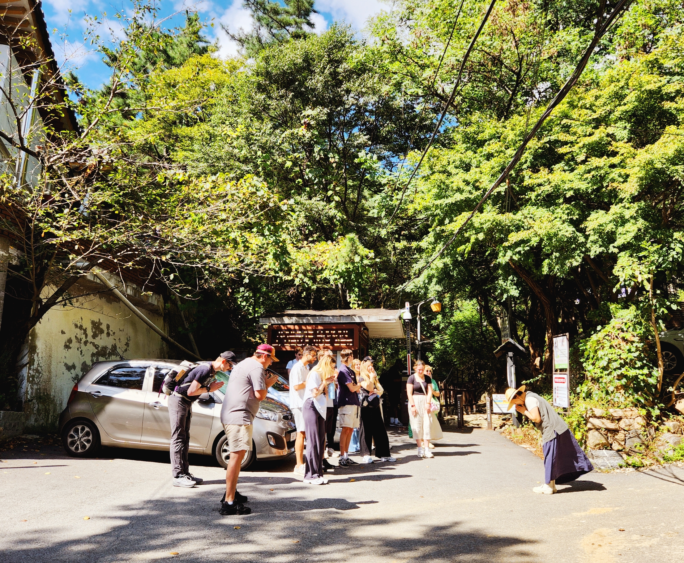 템플스테이를 마친 외국인들이 일주문을 나서고 있다.
