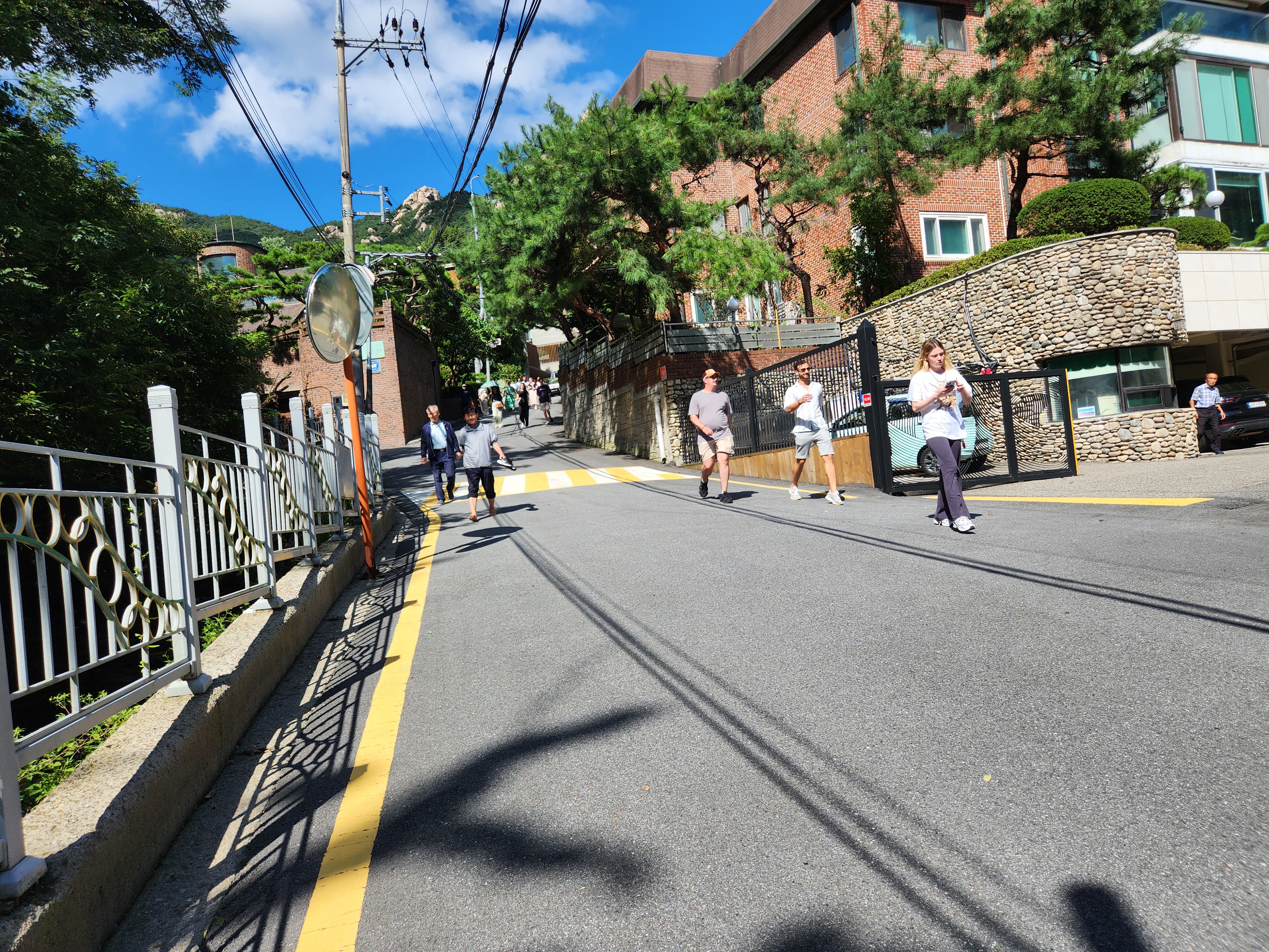 한 골목에서 한복을 챙겨입고 나온다.