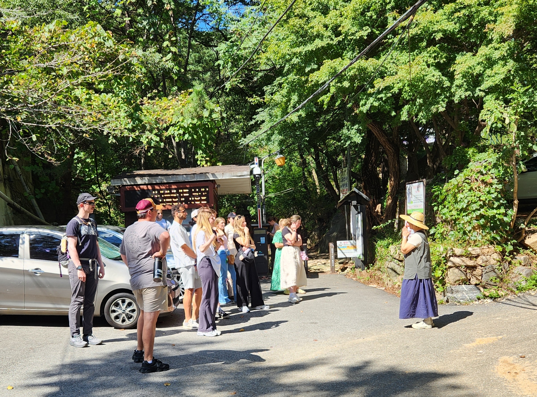 여러나라 외국인들이 관광버스로 함께 왔다.