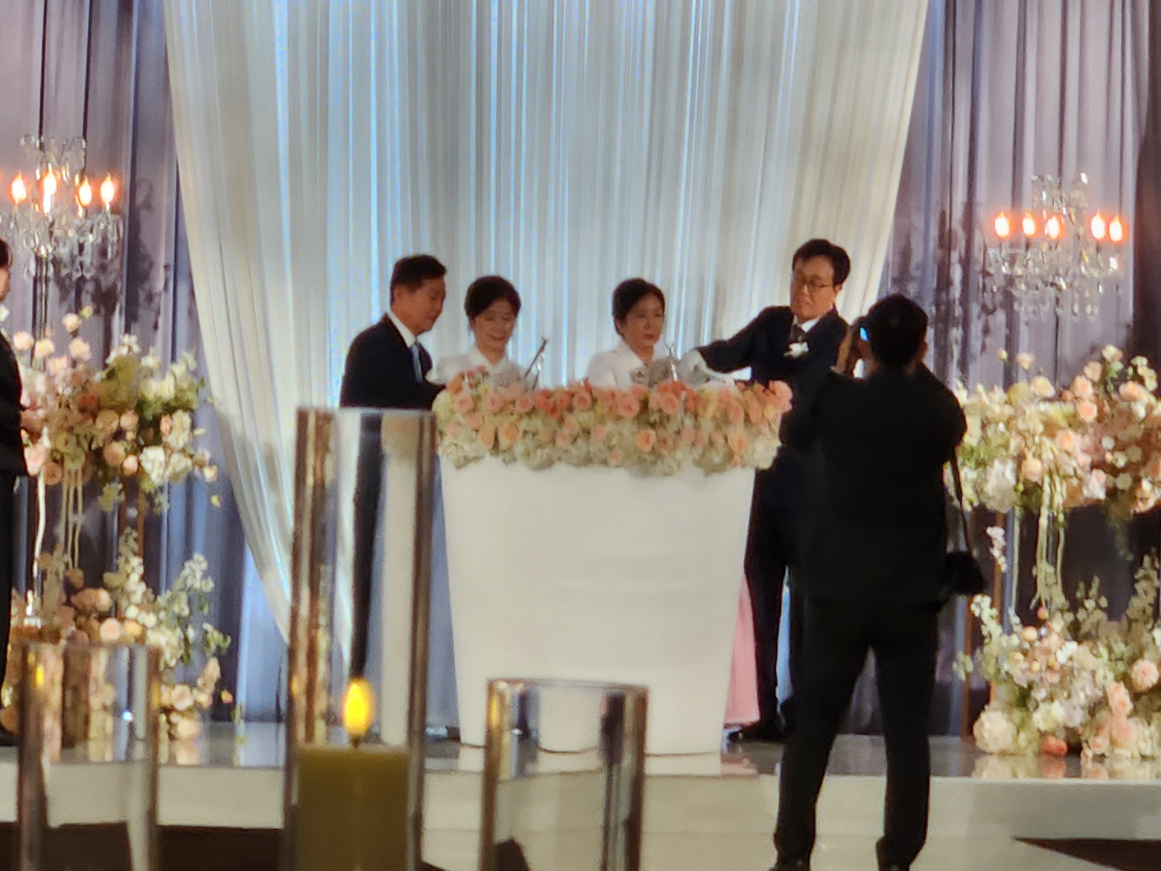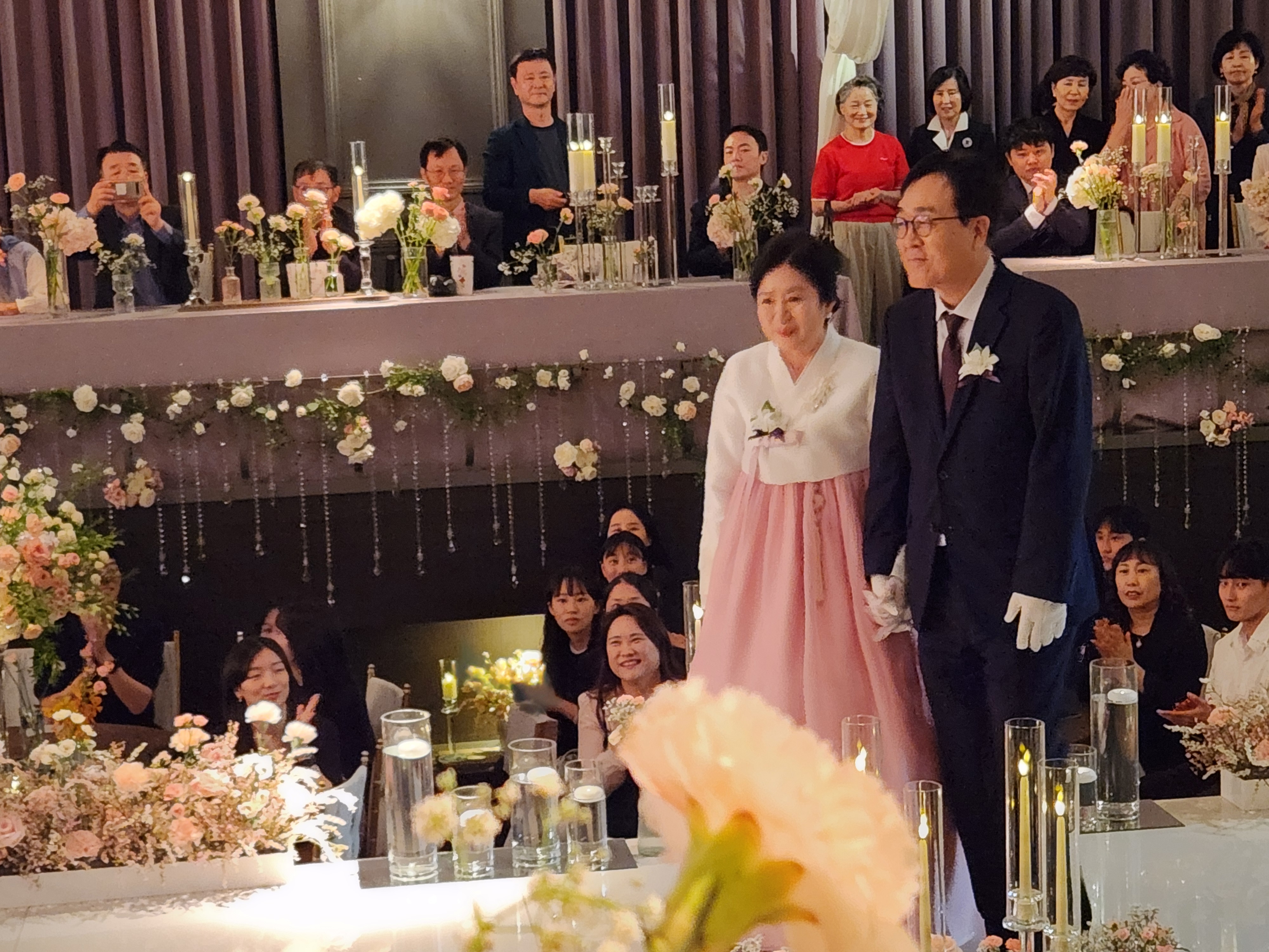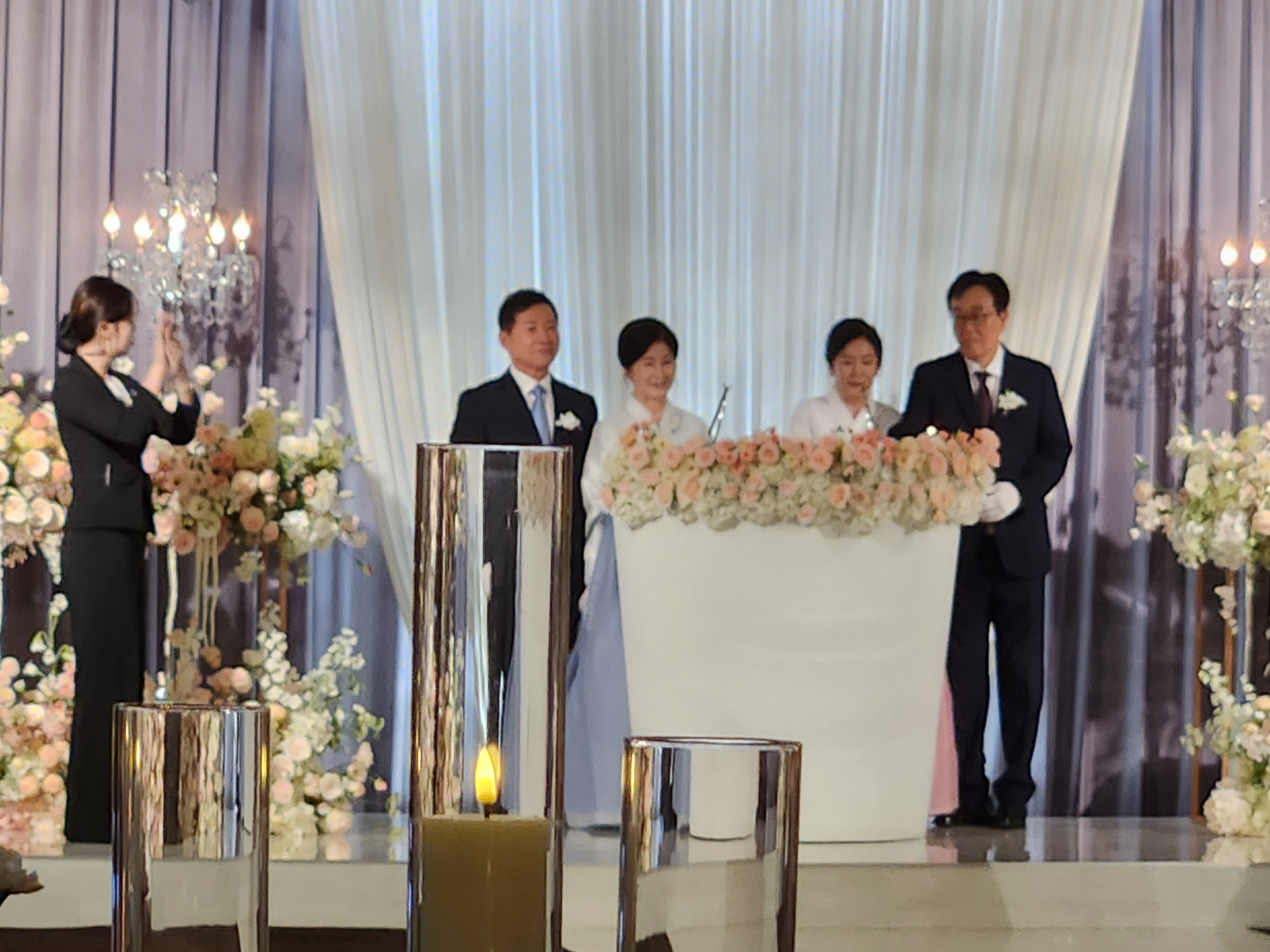 가족적이면서도 화사한 분위기에서 많은 하객들의 축복을 받으며 출발하는 새 가정이 이웃과 사회에 기여하고 나라에도 큰 역할을 하도록 성장발전해 나가기를 축원합니다.