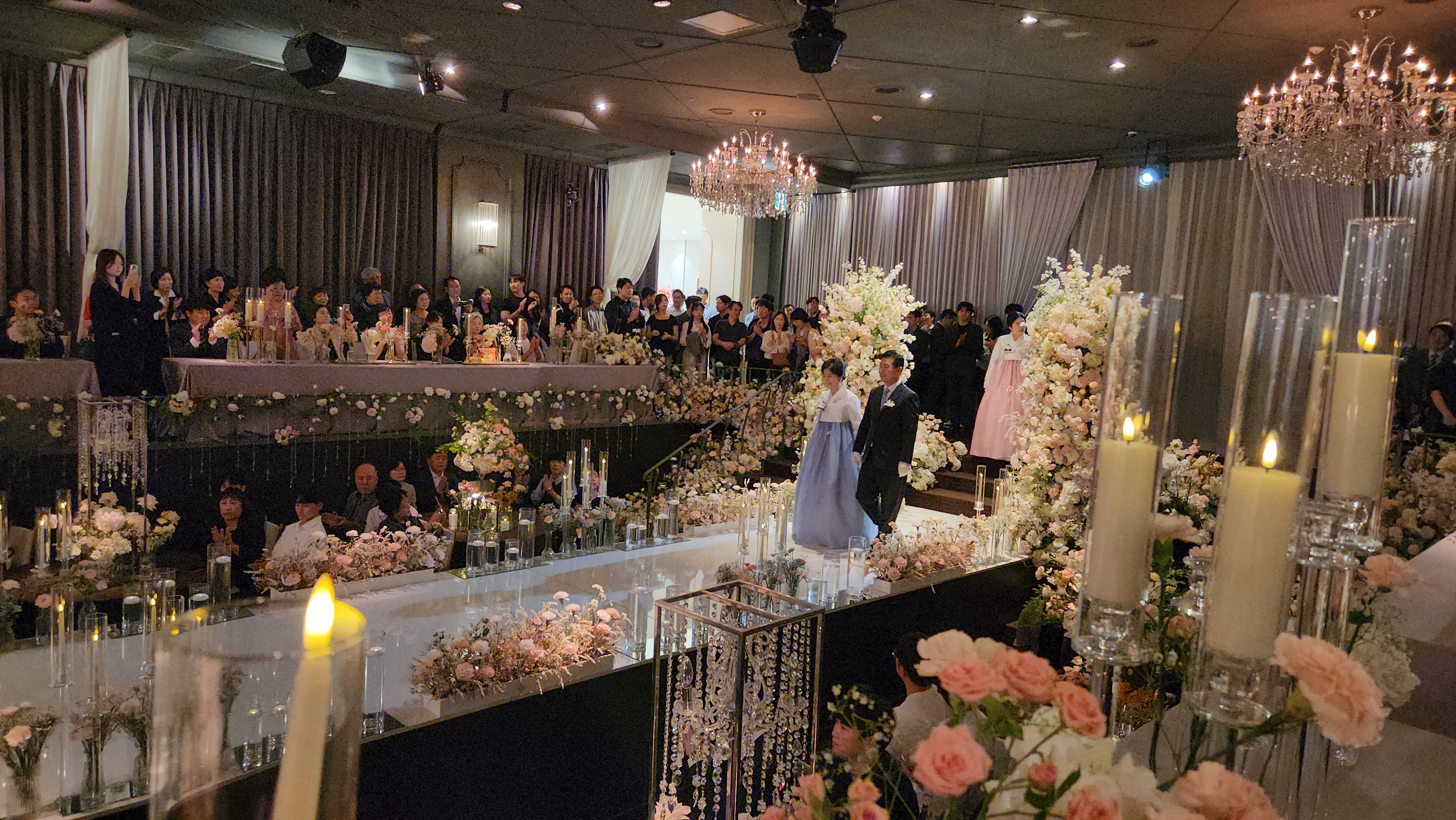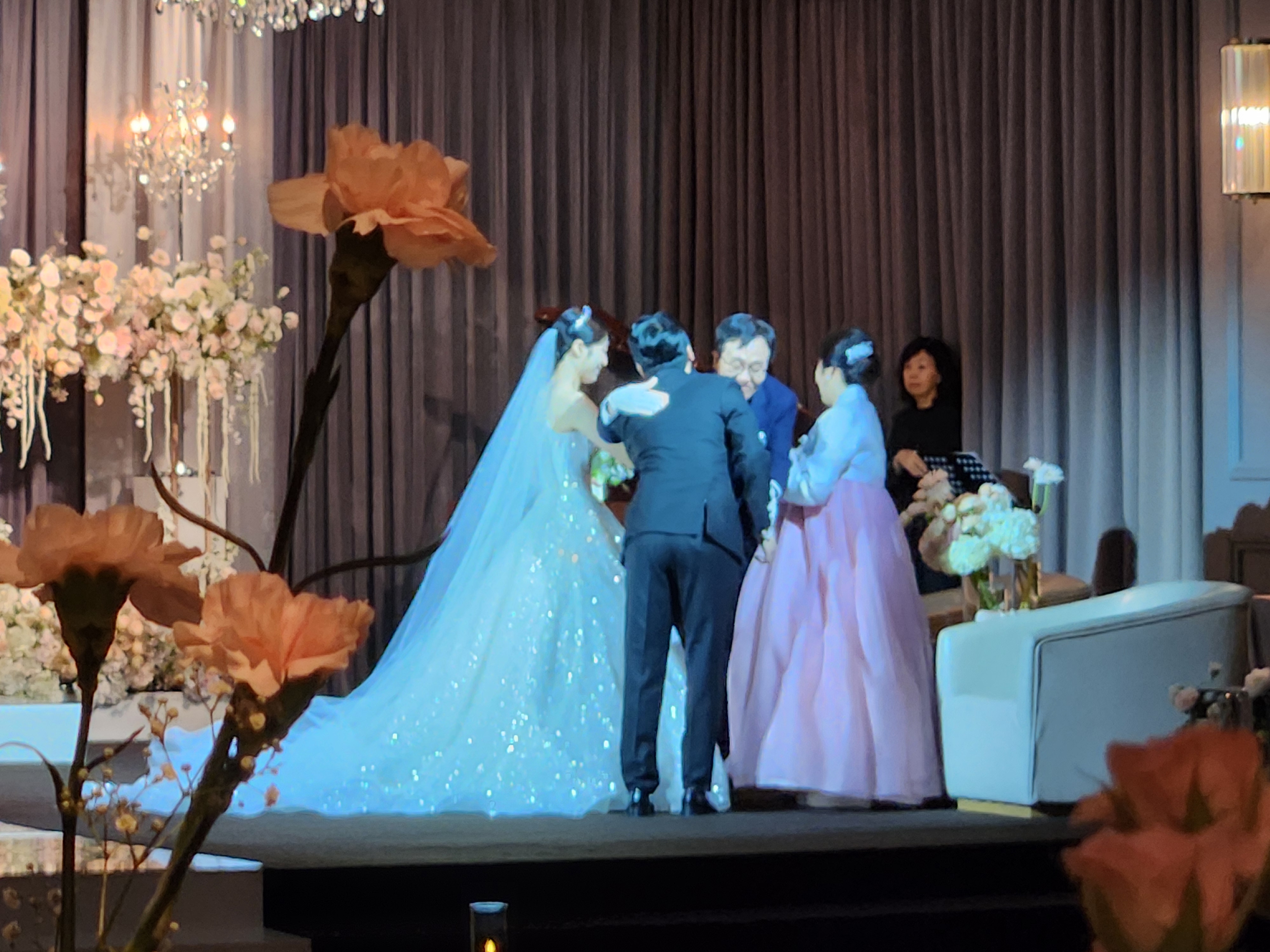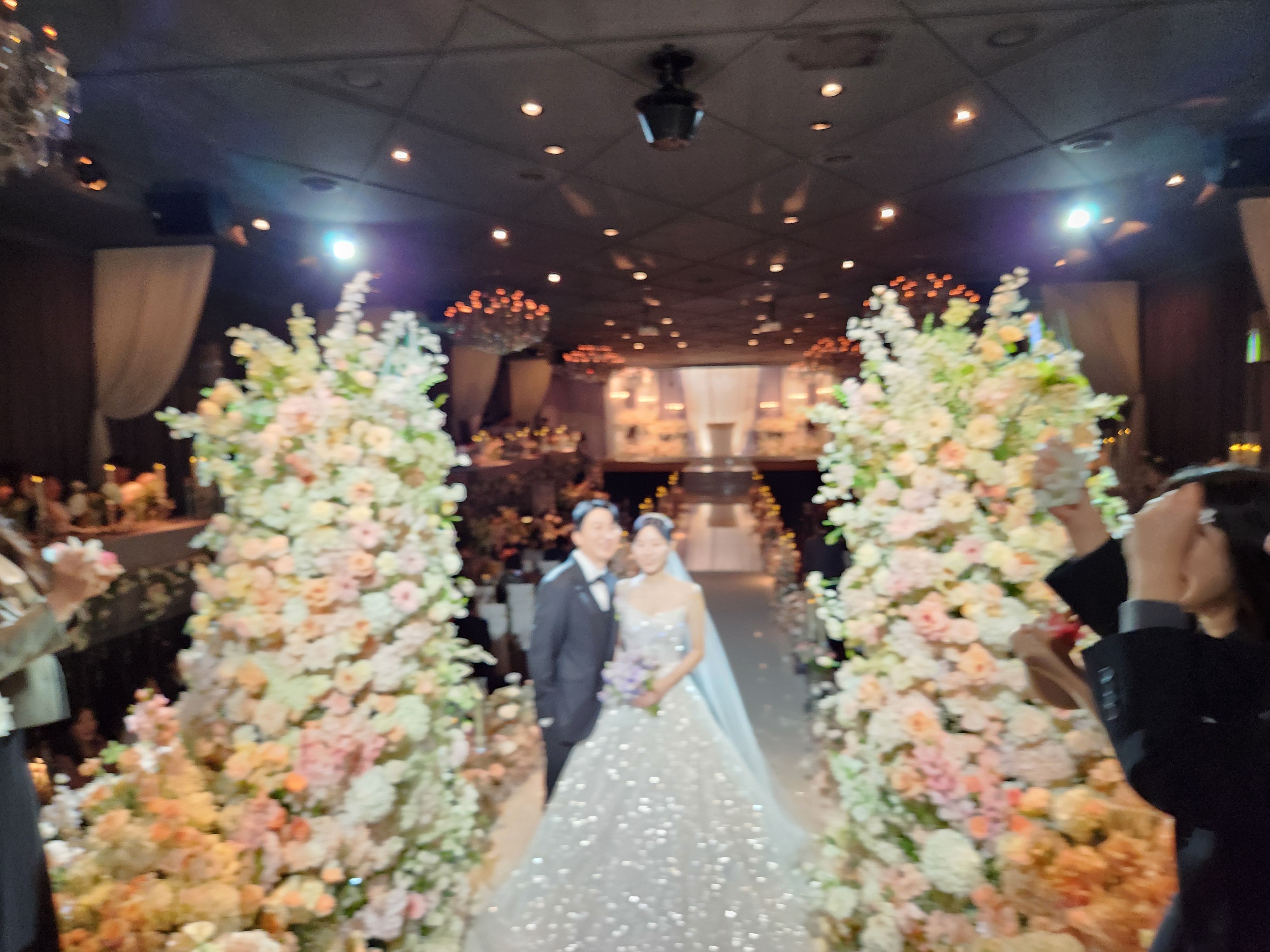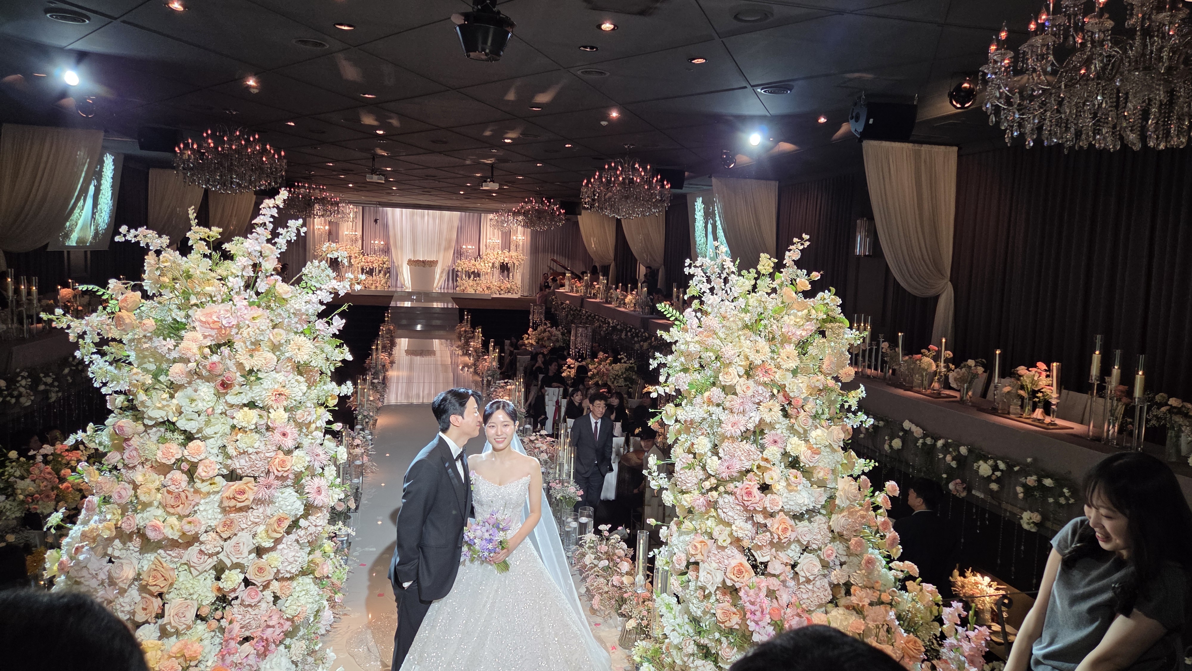 결혼식장이 특이하다. 오페라 관람석같은 2층 구조로 되어 있고 꽃장식으로 무척 화려하다. 이런 입체적인 예식홀은 처음이다.
