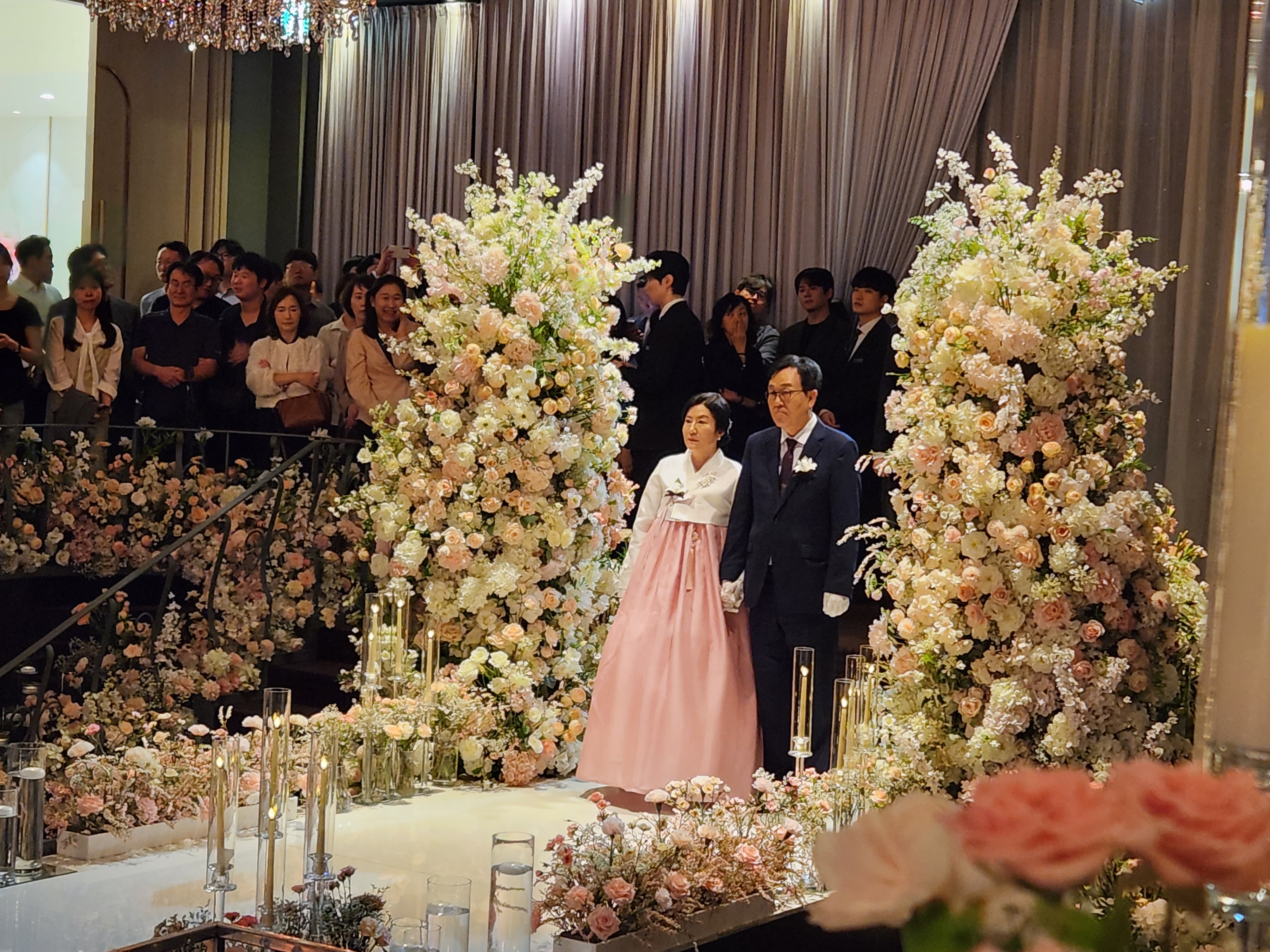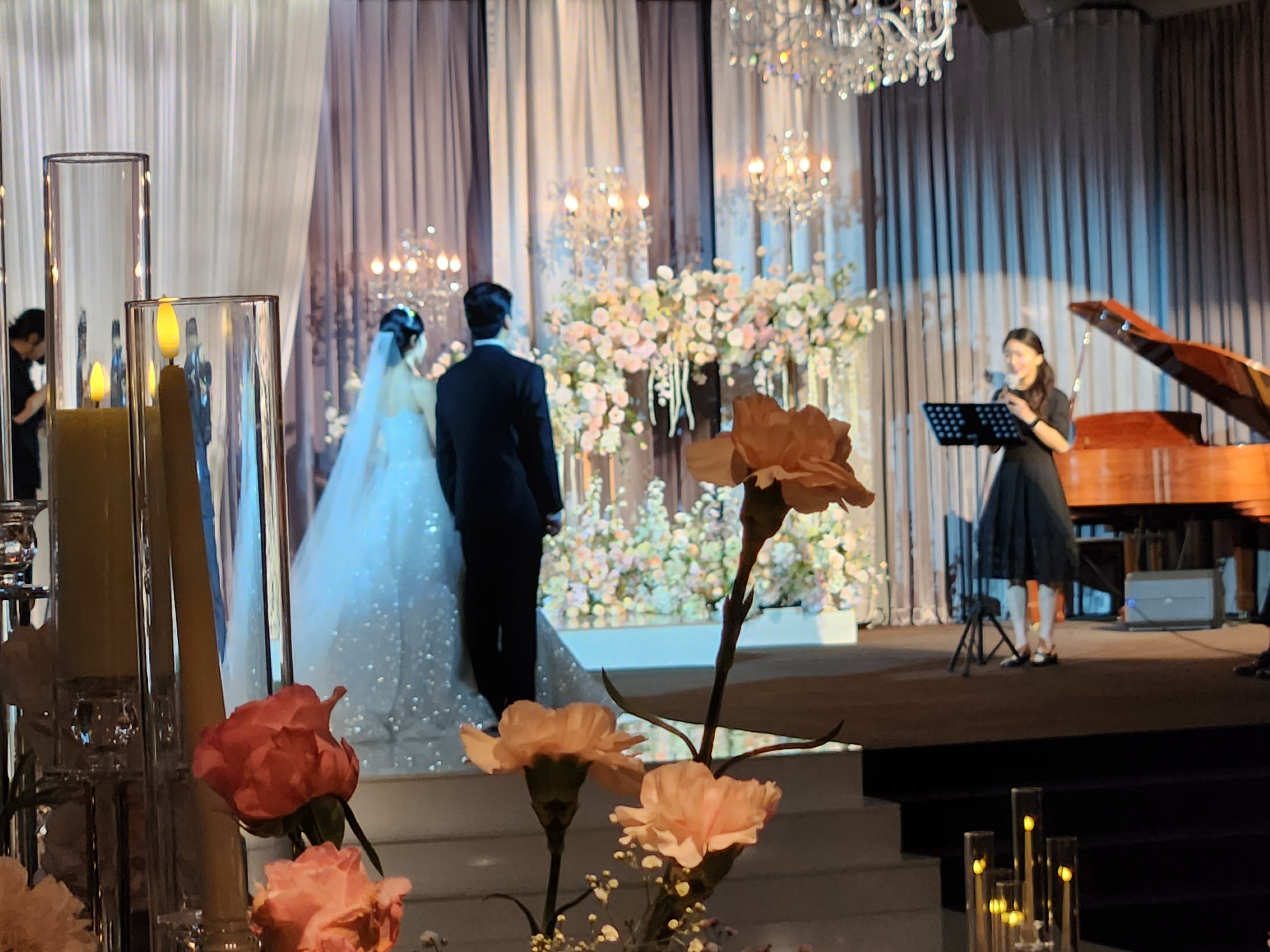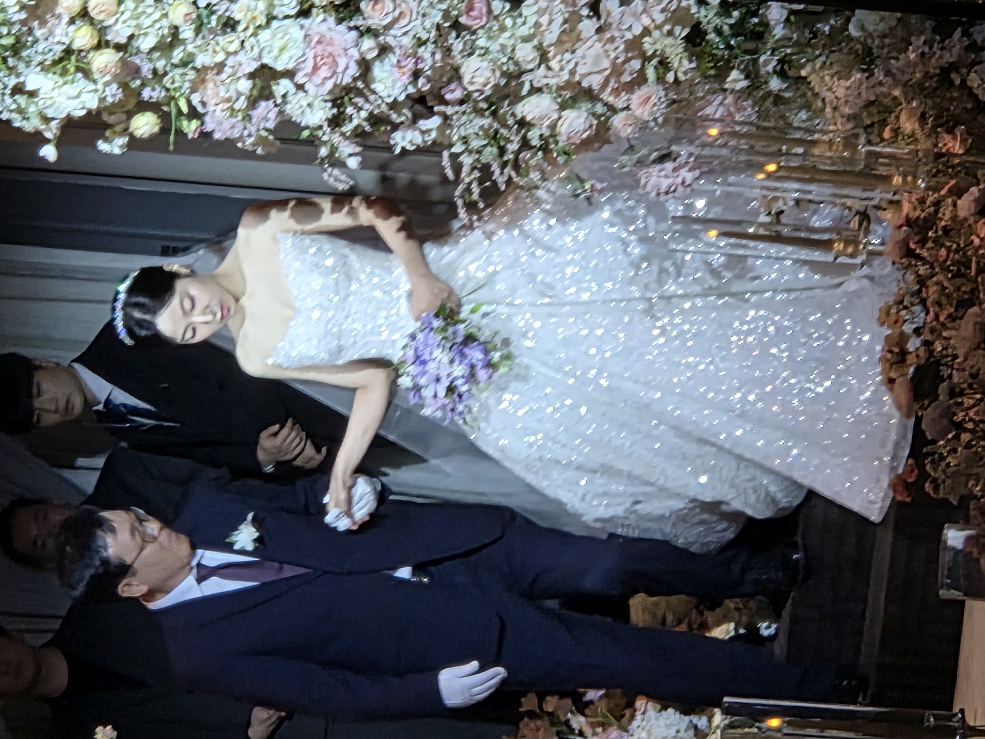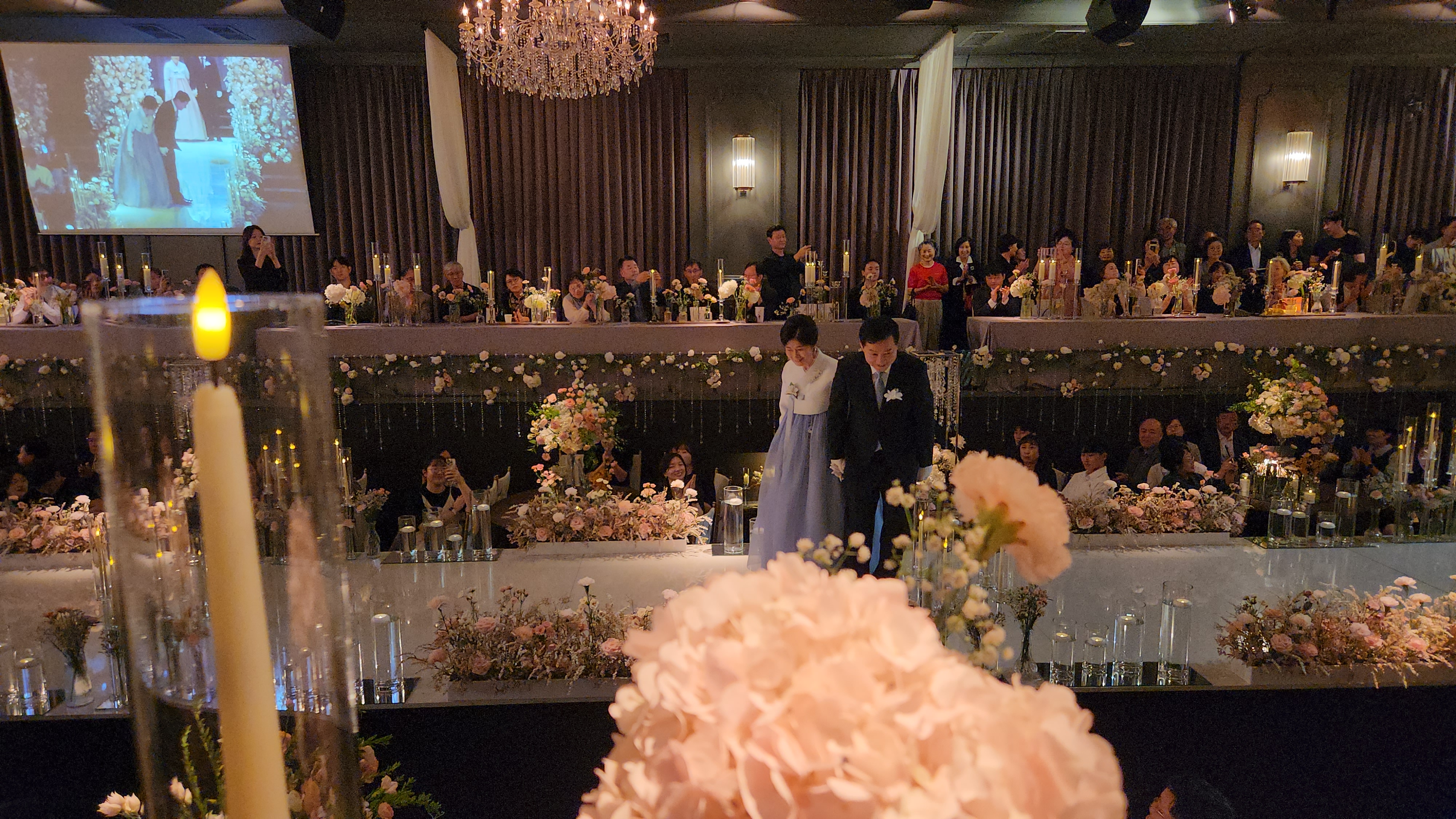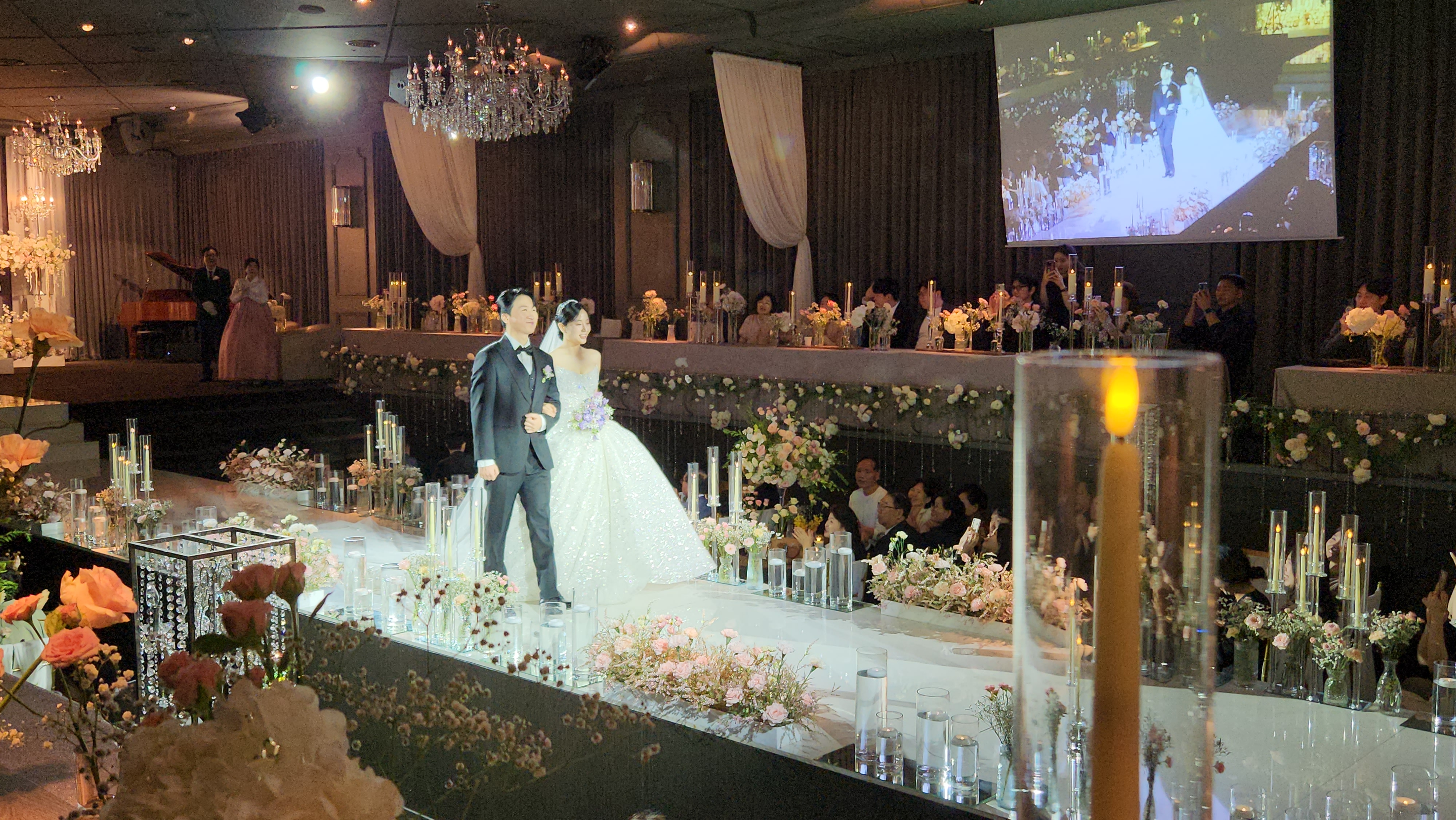 결혼식장이 특이하다. 오페라 관람석같은 2층 구조로 되어 있고 꽃장식으로 무척 화려하다. 이런 입체적인 예식홀은 처음이다.